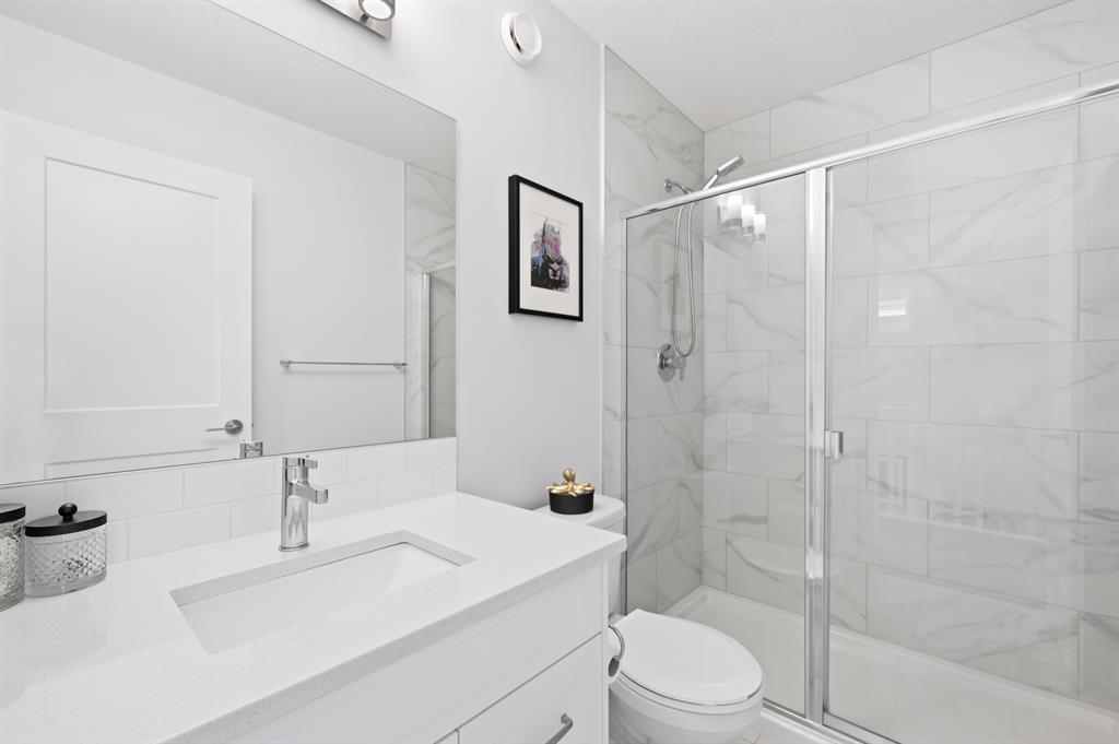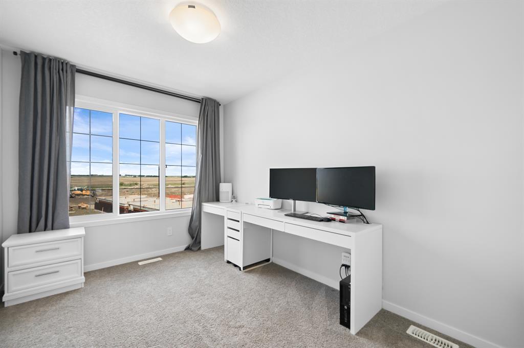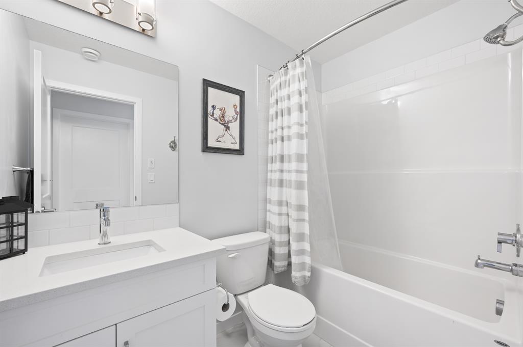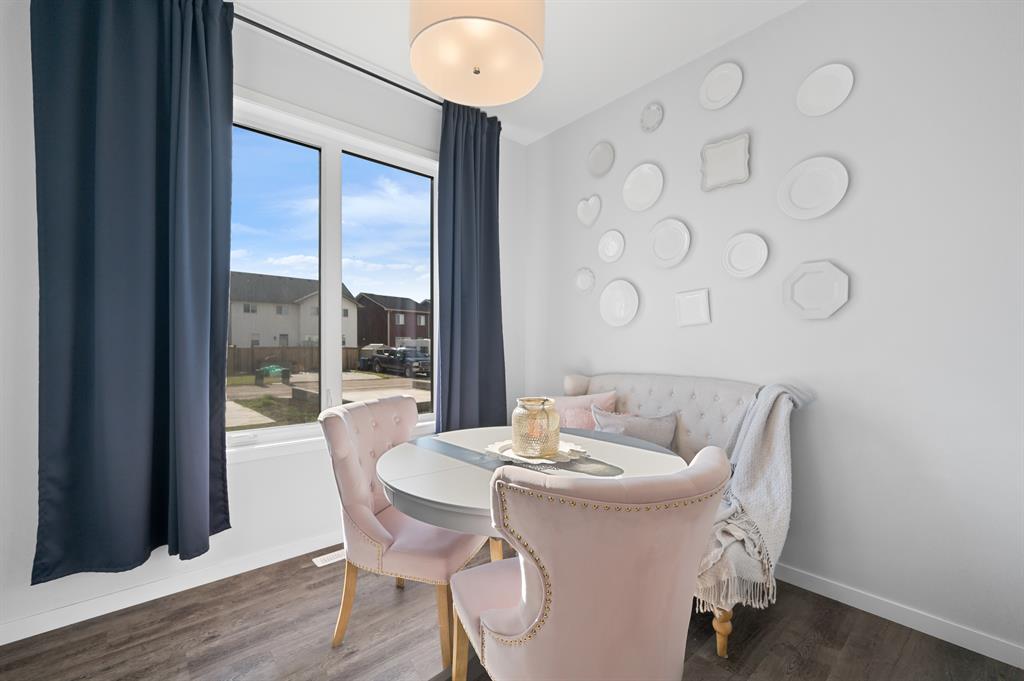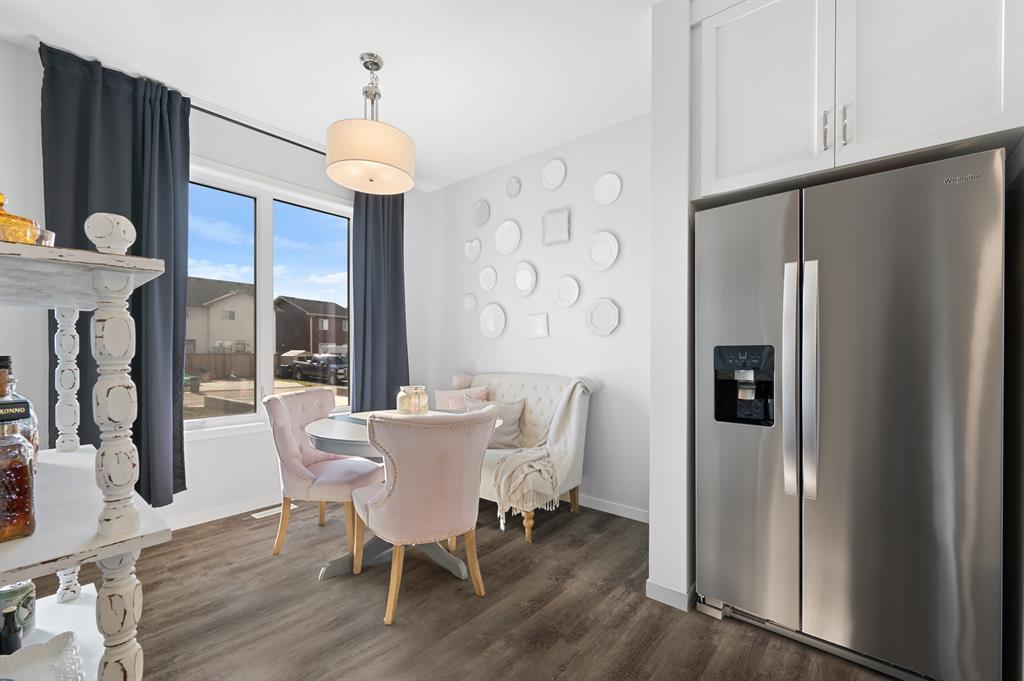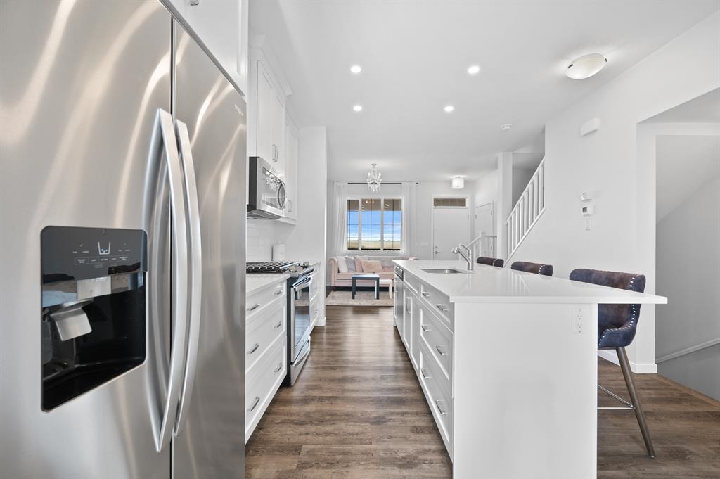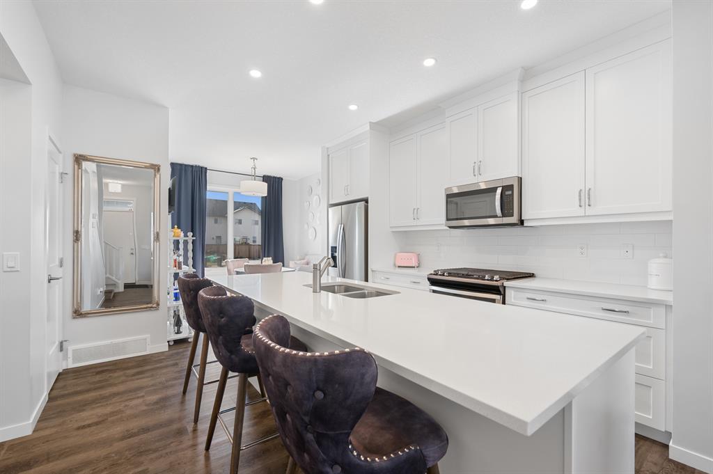 Welcome to "The Noah" by Dreams in Crossfield! This stunning 2020 new build is a single-family home with $40K in upgrades is designed to exceed your expectations. With its impeccable features and fantastic location, this property offers a delightful living experience. As you step inside, you'll immediately notice the airy and spacious feel created by the 9-foot ceilings on the main floor. The rich luxury vinyl plank flooring adds a touch of elegance, while the large TRIPLE PANE windows flood the space with abundant sunshine. A charming faux fireplace serves as a cozy focal point, perfect for relaxing evenings. The kitchen is a true culinary haven, boasting numerous upgrades. Prepare meals with ease on the 9ft island with quartz countertops, surrounded by floor-to-ceiling shaker-style cabinets that provide ample storage space. The gas range and stainless steel appliances add a modern touch, while the soft-close cabinetry ensures a seamless experience. The walk-in pantry offers additional convenience, making organization a breeze. The main floor also features a rear dining room, ideal for hosting, as well as a convenient 1/2 bath powder room. Moving upstairs, the primary suite awaits, offering generous space for a king bed and a walk-in closet to accommodate your wardrobe needs and a stylish barn door. The ensuite is a luxurious retreat, featuring a stand-up shower tiled to the ceiling. Two other good-sized bedrooms offer breathtaking mountain views. Completing this level is a 3pc bathroom and a full laundry room, adding convenience to your daily routine. The lower level presents a versatile living room, providing a cozy space for entertainment or relaxation. An additional bedroom and a 4pc bathroom make the lower level perfect for accommodating guests or family. The backyard is a blank canvas, awaiting your personal touch to transform it into your dream outdoor oasis. Take advantage of the untapped potential to design a space that suits your unique lifestyle and pref erences. Crossfield offers a multitude of community amenities including; community garden boxes, 4 kilometers of walking trails, 5 acres of protected wetlands, and 20 acres of green spaces that surround the area. Engage in outdoor activities at the outdoor hockey rink, skateboard park, sports fields, and mini soccer field. The stocked pond provides opportunities for fishing, while the picnic areas with fire pits, splash park, and playground ensure endless fun for the whole family. Don't miss the opportunity to make "The Noah" your dream home. (id:22211)