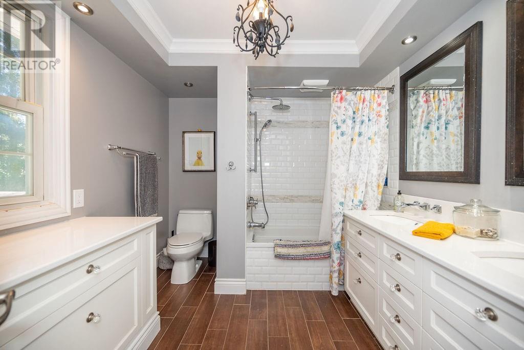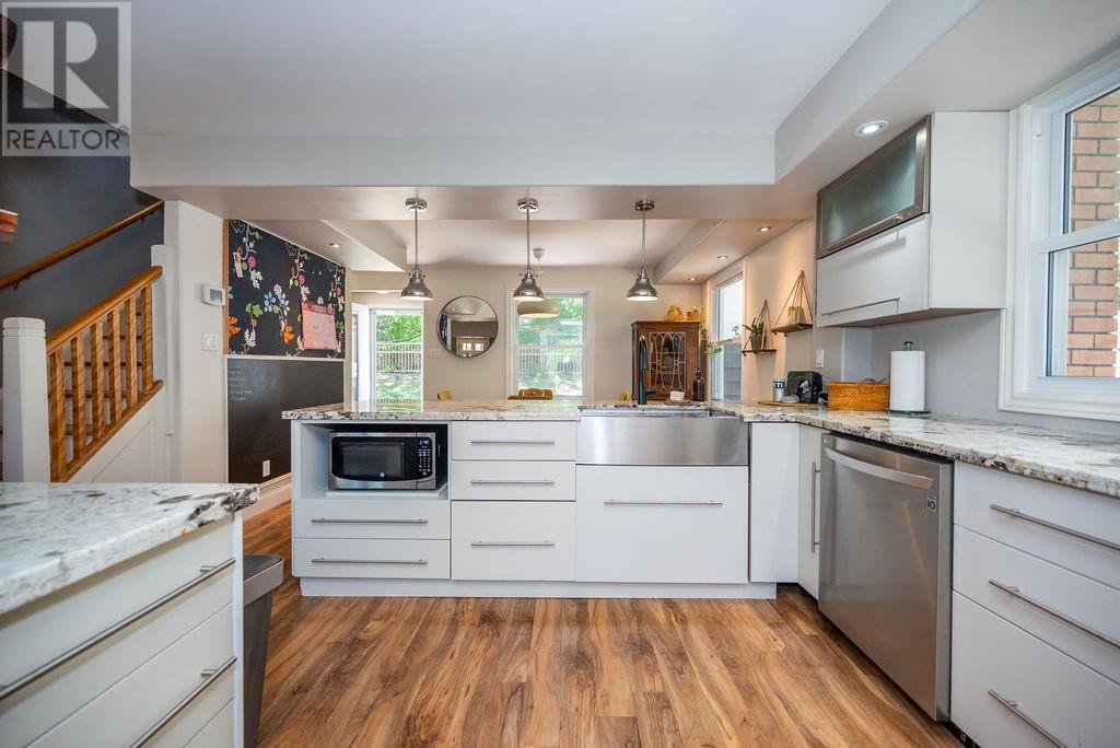 Completely updated 3 bedroom, 2 bathroom, 2-storey home in a prime location in the beautiful Town of Deep River. Open concept kitchen and dining area with loads of natural light. Kitchen features granite countertops, stainless steel appliances, timeless white cabinetry, gas stove, and large breakfast bar. The large living room includes a cozy gas fireplace, original hardwood floors, and a gorgeous built-in reading nook. Heading up to the second level, you'll find 3 large bedrooms including a massive primary bedroom, and a gorgeously updated main bathroom with quartz countertops, double sinks, vanity area, a tiled shower/bath combo and loads of linen space and storage. The lower level features a large, open family room space with built-in entertainment unit including gas fireplace, another 3-piece bathroom and laundry. The outdoor space includes a fully fenced yard, lovely stone patio, gorgeous gardens and mature trees, and a double detached garage. This is THE perfect family home! (id:22211)