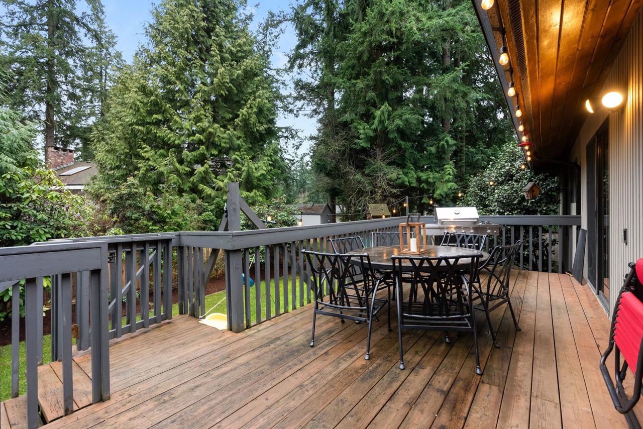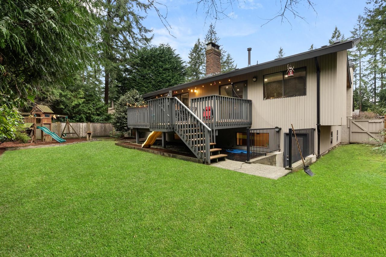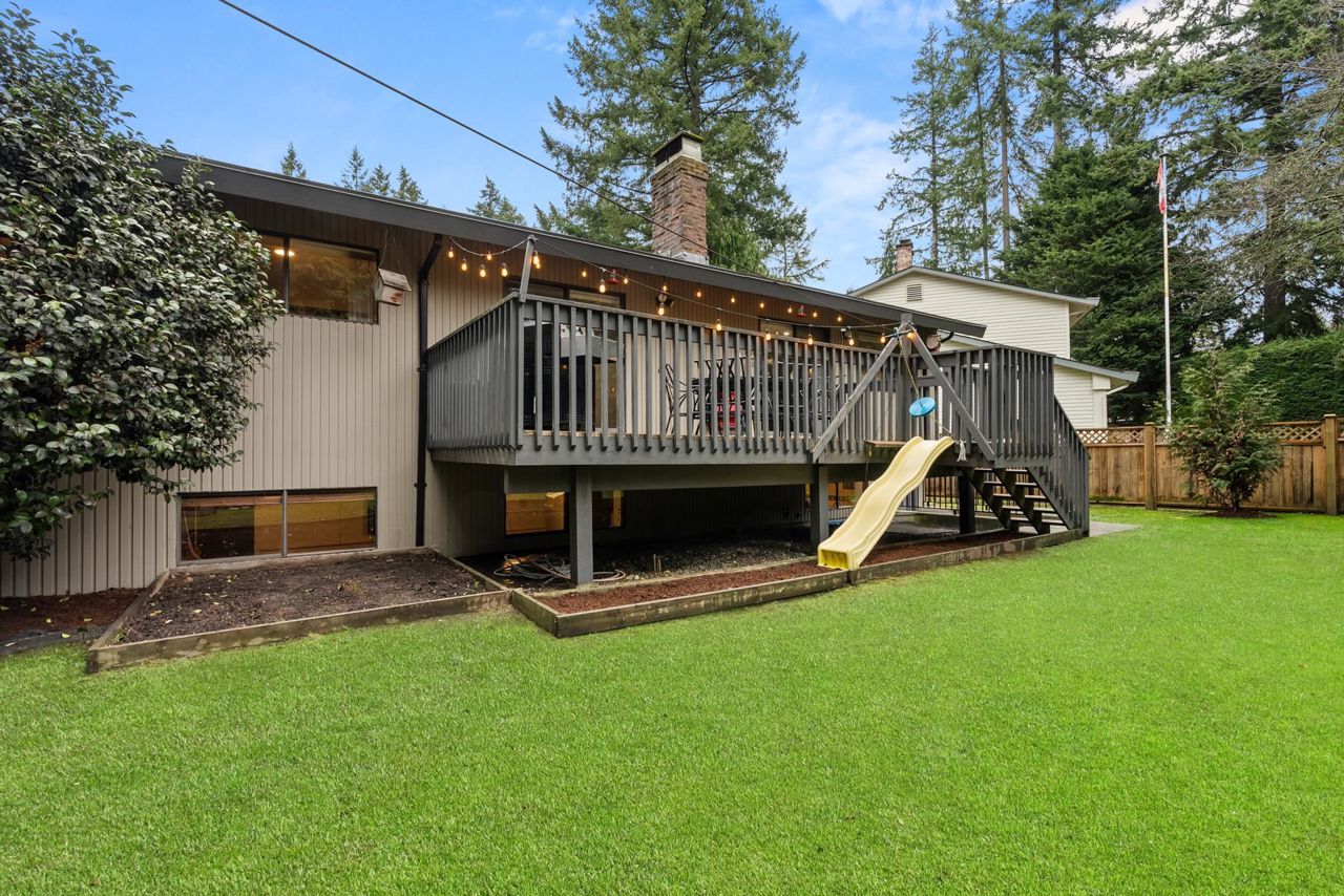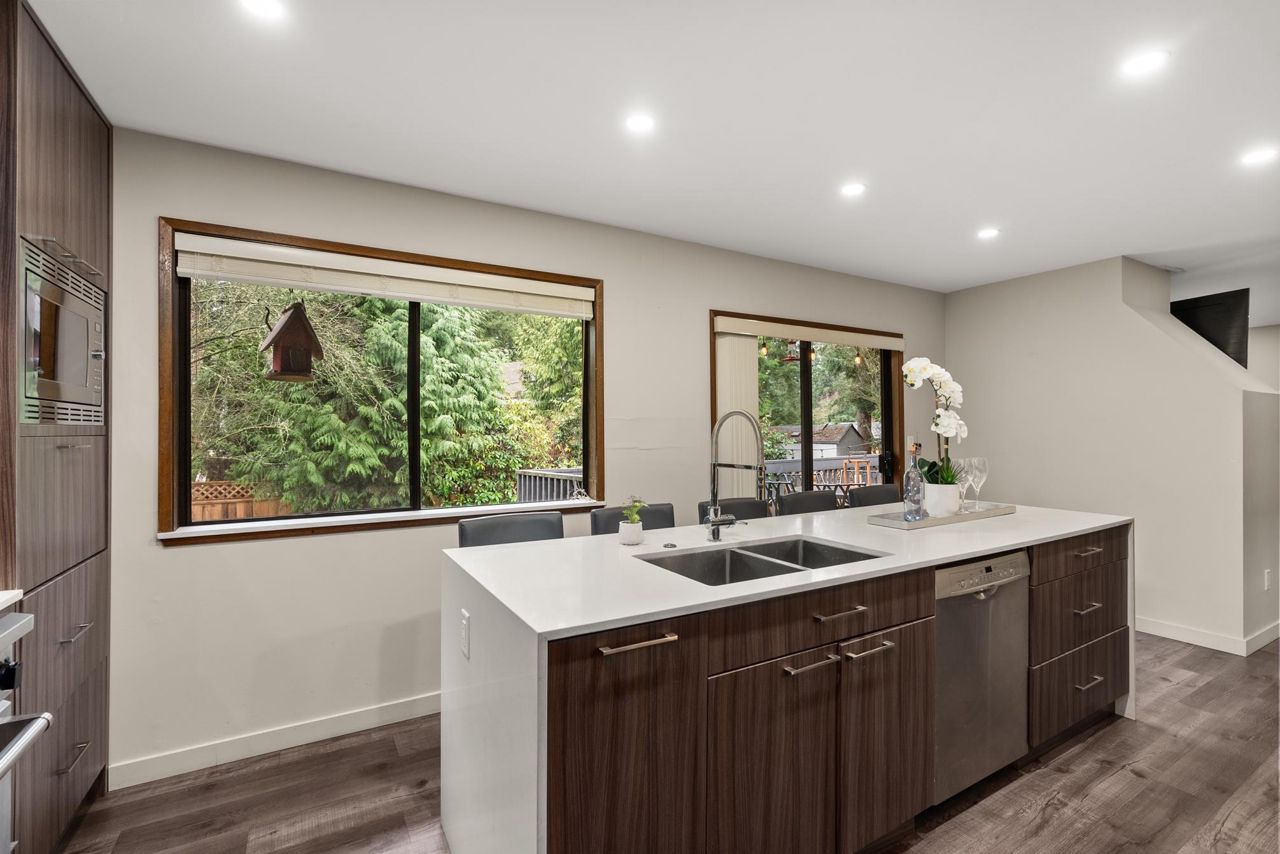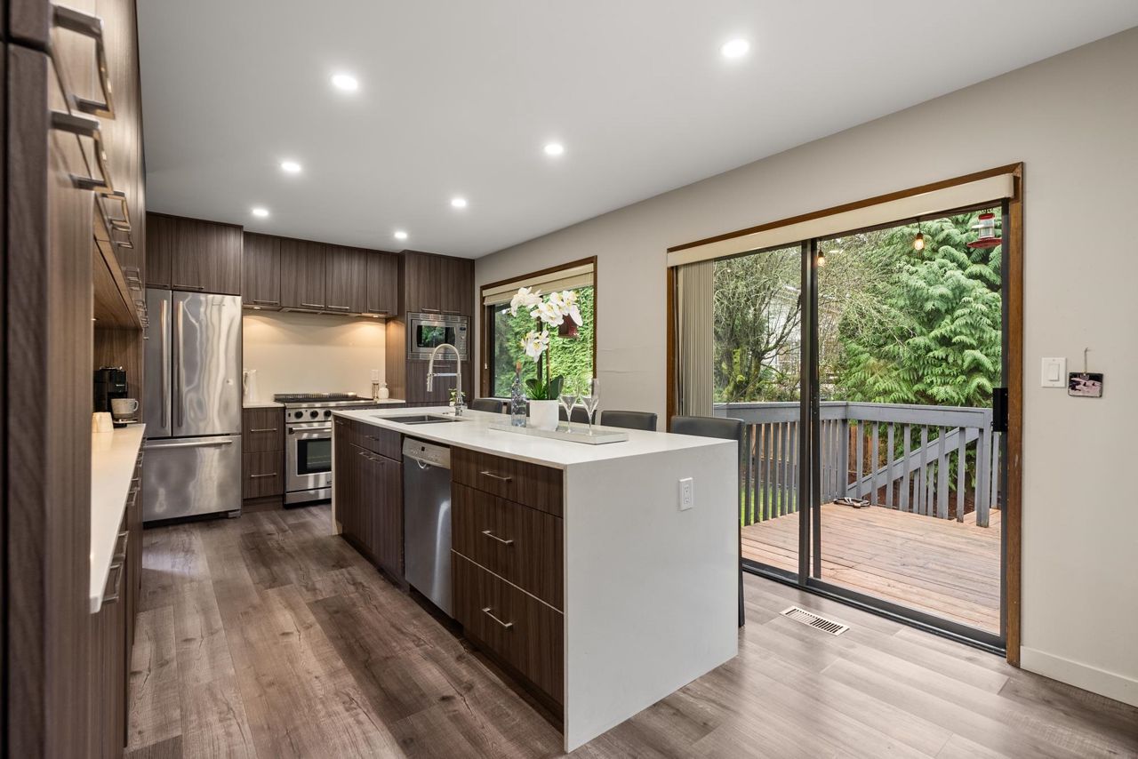 RARE UPDATED home in Fabulous Sunshine Hills with an excellent location ready for the next family to make their own. Sussex Pl is a quiet cul-de-sac w/ no over-head wires, easily walkable to both levels of coveted schools. Over 3000 SF of living space offering 6 bdrms & 3 baths. Many updates over the years: roof, gutters & downspouts (2018), HW tank (2023) exterior paint (2018), new deck (2015), new fence (2023), flooring (2017), bthrms & complete kitchen renovation includ'g addition of 2nd kitchen on lower level. Sunny south-facing, easy-care b/y, fully fenced & no large trees. Unique functional layout, exuding Westcoast Contemporary style with vaulted ceilings, skylights, & beautiful clear cedar accents. One, 2 or 3 bdrm suite-ready!
