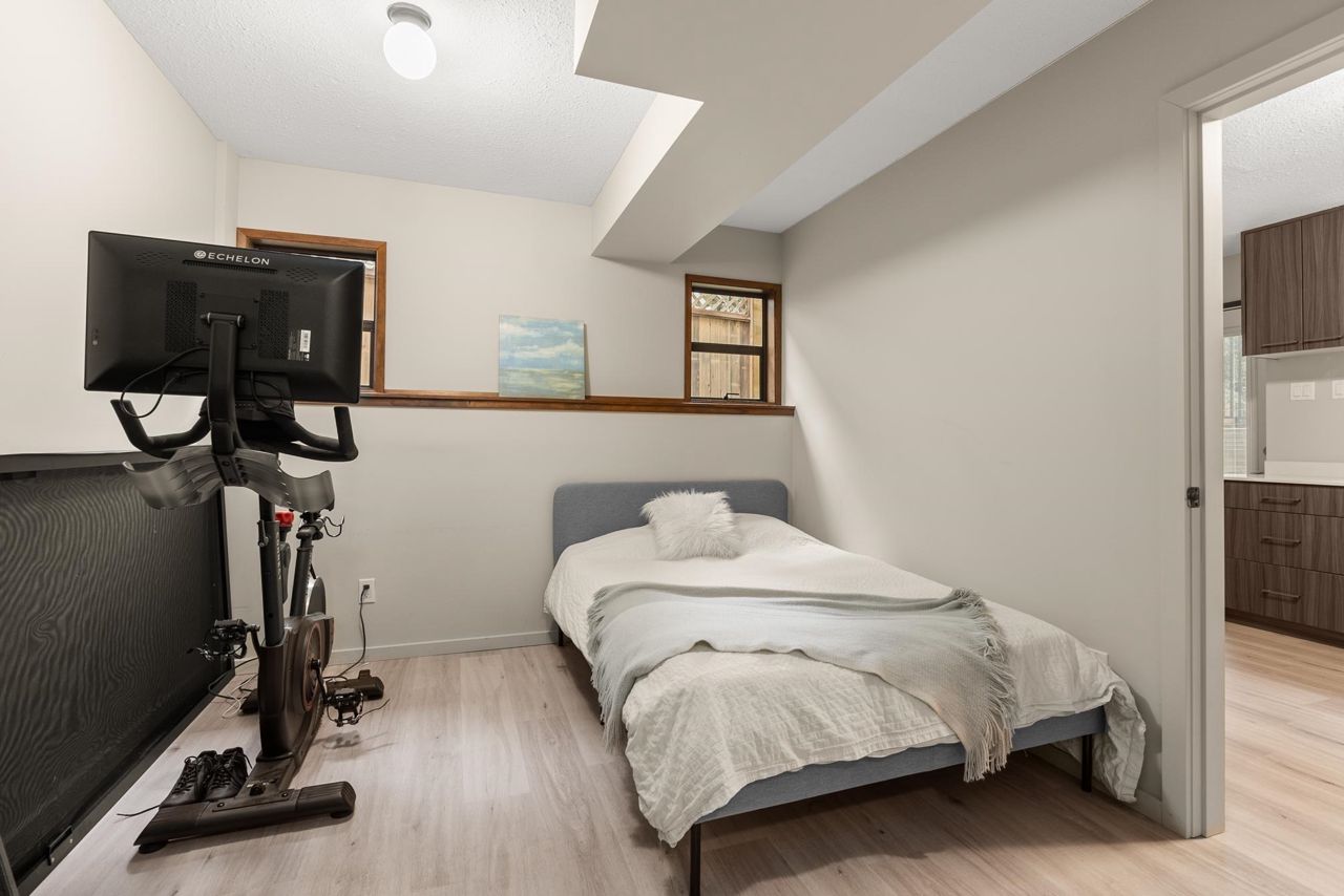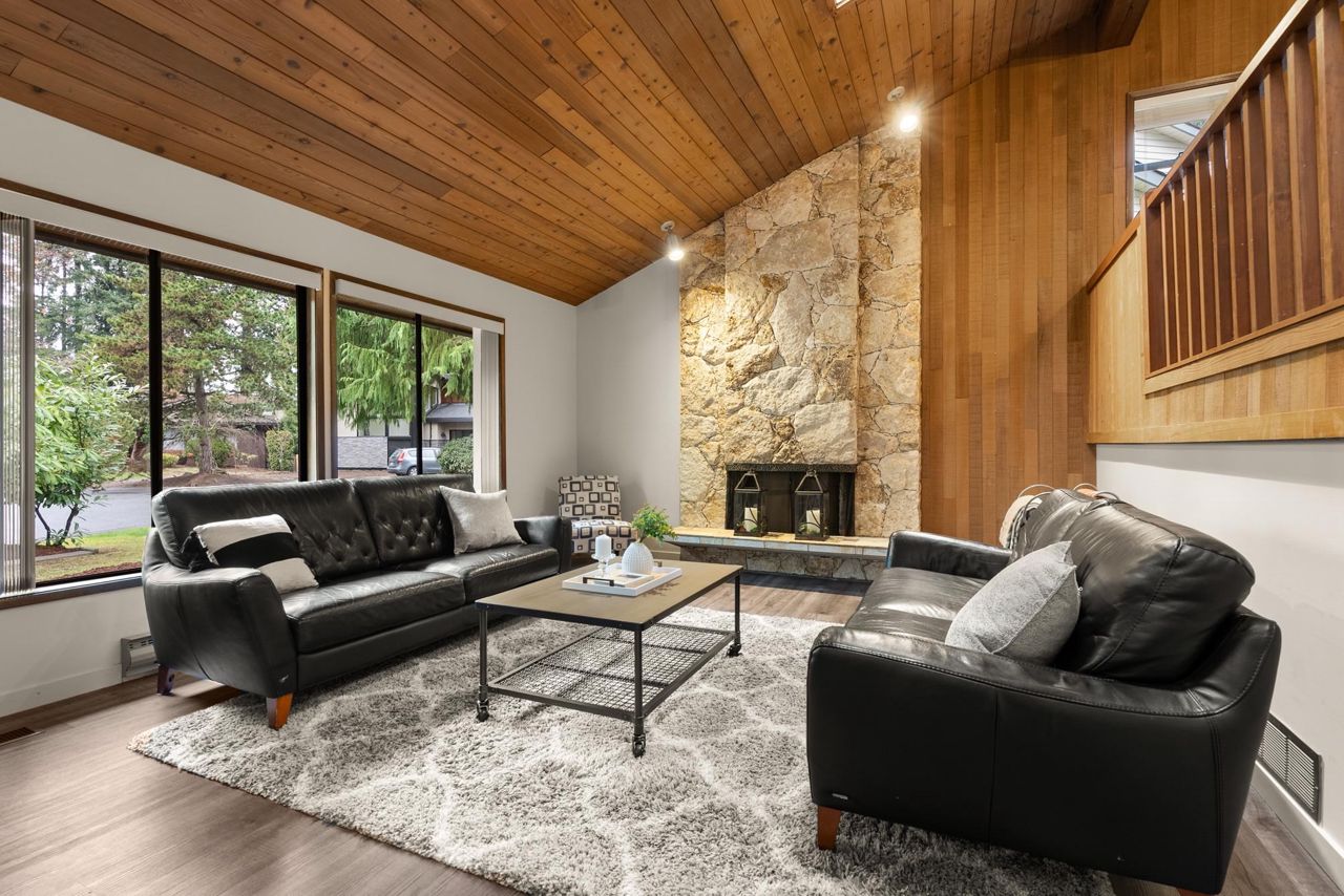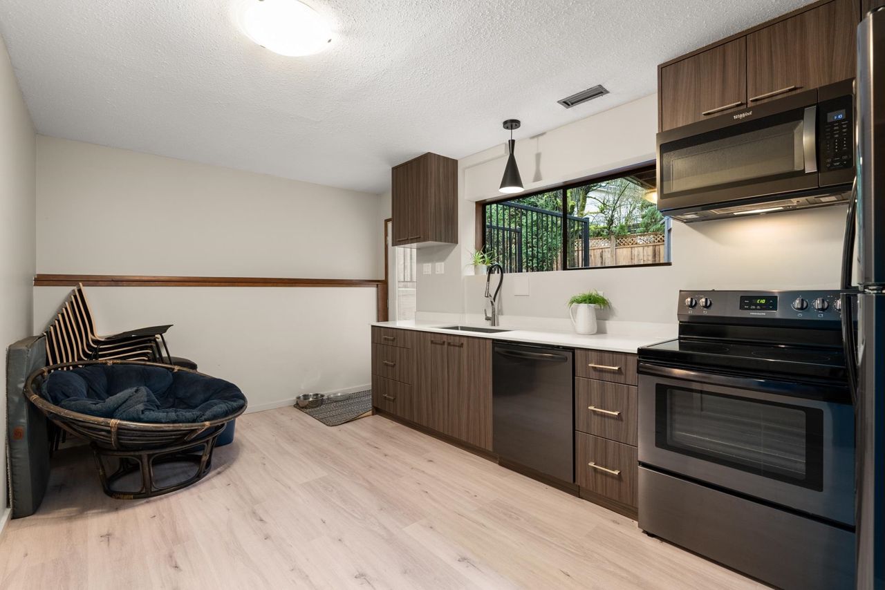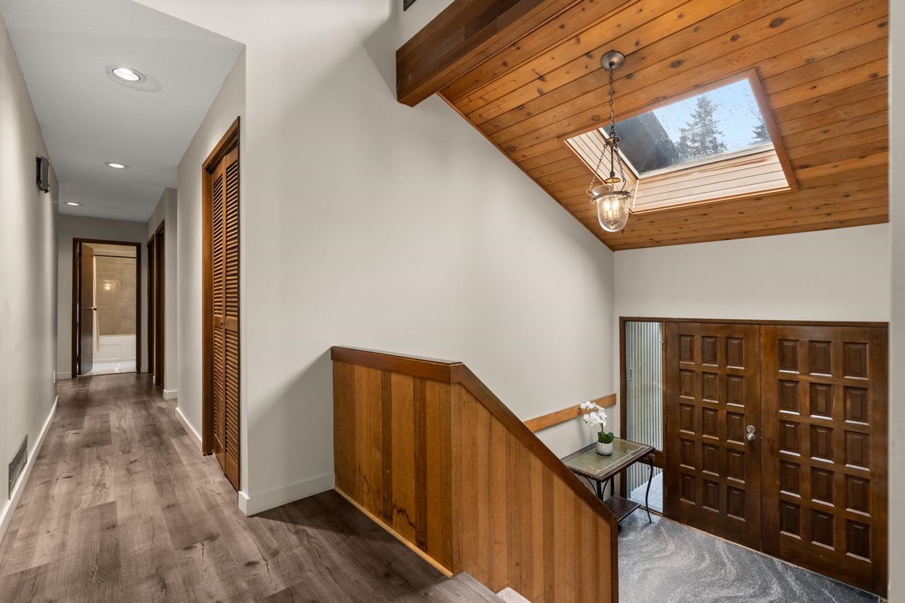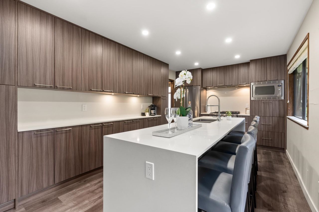 RARE UPDATED home in Fabulous Sunshine Hills with an excellent location ready for the next family to make their own. Sussex Pl is a quiet cul-de-sac w/ no over-head wires, easily walkable to both levels of coveted schools. Over 3000 SF of living space offering 6 bdrms & 3 baths. Many updates over the years: roof, gutters & downspouts (2018), HW tank (2023) exterior paint (2018), new deck (2015), new fence (2023), flooring (2017), bthrms & complete kitchen renovation includ'g addition of 2nd kitchen on lower level. Sunny south-facing, easy-care b/y, fully fenced & no large trees. Unique functional layout, exuding Westcoast Contemporary style with vaulted ceilings, skylights, & beautiful clear cedar accents. One, 2 or 3 bdrm suite-ready!