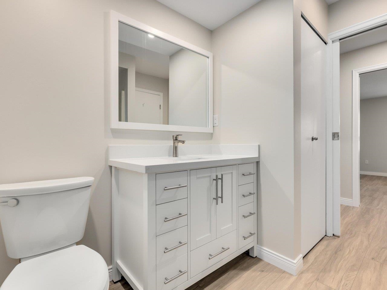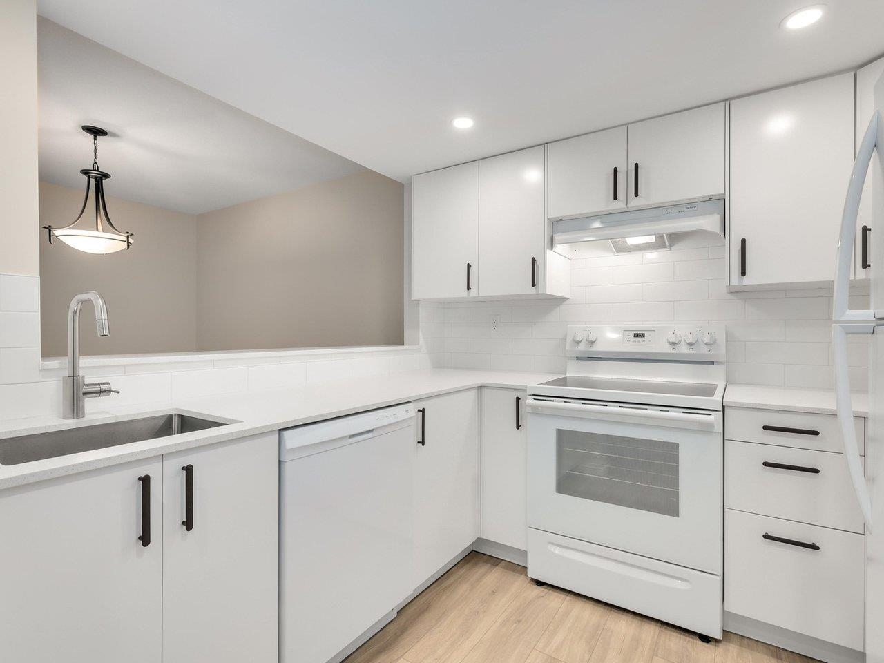 $60,000 worth of upgrades and front & center in this beautiful 2 bed, 1 Bath, 1002 sq ft ground level suite at the well loved and centrally located "Camelia" building in the heart of sunny Tsw. Updates incl. a brand new kitchen with shaker style, soft close cabinetry & new appliances, new electrical, heating, plumbing, vinyl plank flooring, paint, toilet, vanity and the list goes on! Superb floor plan includes a primary bedroom with walk-in-closet, 2nd bedroom, 4 piece bathroom, gas fireplace and a covered patio space with its own private entrance. 1 parking, 1 storage. Sunday September 3rd Open house 2-4pm