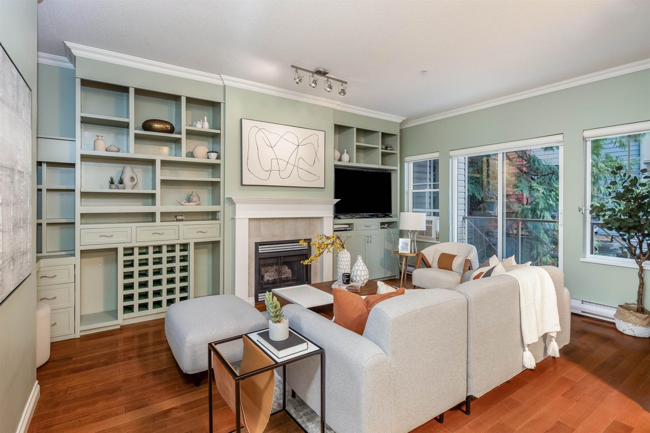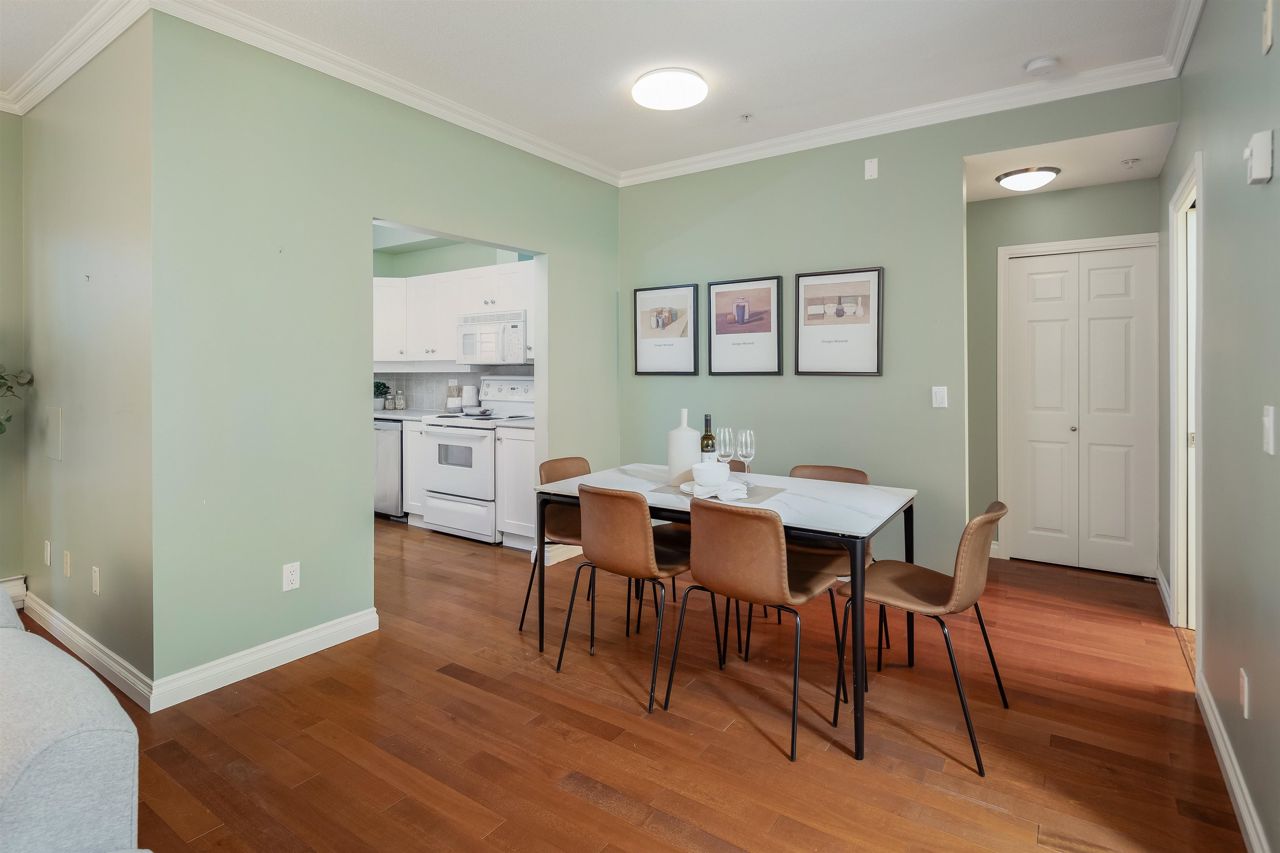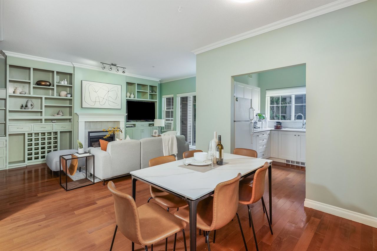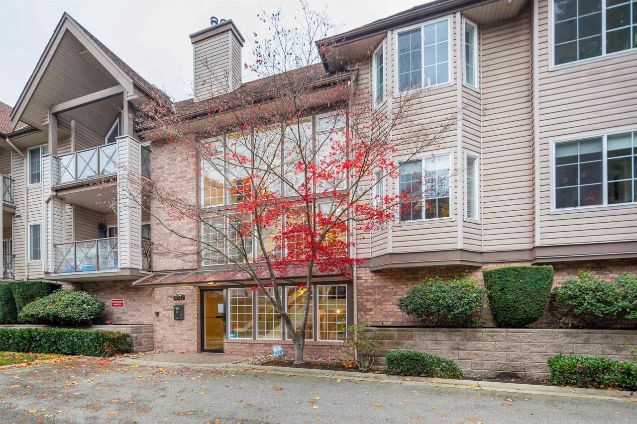 Welcome to ADLINGTON COURT! This ultra-spacious 811 SF 1 bed home has been meticulously maintained & tastefully renovated! Open concept living & dining room features functional wall built-ins which provide tons of storage space including wine rack, side table & AIR CON! Kitchen has new dishwasher & plenty of countertop & cabinets for your culinary ideas. Large quiet patio is the ideal oasis for relaxation & BBQs. Beautifully updated bathroom has spa-inspired shower w/ large mirror & vanity! Incredible bedroom can fit KING bed + ample space for dressers/crib! Guest suite avail for your family & friends to stay over. 1 PARKING & LOCKER. 2 PETS & RENTALS OK! STEPS to Trenant Park Square, Community Centre, Schools, Parks, Dining, Transit & Hwy to Van! OPEN HOUSE NOV 18/19 2-4PM. MUST SEE!