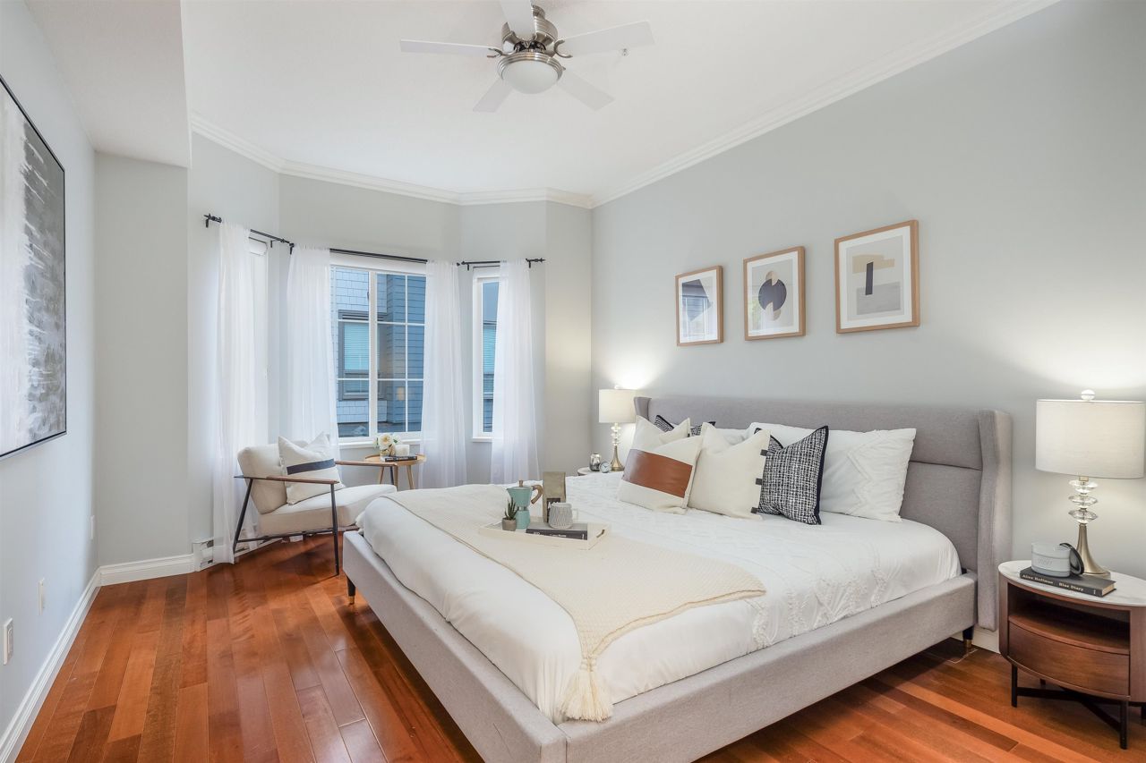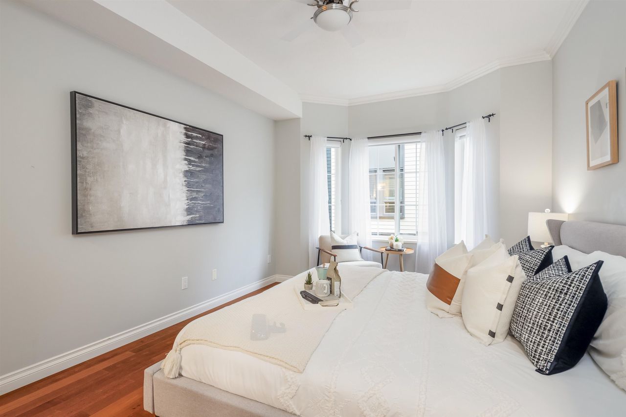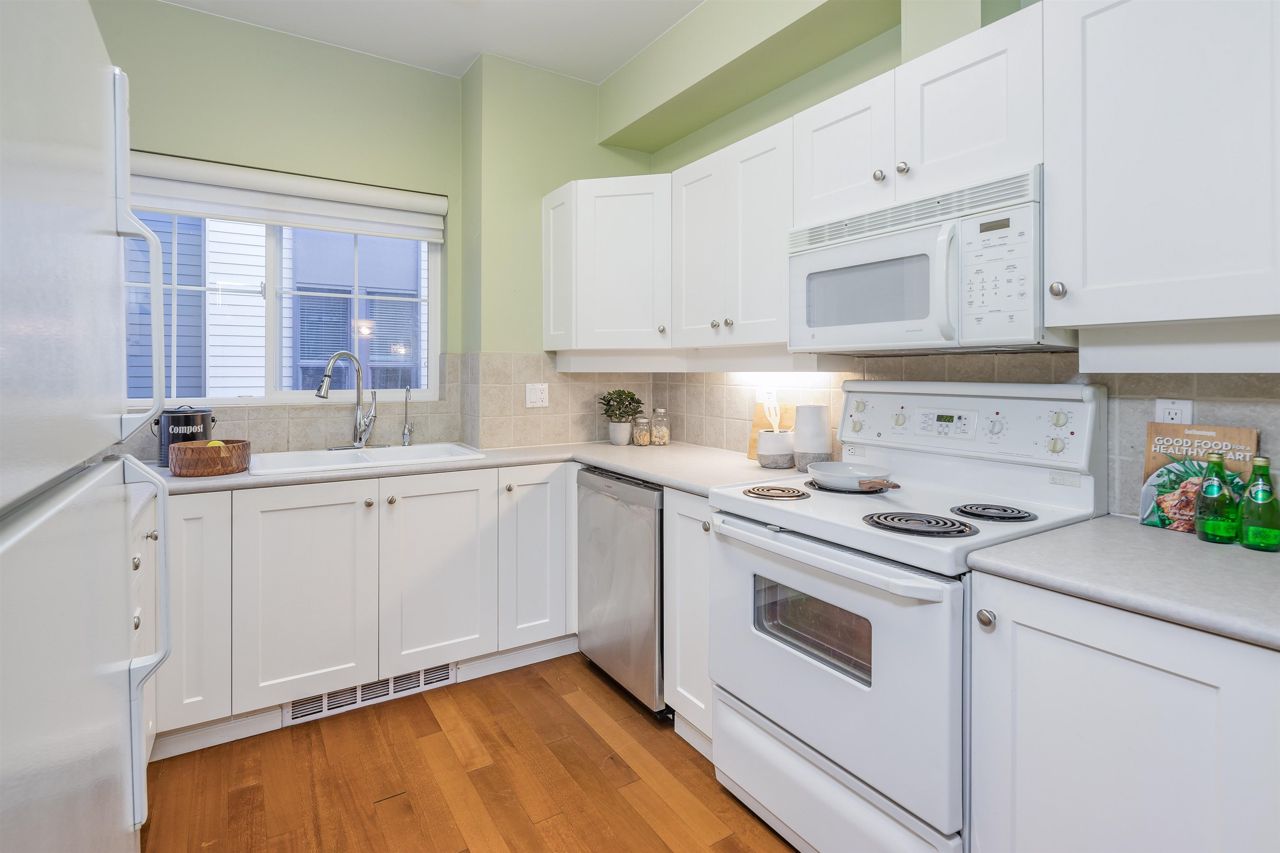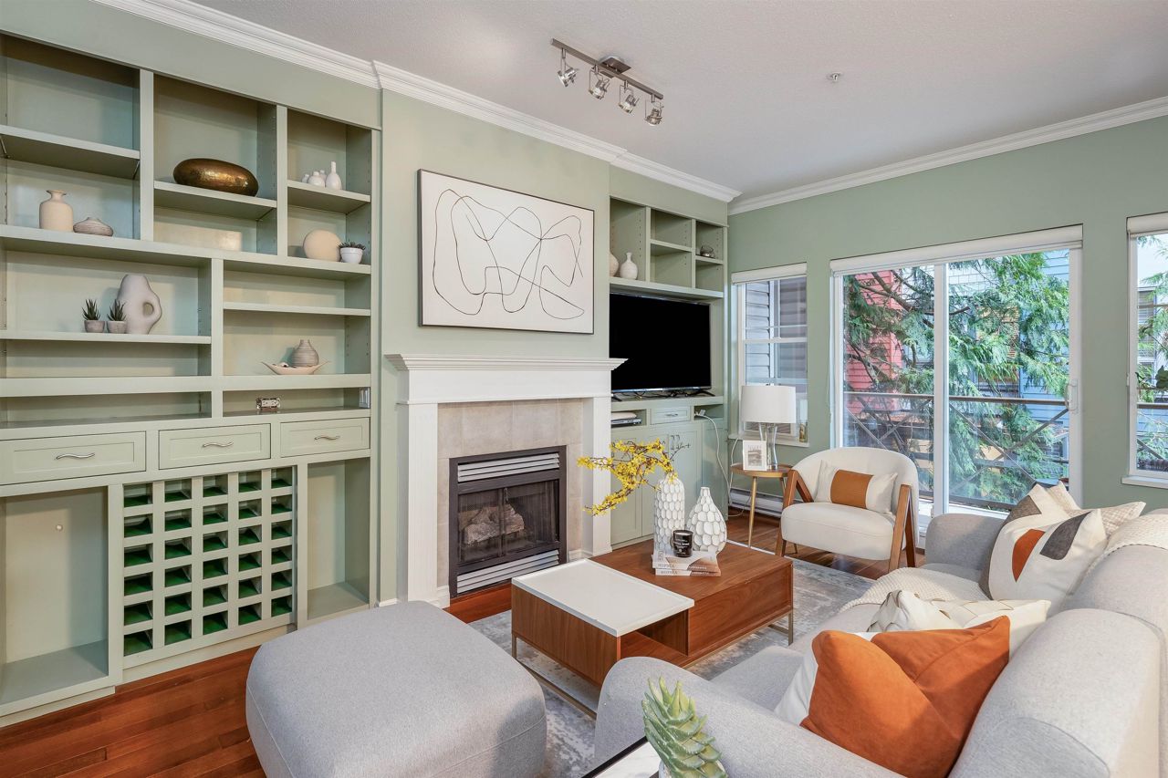 Welcome to ADLINGTON COURT! This ultra-spacious 811 SF 1 bed home has been meticulously maintained & tastefully renovated! Open concept living & dining room features functional wall built-ins which provide tons of storage space including wine rack, side table & AIR CON! Kitchen has new dishwasher & plenty of countertop & cabinets for your culinary ideas. Large quiet patio is the ideal oasis for relaxation & BBQs. Beautifully updated bathroom has spa-inspired shower w/ large mirror & vanity! Incredible bedroom can fit KING bed + ample space for dressers/crib! Guest suite avail for your family & friends to stay over. 1 PARKING & LOCKER. 2 PETS & RENTALS OK! STEPS to Trenant Park Square, Community Centre, Schools, Parks, Dining, Transit & Hwy to Van! OPEN HOUSE NOV 18/19 2-4PM. MUST SEE!