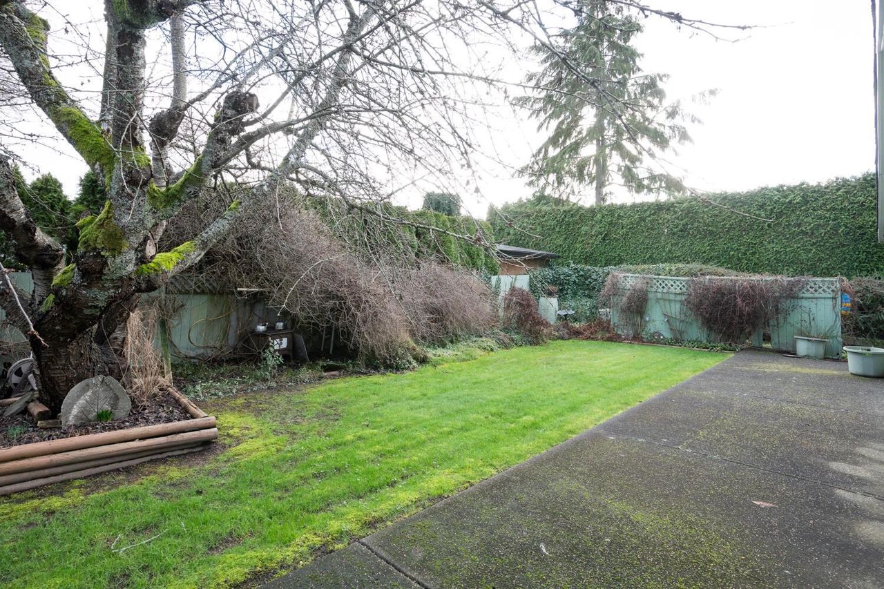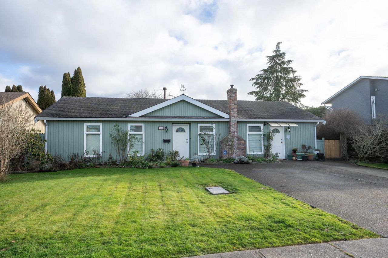 Fantastic 3 bedroom rancher with ideal plan offering 3 bedrooms and 2 baths, formal living area and a spacious family room with high ceilings overlooking private yard. Desirable West Ladner location on a quiet family-oriented street just minutes to Hawthorne School, marina, golf course, parks and town center amenities. Well maintained with updated windows and HE forced air heat. Perfect family home or for downsizing.