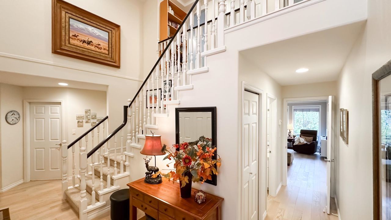 Rare find with this Master On The Main in popular "Marina Gardens". This gem is in absolutely pristine condition with numerous upgrades & renos in recent years. Features include: new kitchen cabinetry, new appliances, quartz countertops, new eng. hardwood over comforting radiant heat. Totally updated 5 piece ensuite with jetted tub, & glass block wall, fresh int. paint & modern lighting. Superb layout with 2 huge bedrms. up, 2 gas fireplaces add to the warmth of the interior. Prime southern exp. bkyd is a gardener's delight, inground sprinkler in front & back yards. Huge curb appeal with manicured front yard landscaping. Bonus storage in garage with handy drop ladder to attic. Golf course, marina & walking trails all close by. Turn key condition, act quick here.