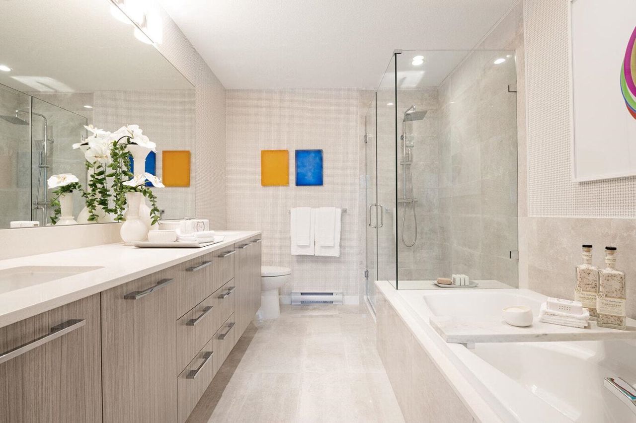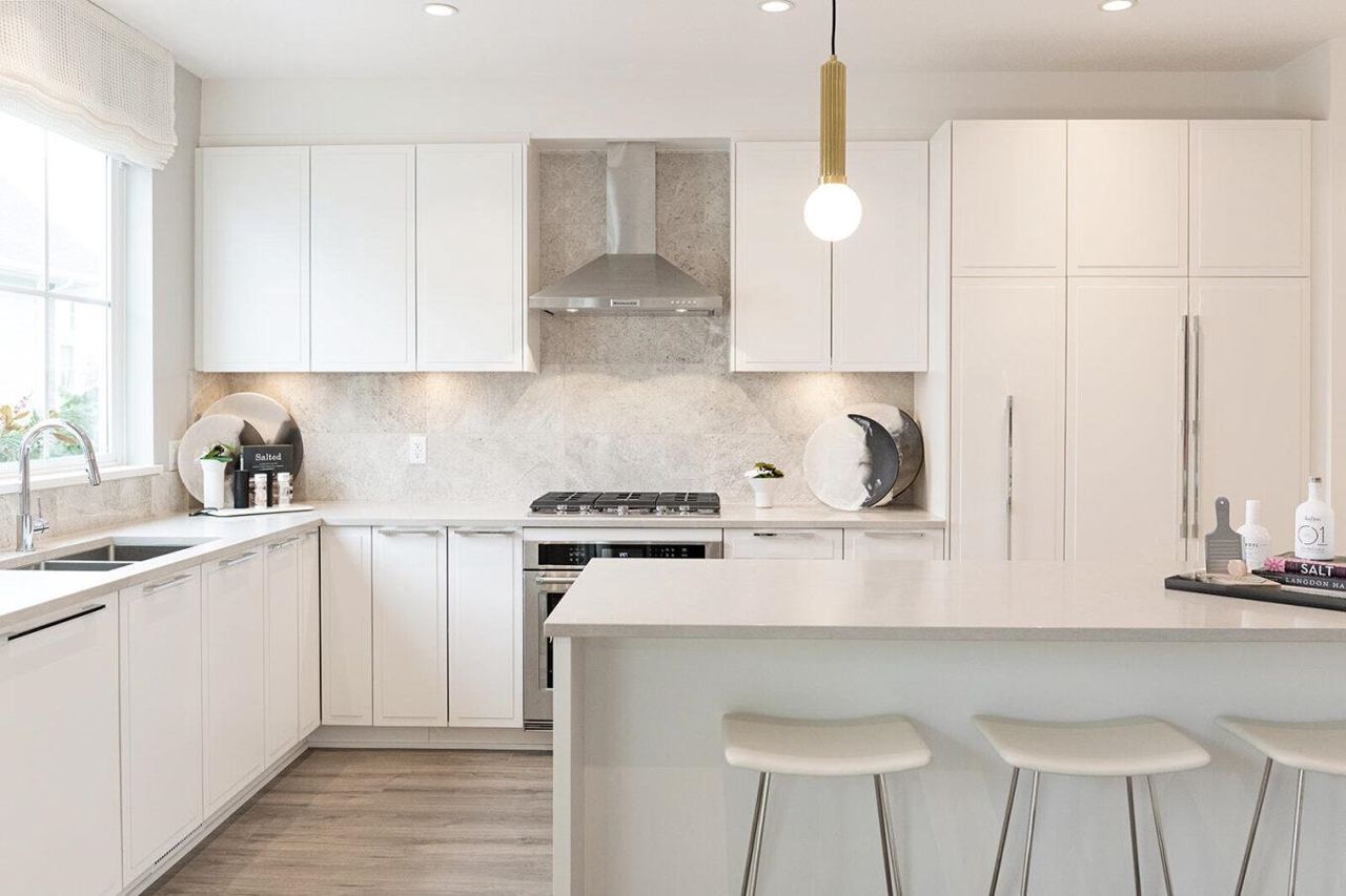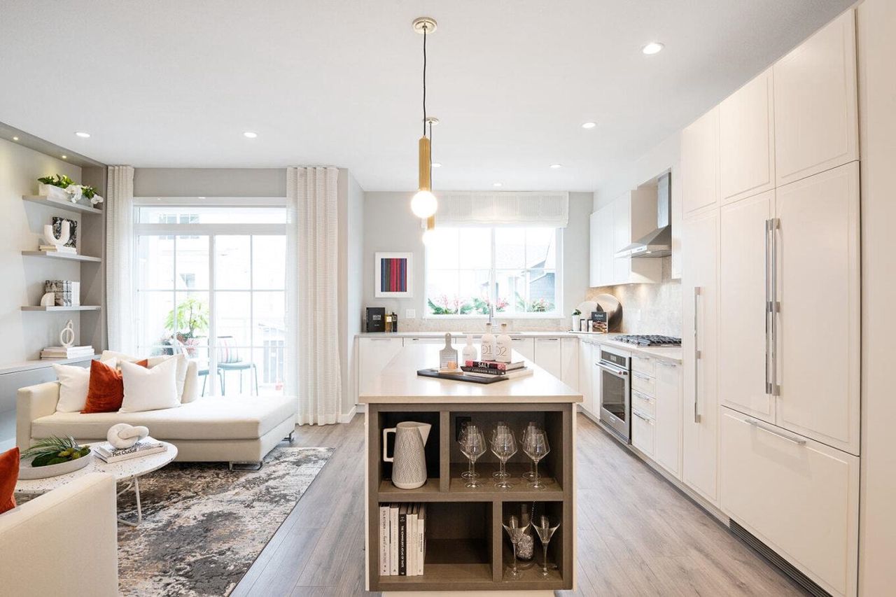 NEW 4 bedroom home in masterplanned community of Hampton Cove at Polygon's Westhampton. Explore what this growing community has to offer. This 1,947 sq. ft. 4 bed townhome features overheight main floor ceilings, laminate wood flooring, a central fireplace and deck off of the family room. The kitchen boasts custom wood cabinetry, sleek stainless steel appliances, including gas cooktop and engineered stone countertops. The main bedroom offers a large walk-in closet and the ensuite features a generous soaker tub and shower. 4th bedroom on the lower ground floor with full bathroom. Side-by-side double car garage with EV charging. Air conditioning included! Visit our sales office and display homes at 5311 Admiral Way, open noon - 5 pm daily (except Fridays), to learn more.