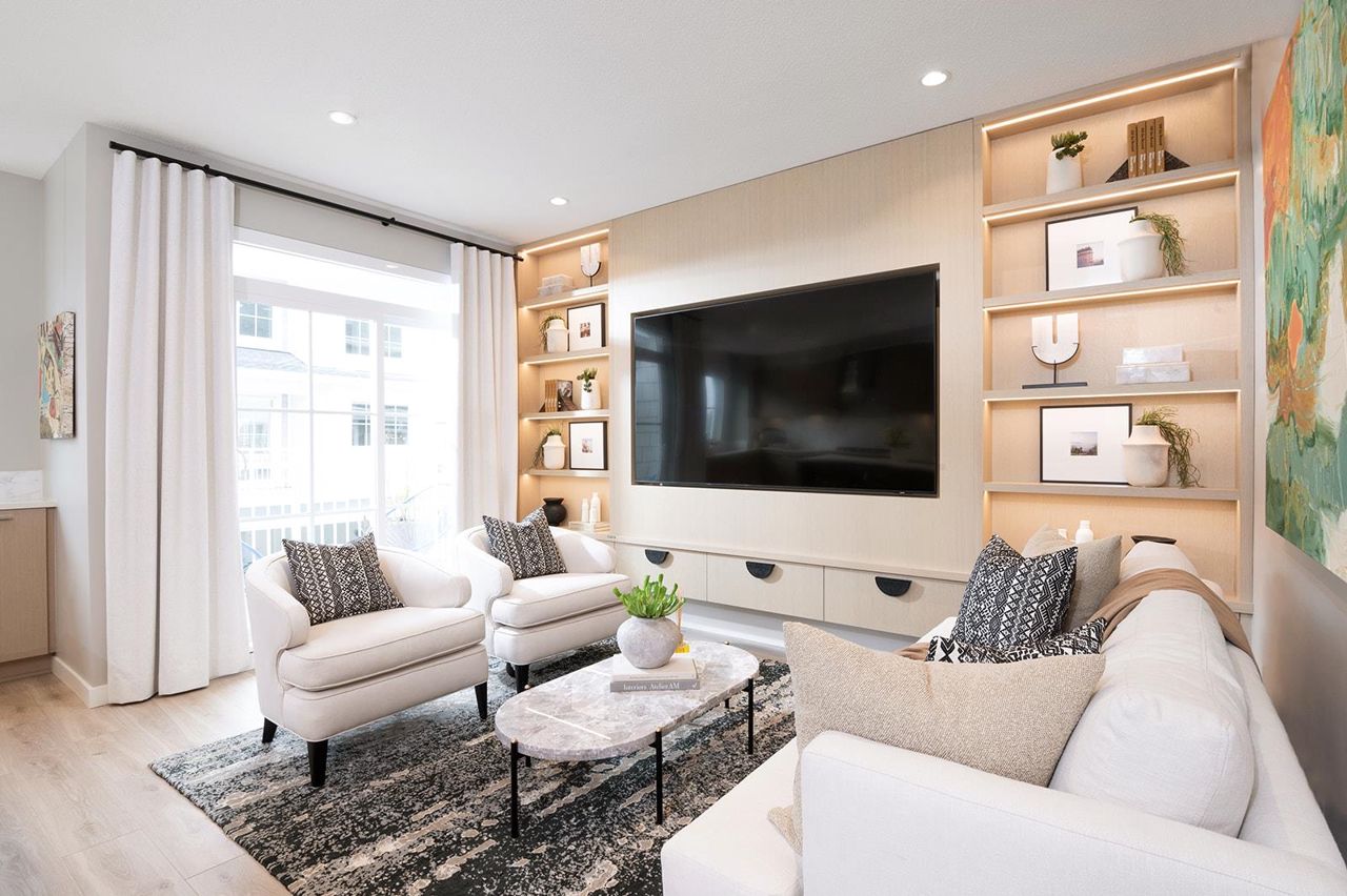 This 4 bed, 3.5 bath corner home is part of Polygon's Westhampton, a collection of townhomes in the vibrant masterplanned community of Hampton Cove. Enjoy 2,098 sq. ft. of living space with overheight ceilings, laminate wood flooring, and a deck off of the kitchen. This chef's kitchen features a large central island perfect for entertaining, custom cabinetry, engineered stone countertops and sleek appliances. The master ensuite boasts a luxurious soaker tub and shower, and the main bedroom has the amenity of a large walk- in closet. Downstairs, enjoy the convenience of a double car garage with ample storage. Visit our sales office and display homes at 5311 Admiral Way, open noon - 6 pm daily (except Fridays), to learn more.