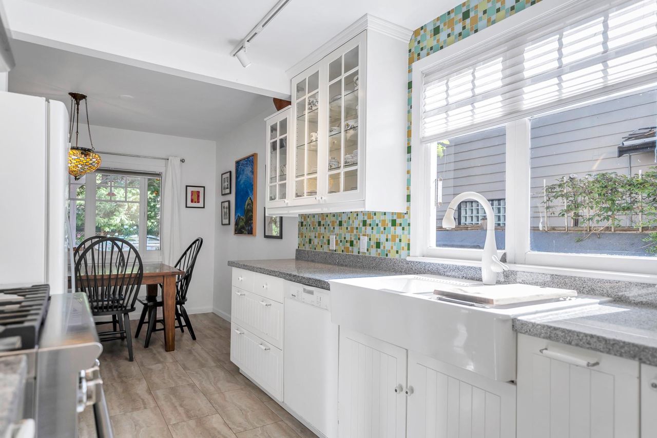The inviting exterior charm pulls at your imagination and when you cross the energetic threshold you know in your very fibre this is a very special home. Visions of a simpler life flash through your mind all the while the modern day convenience of high end appliances are here. Cheery renovated kitchen and bathroom. Original stone fireplace too beautiful not to touch and wonder how lovely and cozy it would be to live here. Romance and splendour will captivate you. One block from the beach and dyke walking paths and situated on a 7000sq’ lot. Upgraded 200 amp electric. Separate garage. I invite you to come and let 5966 Kirkwood Dr Welcome you Home!