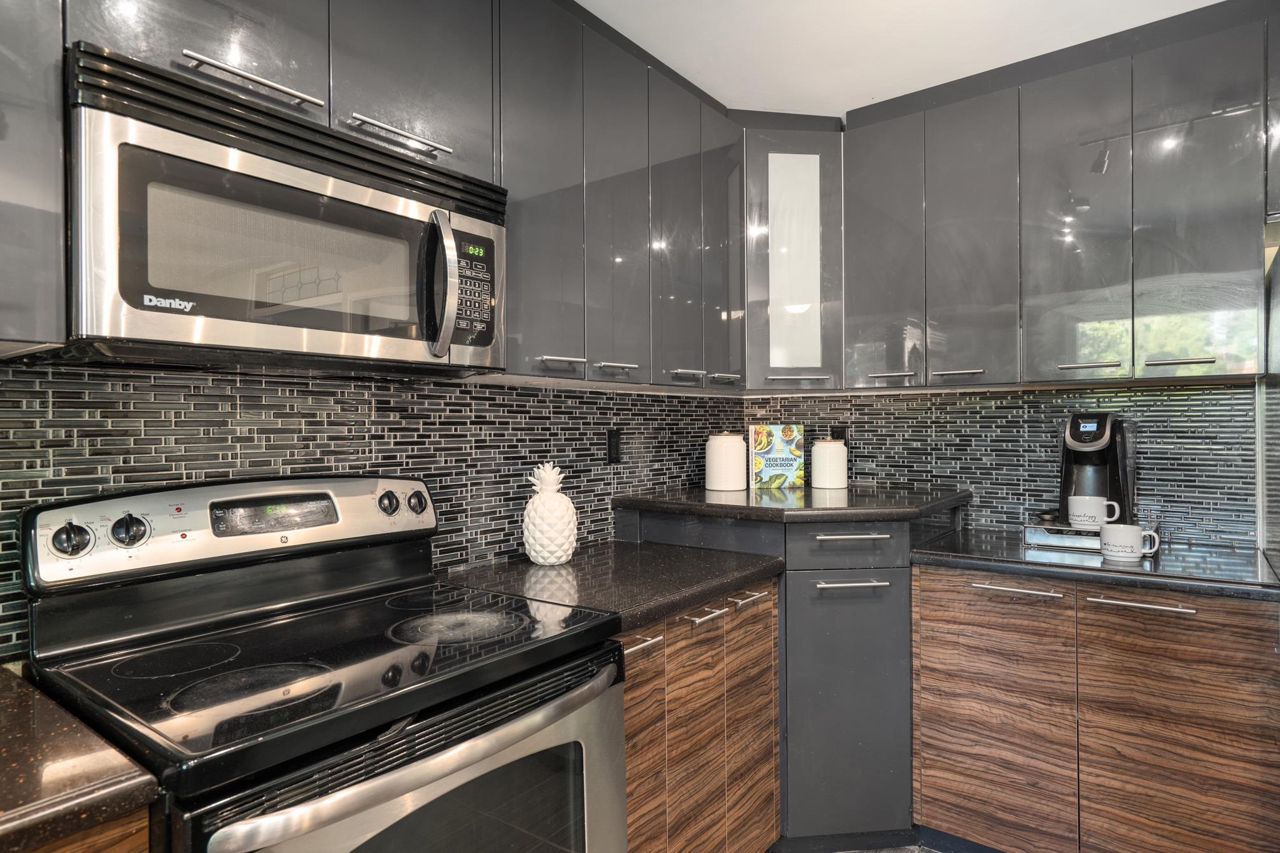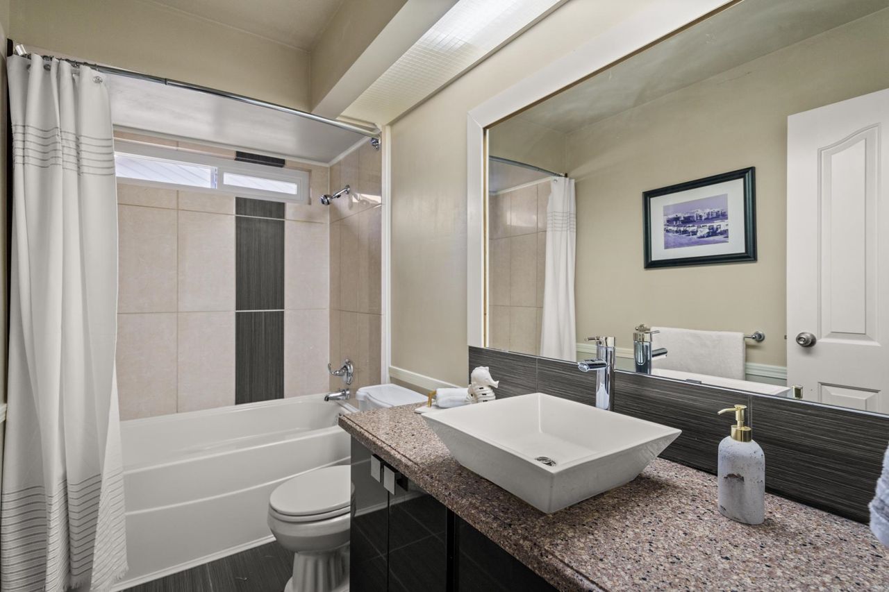 Stunning Modern Renovation! This exceptional home in the highly coveted Sunshine Woods neighborhood has been beautifully renovated, boasting a sleek & modern design. With over 2400 SF of living space, this residence offers ample room for comfortable living. Nestled next to the largest & most desirable park in Delta & with Pinewood Elementary at its heart, this neighborhood is truly a hidden gem. Featuring 4 bdrms & 3.5 bthrms, the property includes an area above that is perfect for a student, parent, or adult-child suite, complete with a rough-in for kitchen, full bthrm, bdrm & lvng rm space. The low-maintenance yard provides privacy & multiple outdoor gathering areas to relax.Enjoy impressive street appeal with a rubber paved driveway, newer windows, and stylish exterior paint.