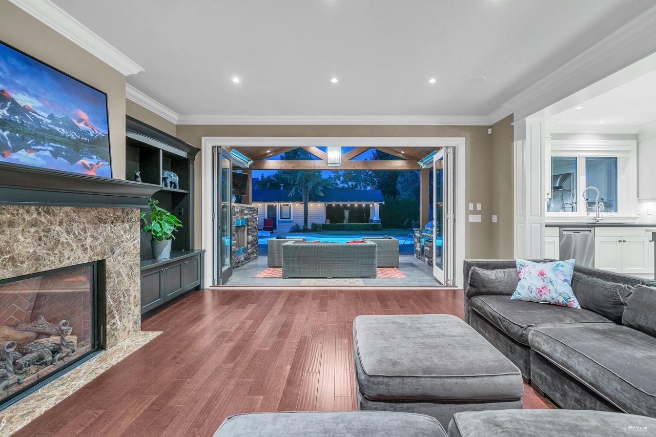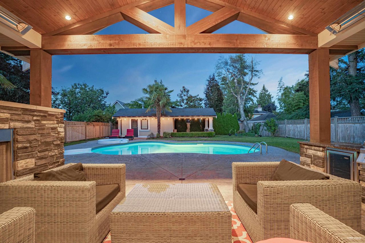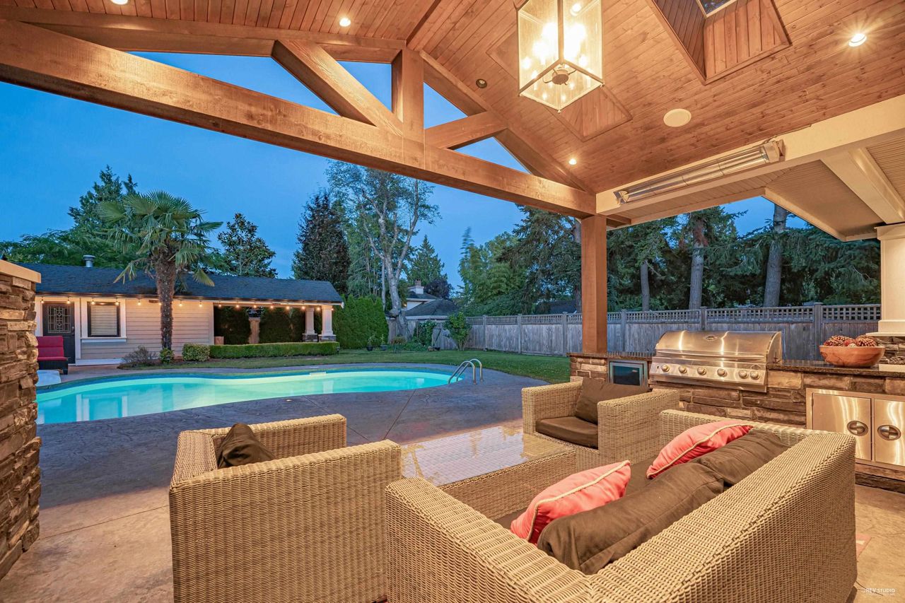 Few steps walk to the Centennial Beach. The huge, open concept living area is complimented by folding Nano doors which lead to a peaceful outdoor retreat including a water pool, hot tub, palm trees, gas fireplace, heaters, built-in gas BBQ, TV and speakers. The kitchen features a large marble island surrounded by warm, spacious cabinetry. Aspiring and accomplished chefs alike will appreciate the Wolf s/s appliances, 6 burner gas cooktop and grill, dual ovens, Sub-Zero fridge, and wine fridge. The master suite is its own private sanctuary with direct access to the backyard. It features a massive ensuite with rainfall showers, steam shower, and a huge walk-in closet. It also features an upstairs in-law suite with full kitchen and a 231 sf living space. Tsawwassen Mills, Golf Courses nearby.