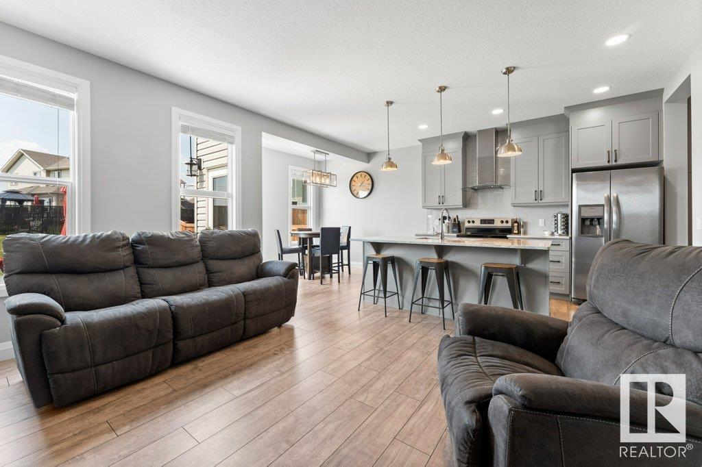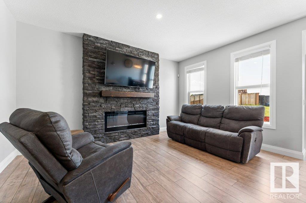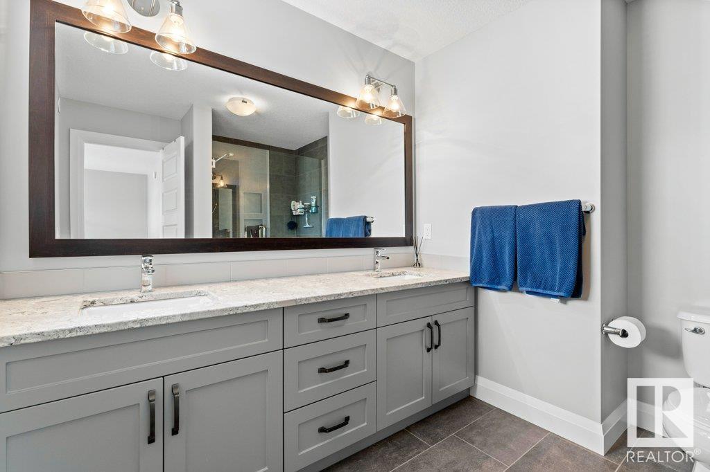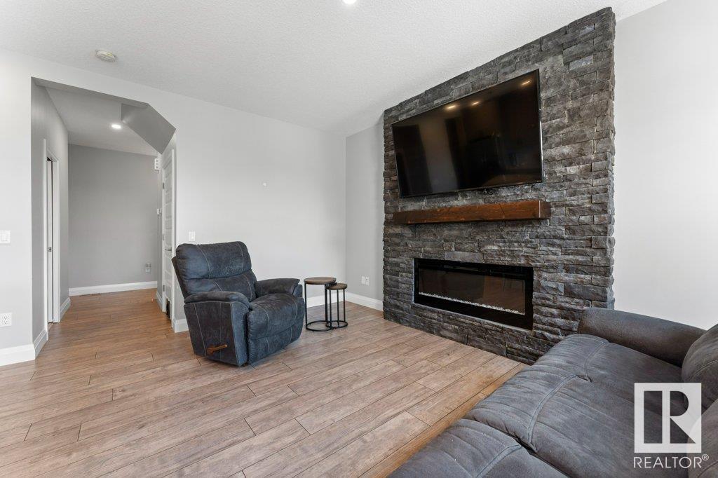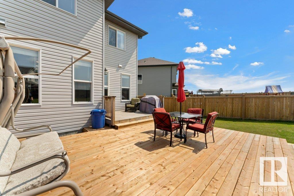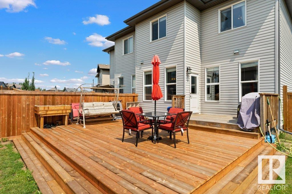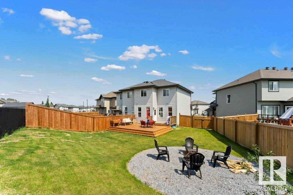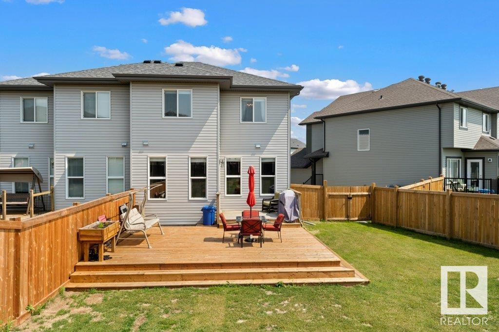 *Assumable Mortgage with 2.14%* Discover the perfect retreat in Devon's sought-after community! This half duplex home, crafted by Alquinn Homes, offers an exquisite blend of luxury and comfort & is situated on a large pie lot. Step inside and be greeted by the impressive 9-foot ceilings on the main floor, creating a spacious and inviting ambiance & stay cool with A/C. Quartz countertops throughout add a touch of elegance to the home's modern design. The kitchen is a chef's dream with a walk-through pantry featuring a convenient coffee bar. Entertain guests or savor peaceful moments on the large deck overlooking the landscaped backyard and firepit area. With 3 bedrooms, a bonus room, and upstairs laundry, practicality meets style effortlessly. Retreat to the primary suite, complete with a double sink vanity & walk-in shower. Basement is partially finished with roughed in electrical, framing completed and some drywalling. Embrace a life of comfort and sophistication in Devon's warm and welcoming community! (id:22211)