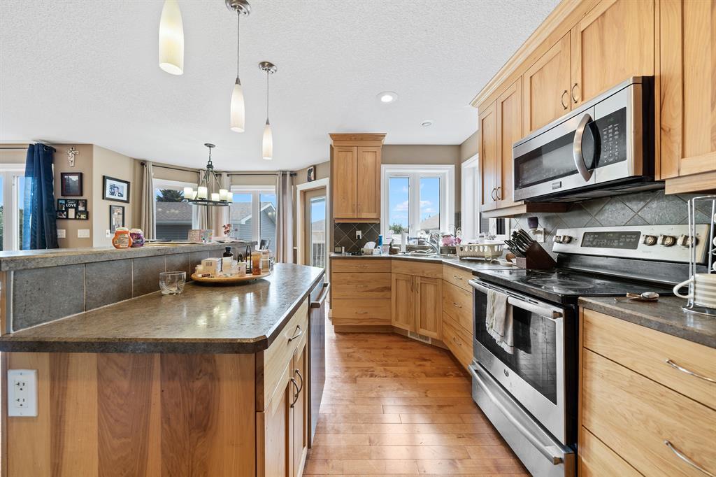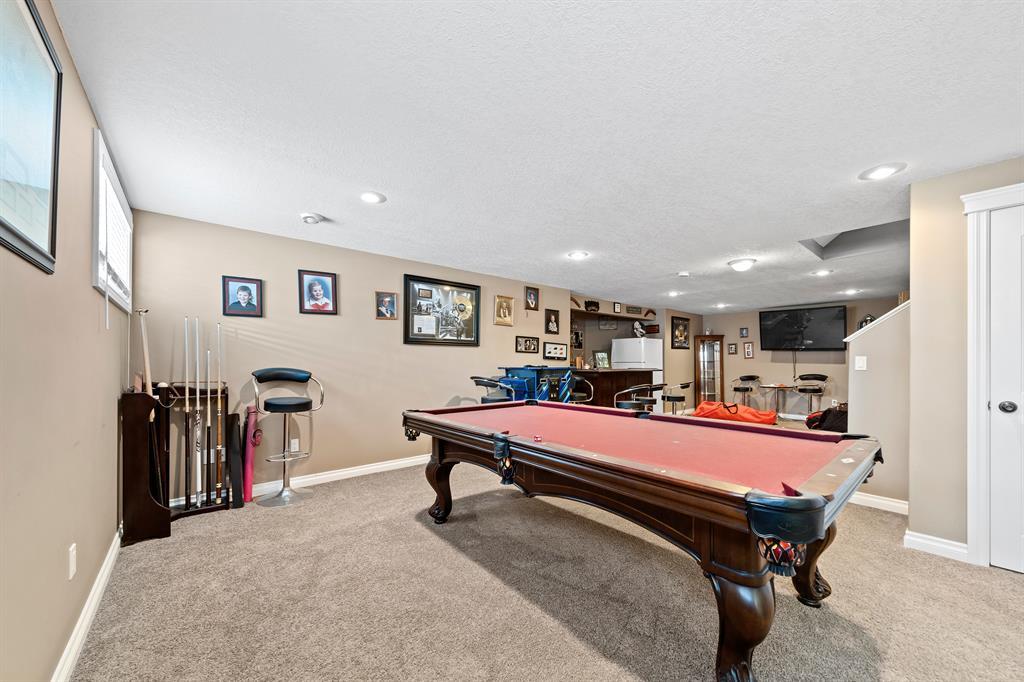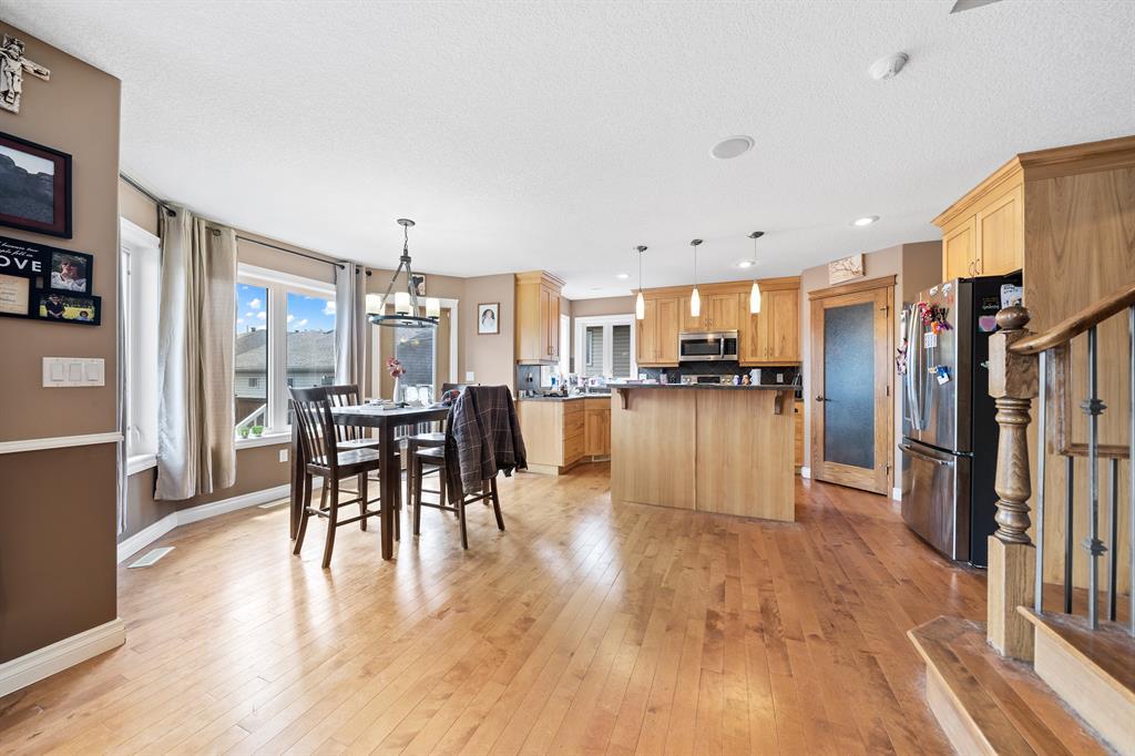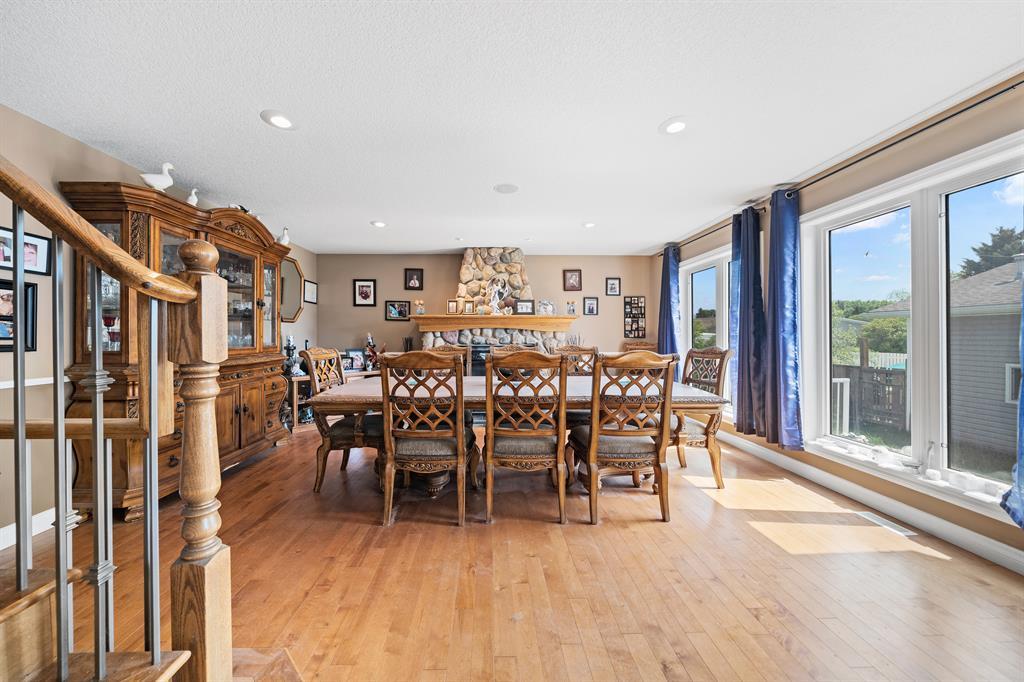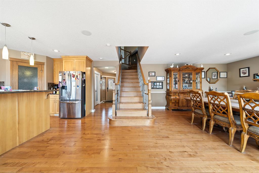 Welcome to this 2300 sqft 2008 built 2 storey house near to the core town of Didsbury. This home comes with front attached triple garage and detached double garage .This house leads you through a flex/office room towards living, dining and open kitchen combo .The living room is decorated with a gas fireplace .Other highlights of this house are hardwood flooring in main level and stairs ,main level laundry room, huge bonus room with vaulted ceiling, master bedroom with ensuite ,two other decent sized bedroom and common full washroom upstairs. Also there is a fully finished basement with one bedroom ,full washroom ,huge rec room and wet bar. The huge backyard ,wide deck, RV parking area are other attractions of this property. (id:22211)