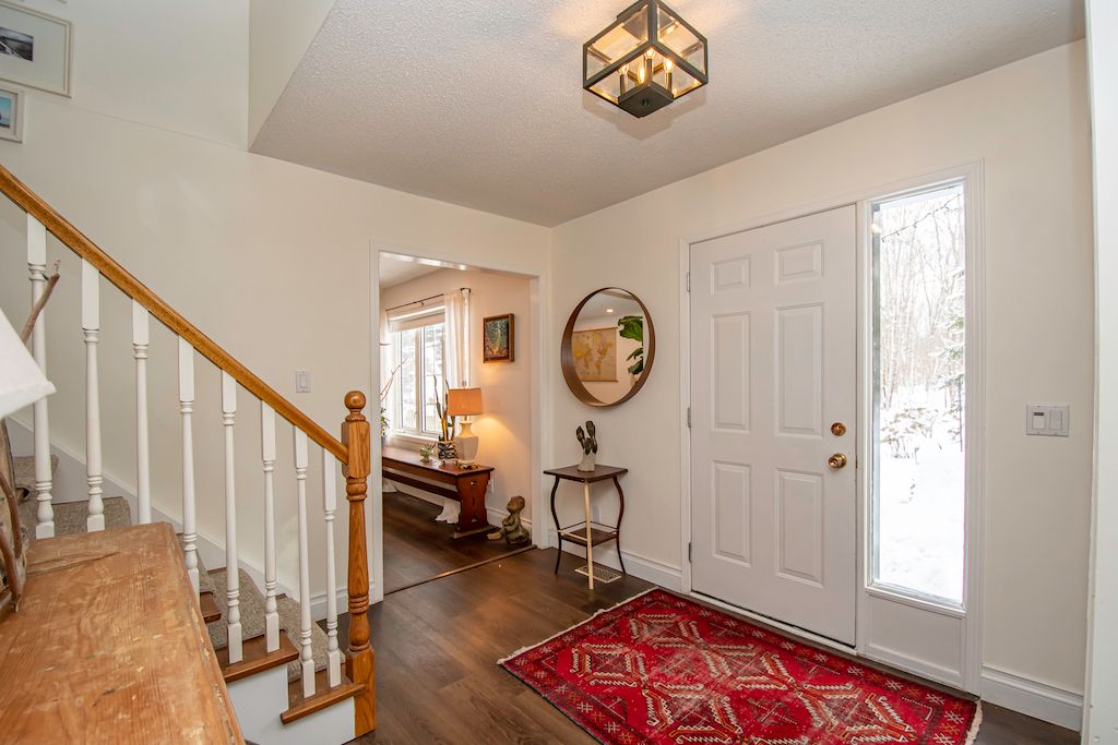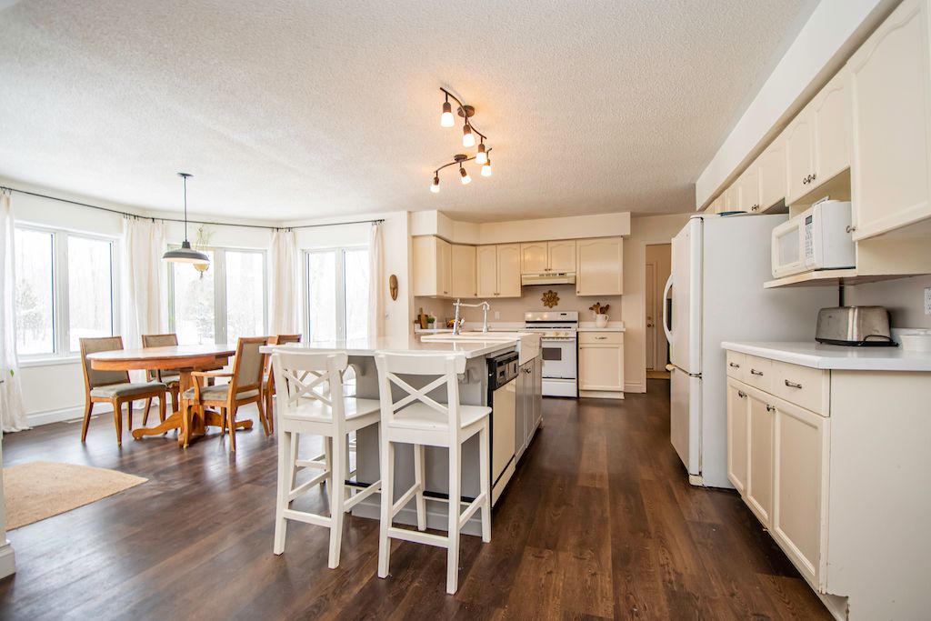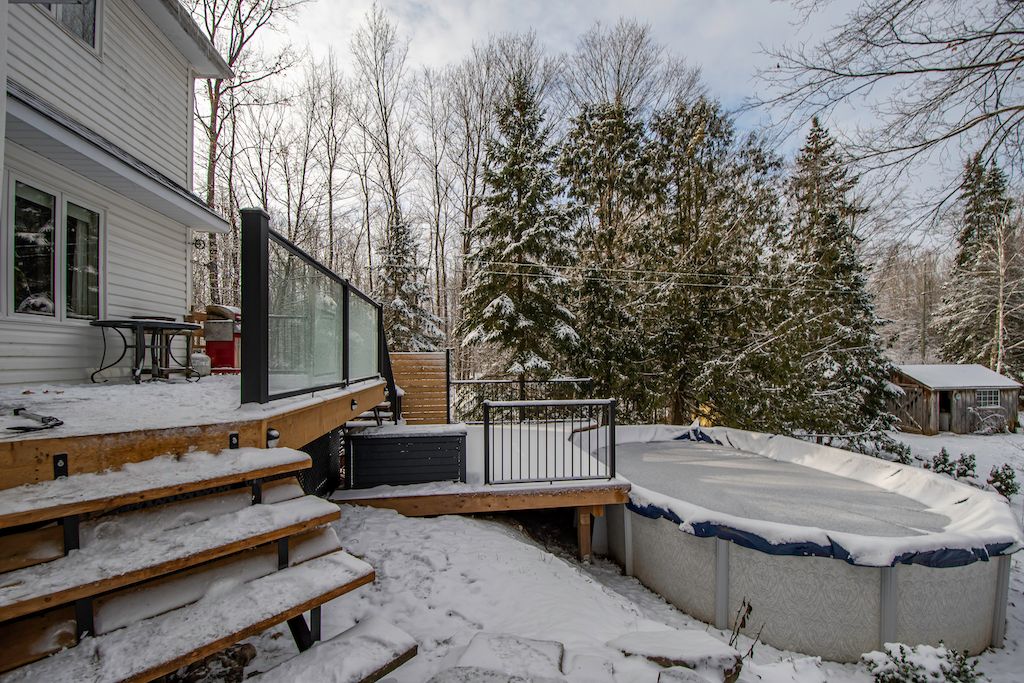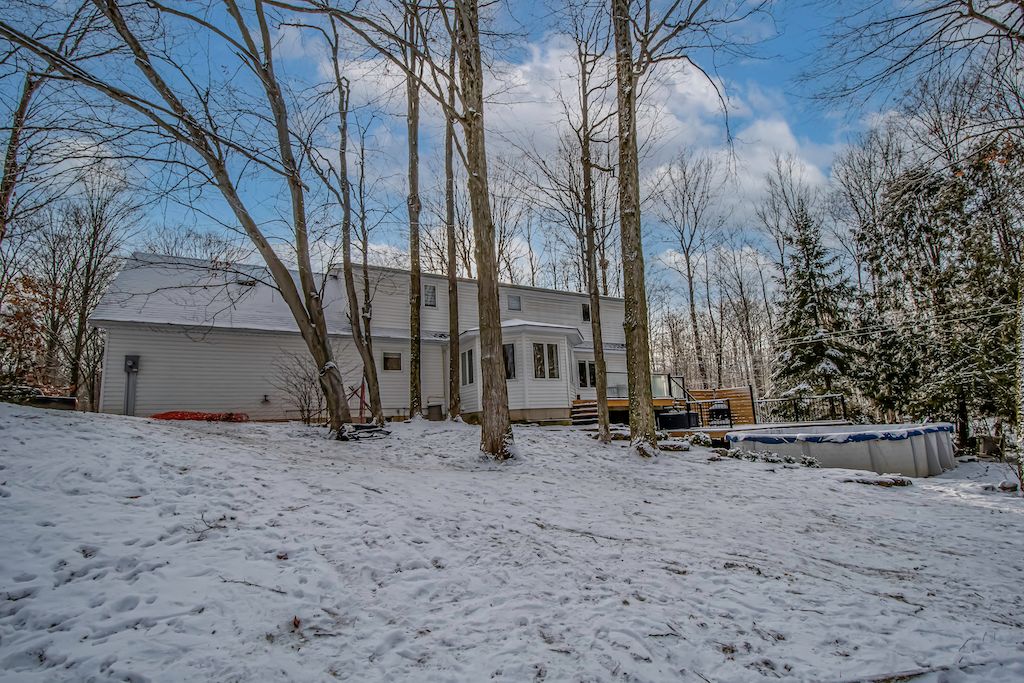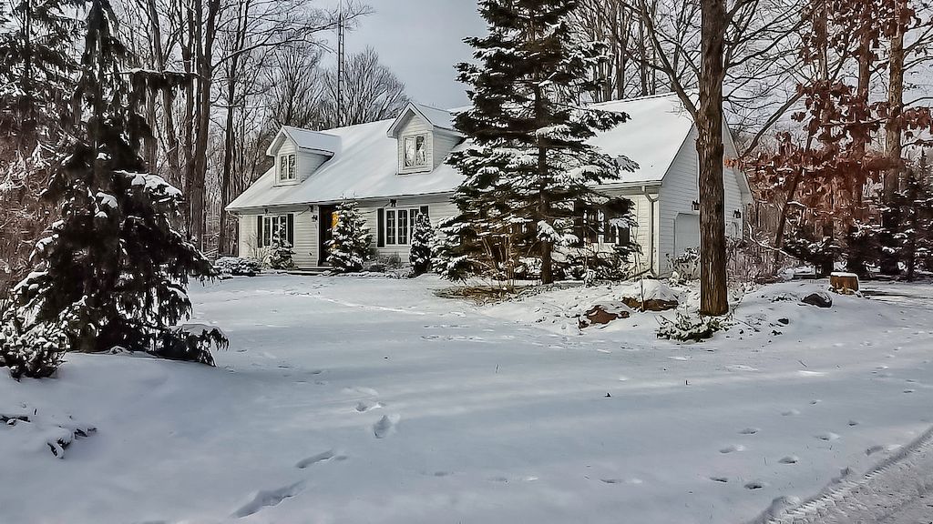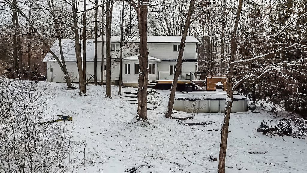 Welcome to the very pretty & private road known as Demers. A beautiful country home on 2.6 acres surrounded by trees. Main floor is bright & spacious with lots of windows looking out to a sloping meadow. Lg open concept eat-in kitchen. Family room has custom built-in shelving & is perfect to gather & spend time together. A cozy den area that is perfect for a little quieter space to unwind in. The “studio/office” was previously used as a formal dining room and is the perfect space to be creative. Lg private split level deck is great for entertaining & to enjoy the above ground pool (new liner 2022) Primary Bedroom is spacious with a cozy nook area for reading, has a walk-in closet & ensuite with a jacuzzi tub. There are 2 addl bdrms & 4 pc bathroom upstairs incls laundry. 2 pc powder room & mudroom area lead out to the oversized attached 1 car garage and has plenty of storage space. There is front patio area hidden among perennial gardens & forest paths for everyone to enjoy all year.