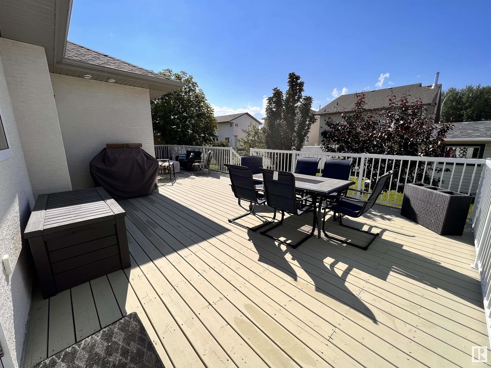 This executive home is like walking into a show home! The upstairs has been fully repainted, most light fixtures have been replaced, and the owner updated the window decor. You will enjoy the open floor plan with vaulted ceilings giving you lots of natural lighting. The home was built by Gruber Construction. The chef of the family will love the kitchen, the huge island, maple cabinets, & walk in pantry. The dining room takes you to a huge full-length deck with primary bedroom access as well. A relaxing area to entertain & enjoy the south exposure. The front facing Livingroom is complimented by engineered hardwood floor, a large front cantilever with window & vaulted ceilings. The primary bedroom has lots of room with a large walk-in closet, ensuite with jetted tub, separate shower & patio doors to the deck. Upstairs has 3 bedrooms & downstairs has 2 with a huge family room & 3 pc bath. In the winter you will enjoy the under- heat & in the summer the Air Conditioner. The back yard is fully fenced. (id:22211)