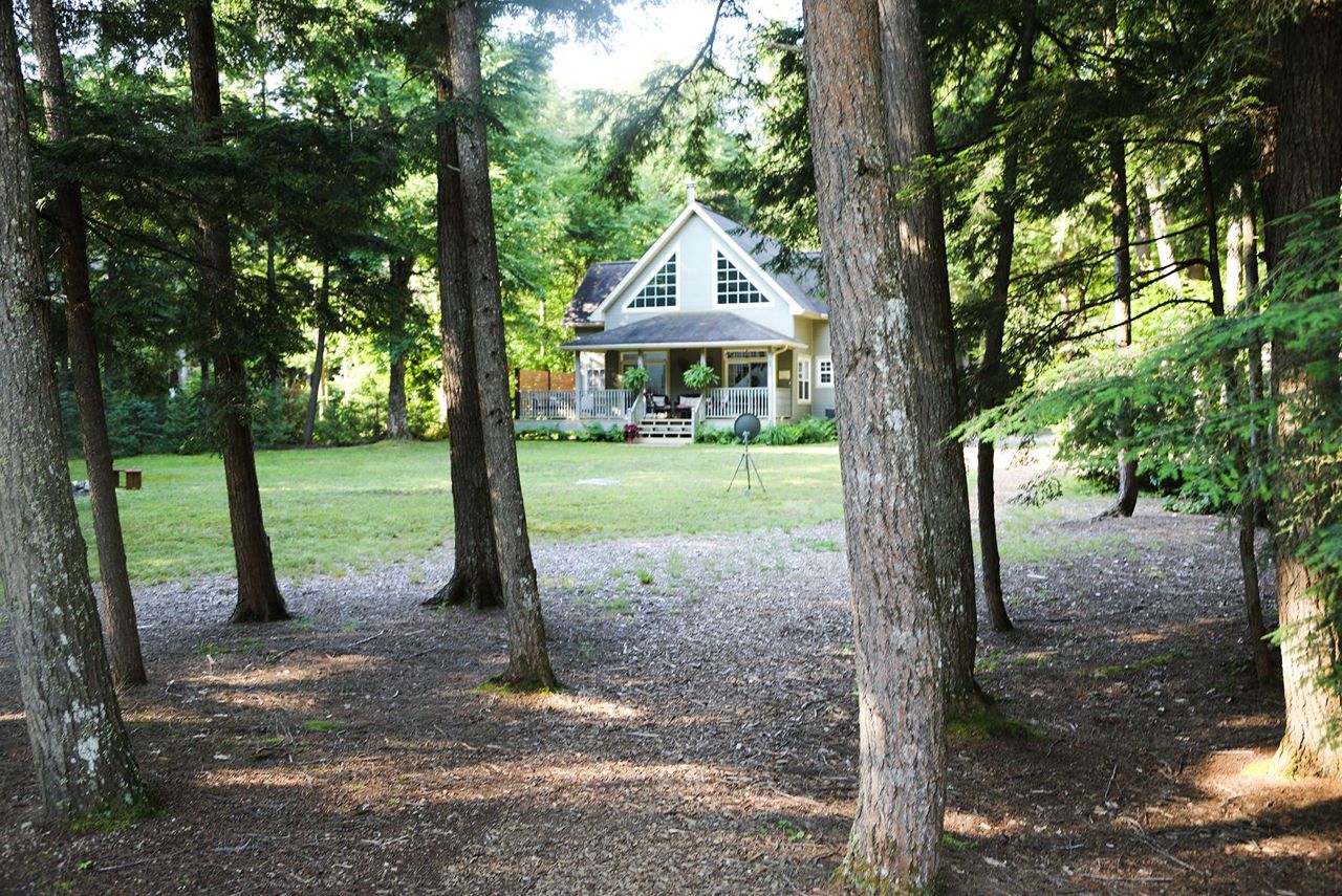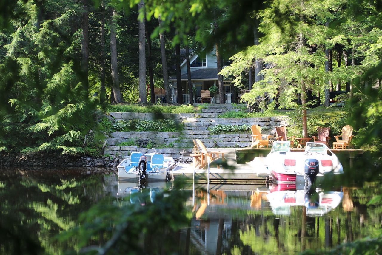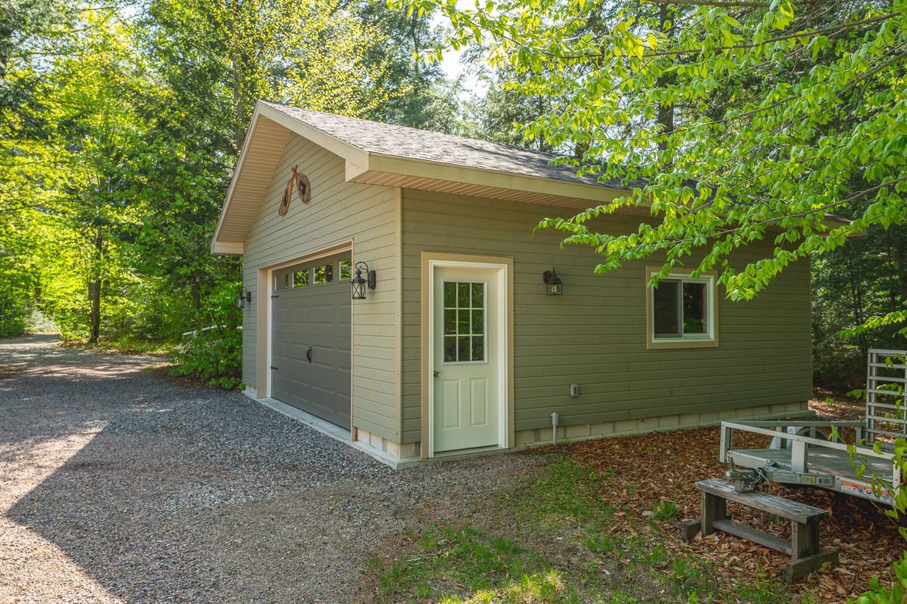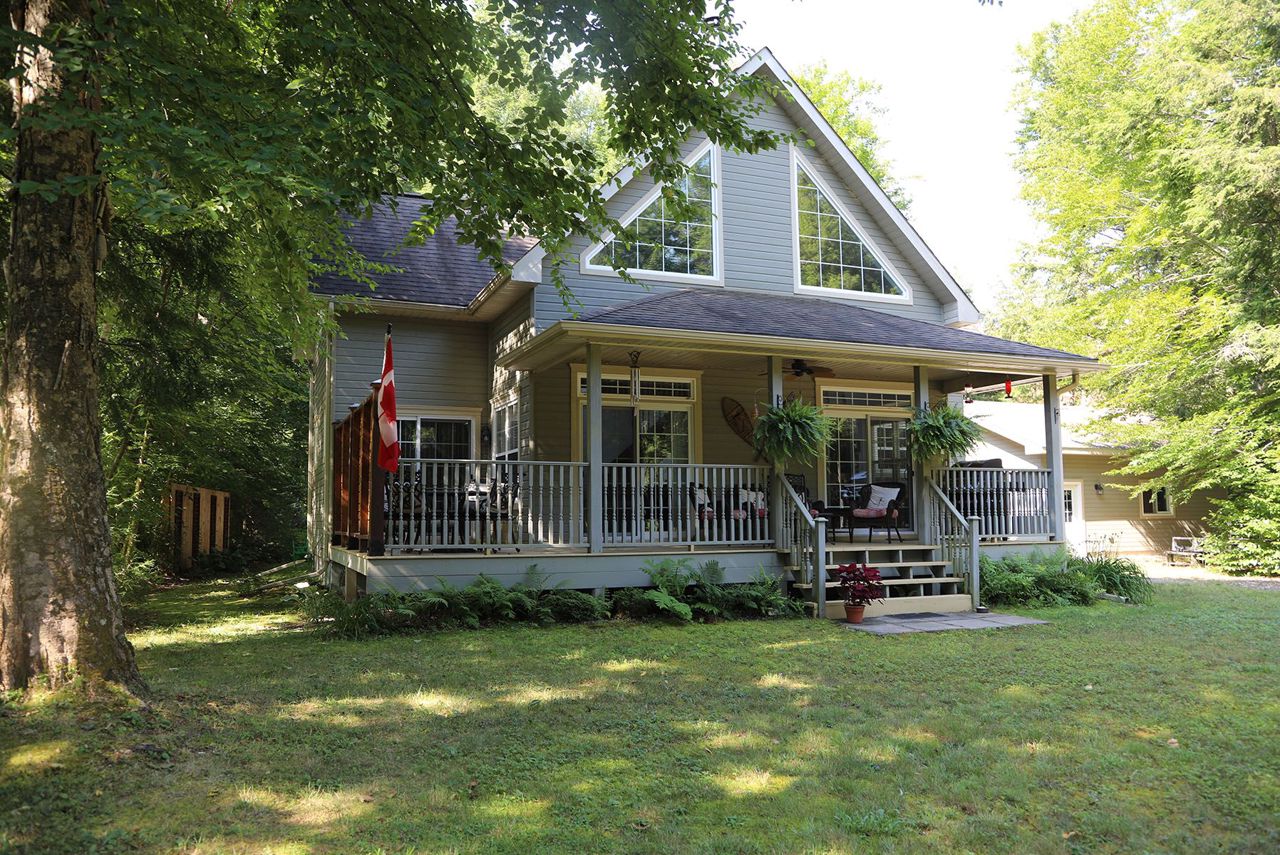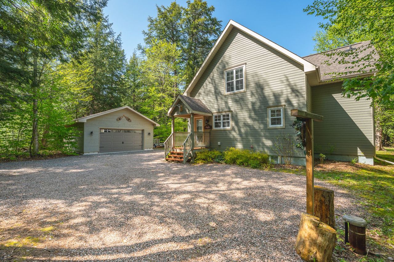 If it's a true house you want in cottage country, this is the one for you! On Pelaw River, it's just a 300m boat ride to Little Redstone Lake with access to Redstone Lake & all the boating and fishing your heart desires. The opposite direction takes you to Pelaw lake with portages to Marsden Lake & more. Beautiful & private landscaped waterfront area. Deep water swimming off the dock. Well built in 2009 this lovely 1.5 storey home includes gorgeous cathedral ceiling with accent beams in main areas, & hardwood flooring throughout most rooms. Main floor principal room includes ensuite & walks-out to deck. Wood burning fireplace with insert in living room. Large gourmet kitchen with Centre Island. Convenient main floor laundry room. Second level includes two bedrooms, a landing area great for use as a workspace, and a 4 pc washroom. The basement is mostly finished with large recreation room & 3 pc washroom. The detached oversized 2 car garage (24' x 24') with man door was built in 2017.Beautiful towering trees on a flat lot. On a Municipal Road for easy access year round. Septic has passed inspection. Wood shed. Bell wifi. Dishwasher (2022). Propane furnace (Nov 2021). New crib at water (2019).