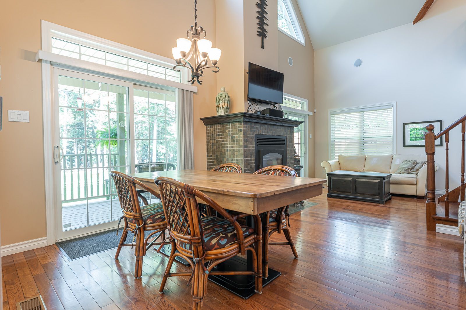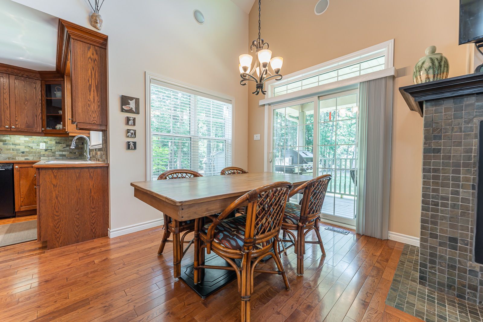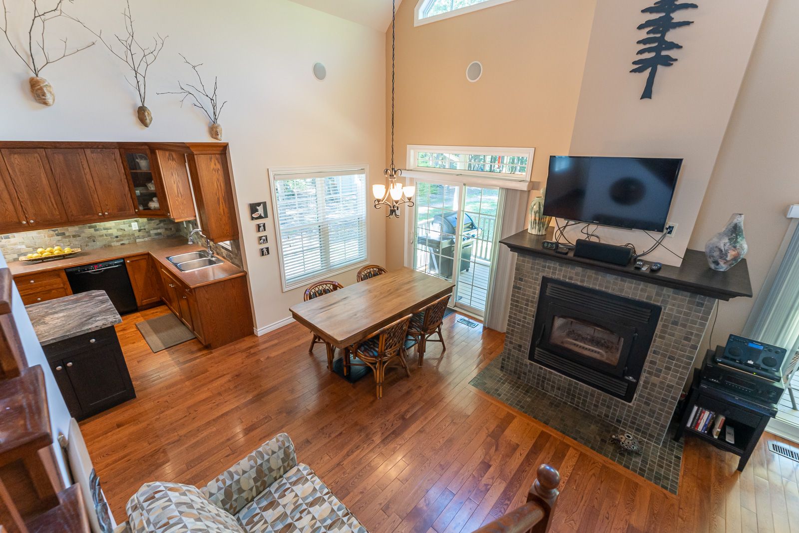 Fireplace Hardwood Floor W/O To Patio