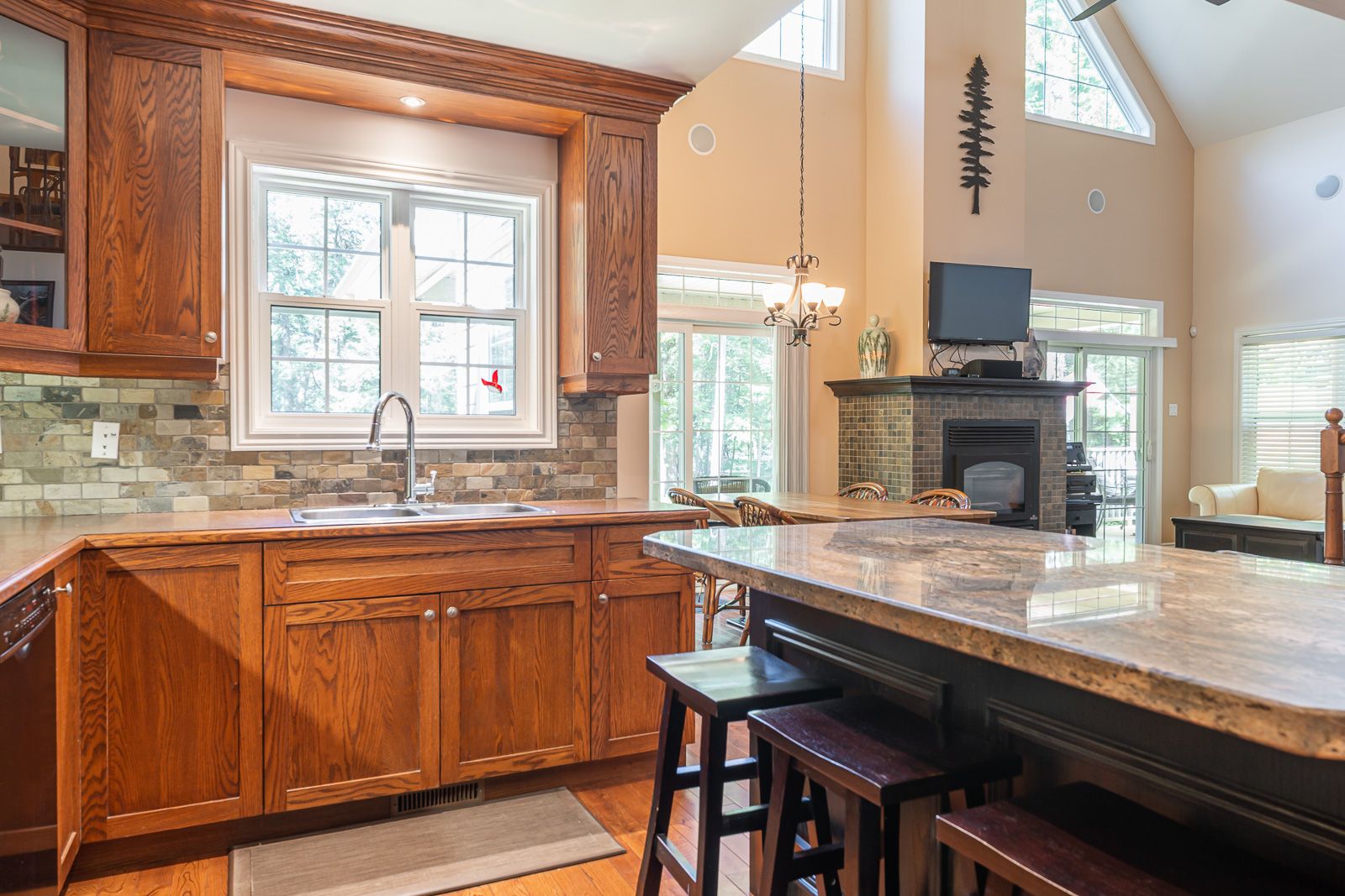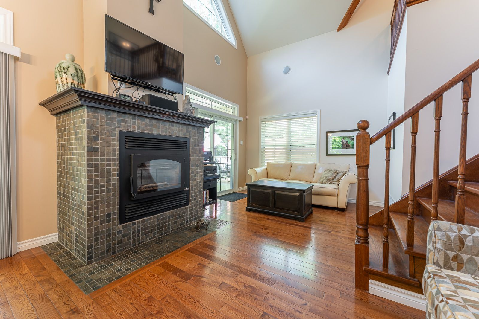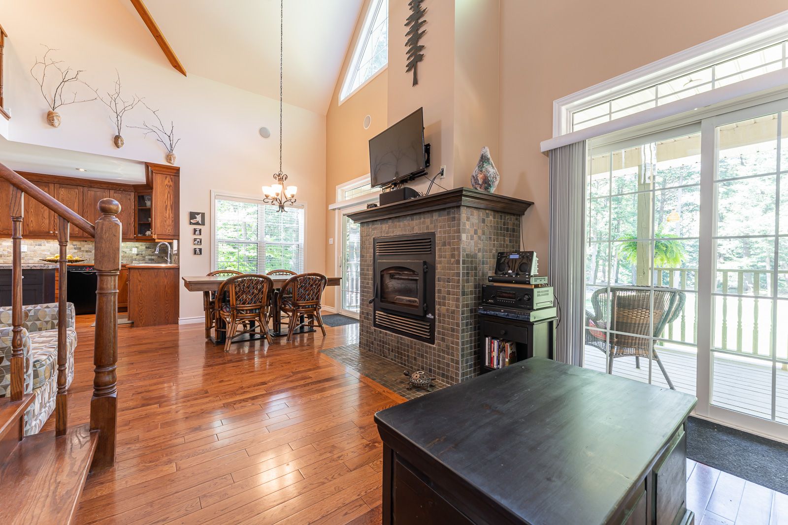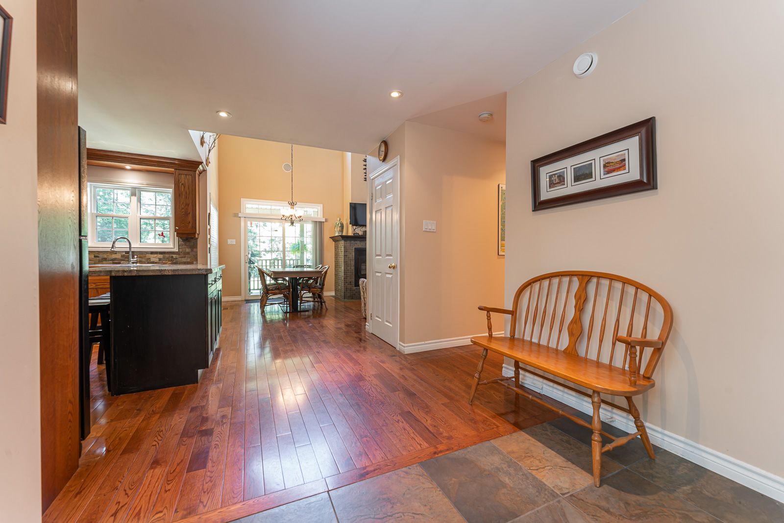 Fireplace Hardwood Floor W/O To Patio