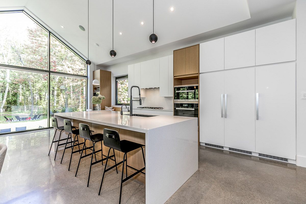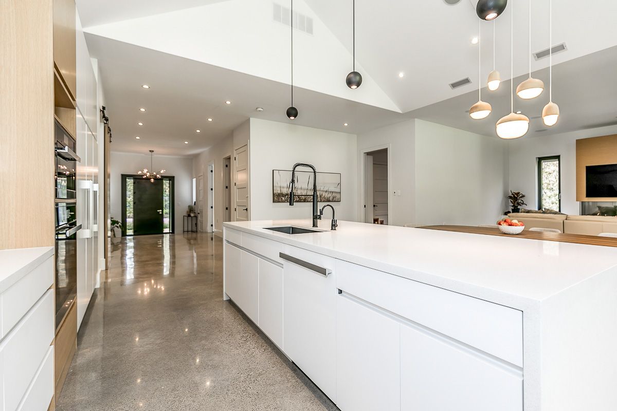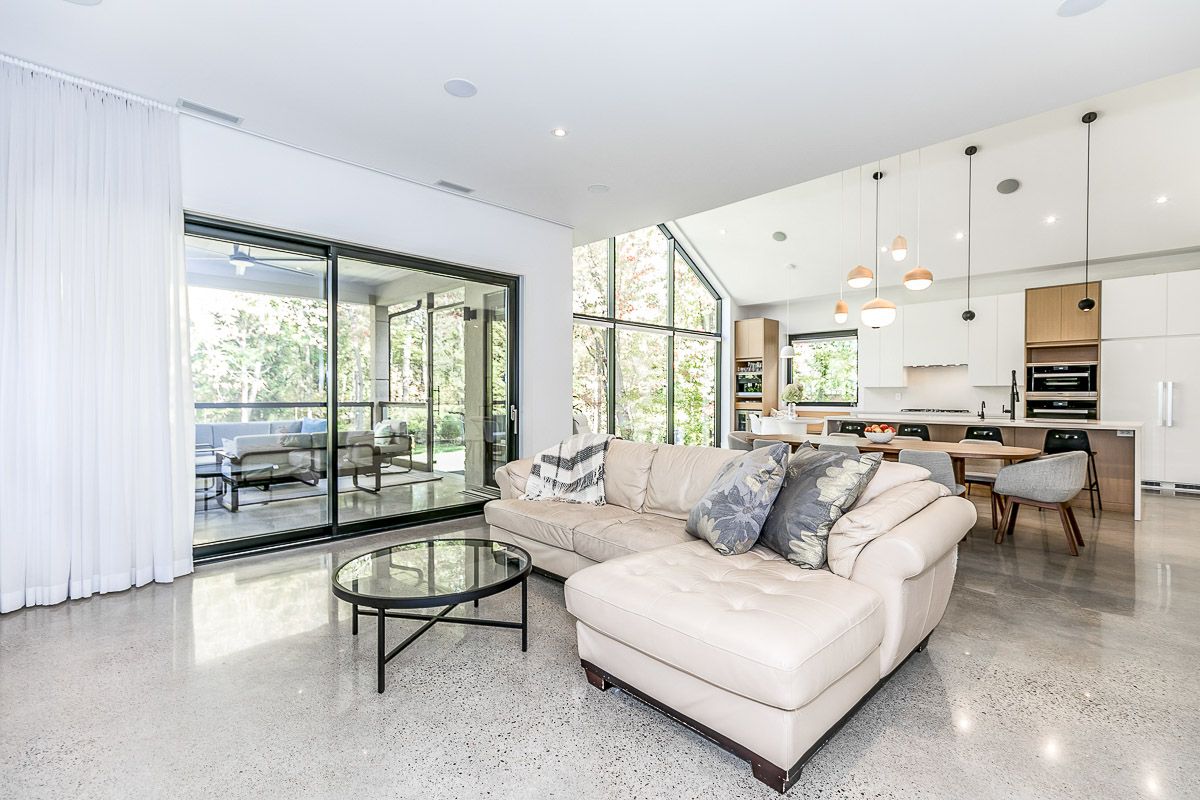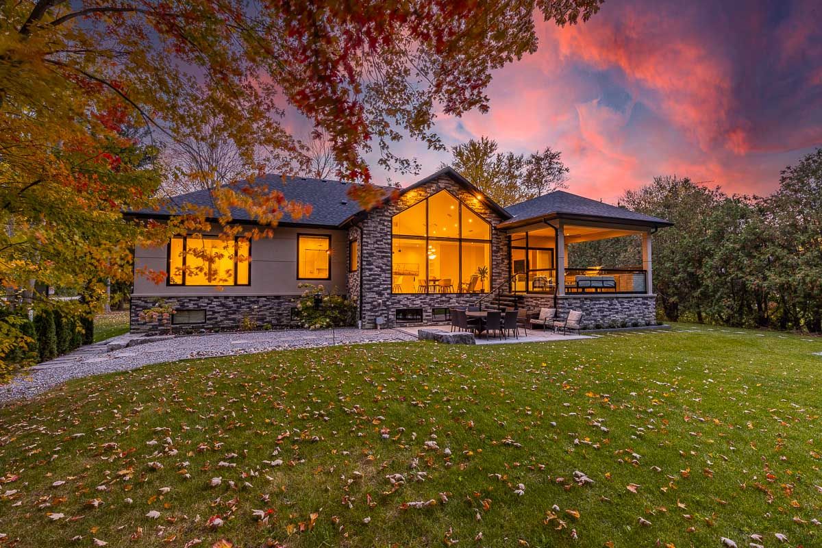 Welcome to a truly remarkable property, where the art of modern living converges with the beauty of natural surroundings. This newly constructed bungalow sits gracefully on a generously sized lot spanning nearly 0.7 acres, offering a unique blend of eco-conscious construction, exquisite features, and expansive outdoor spaces. The home is constructed using Insulated Concrete Forms (ICF), offering superior energy efficiency, sound insulation, and enhanced durability. The sleek & resilient polished concrete floors provide a modern & low-maintenance aesthetic to this custom homes interior. Experience year-round comfort with radiant floor heating in nearly every room & garage, keeping your feet warm & your energy bills low. The open-concept kitchen is a chef's dream, featuring top-of-the-line built-in Miele appliances, sleek cabinetry, 5 burner gas cooktop, walk-in pantry and an expansive centre island. Primary Bedroom is the epitome of tranquility w/a spa-inspired ensuite & walk-in closet.Check out Virtual Tour! Smart Home! European tilt & turn windows w/Pull down screens. Insteon home automation system w/built-in audio speakers & 6 cam surveillance. Custom outdoor kitchen. Irrigation system. Exterior lighting/landscaping.