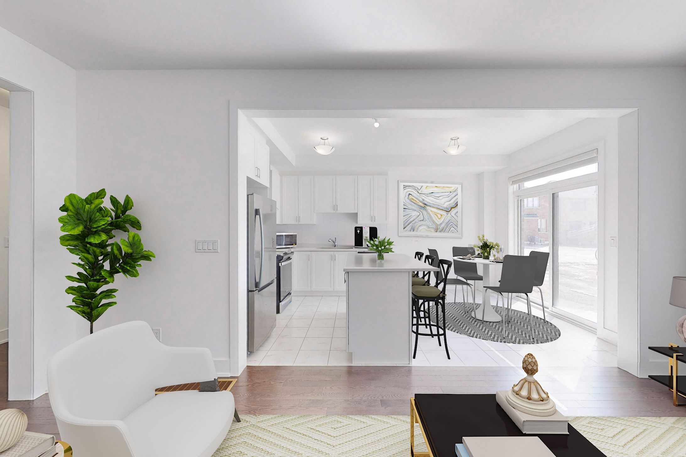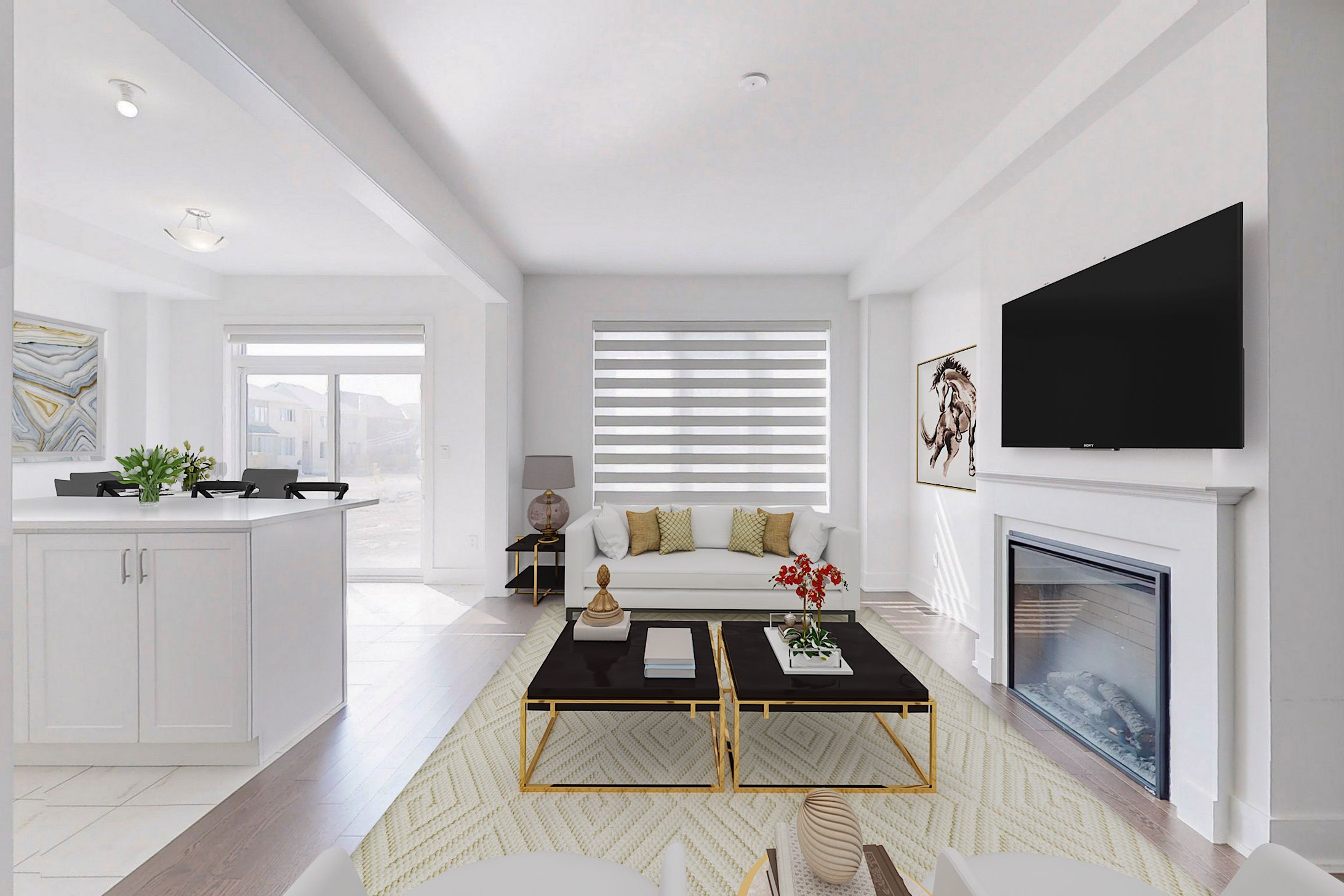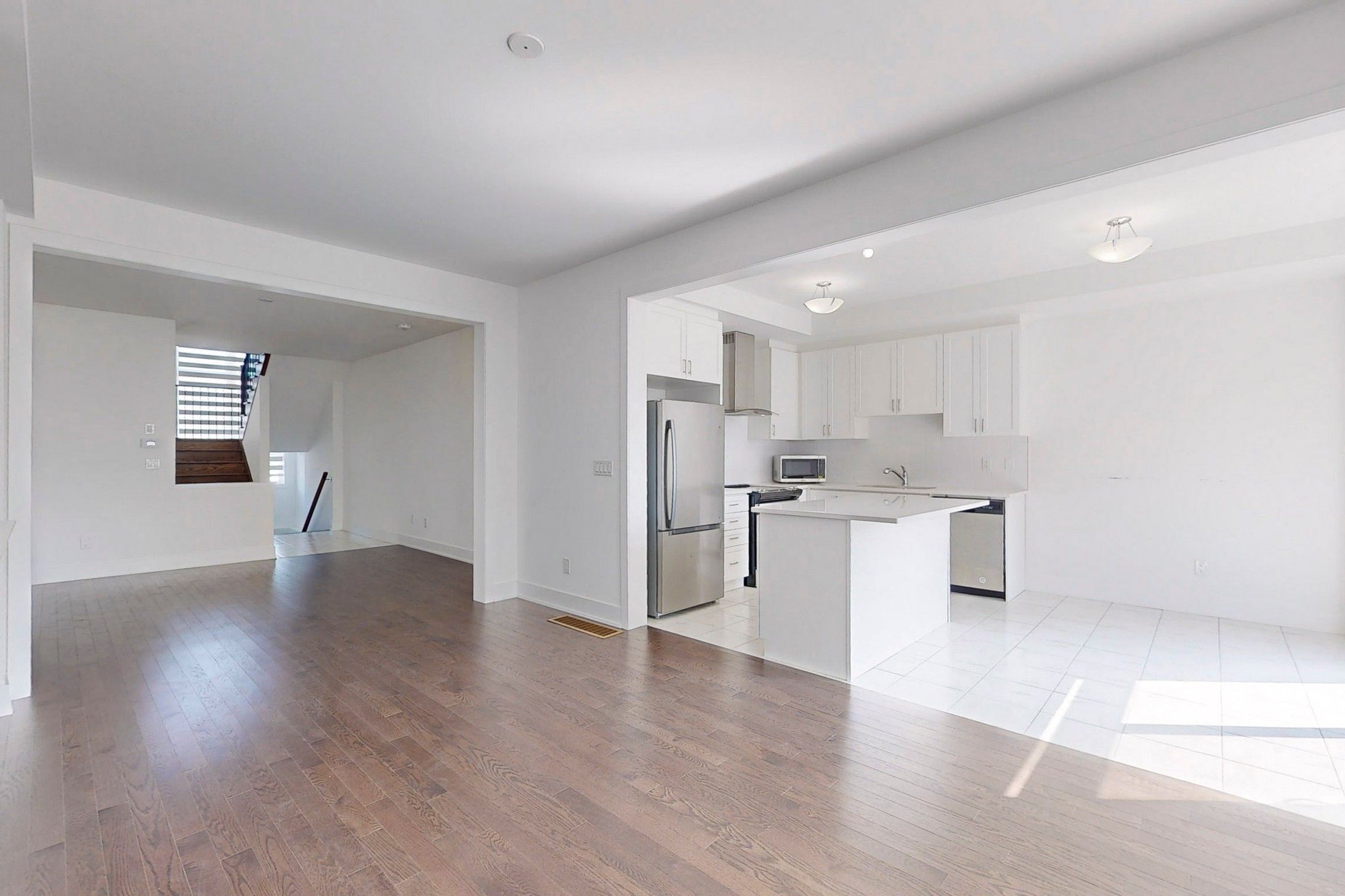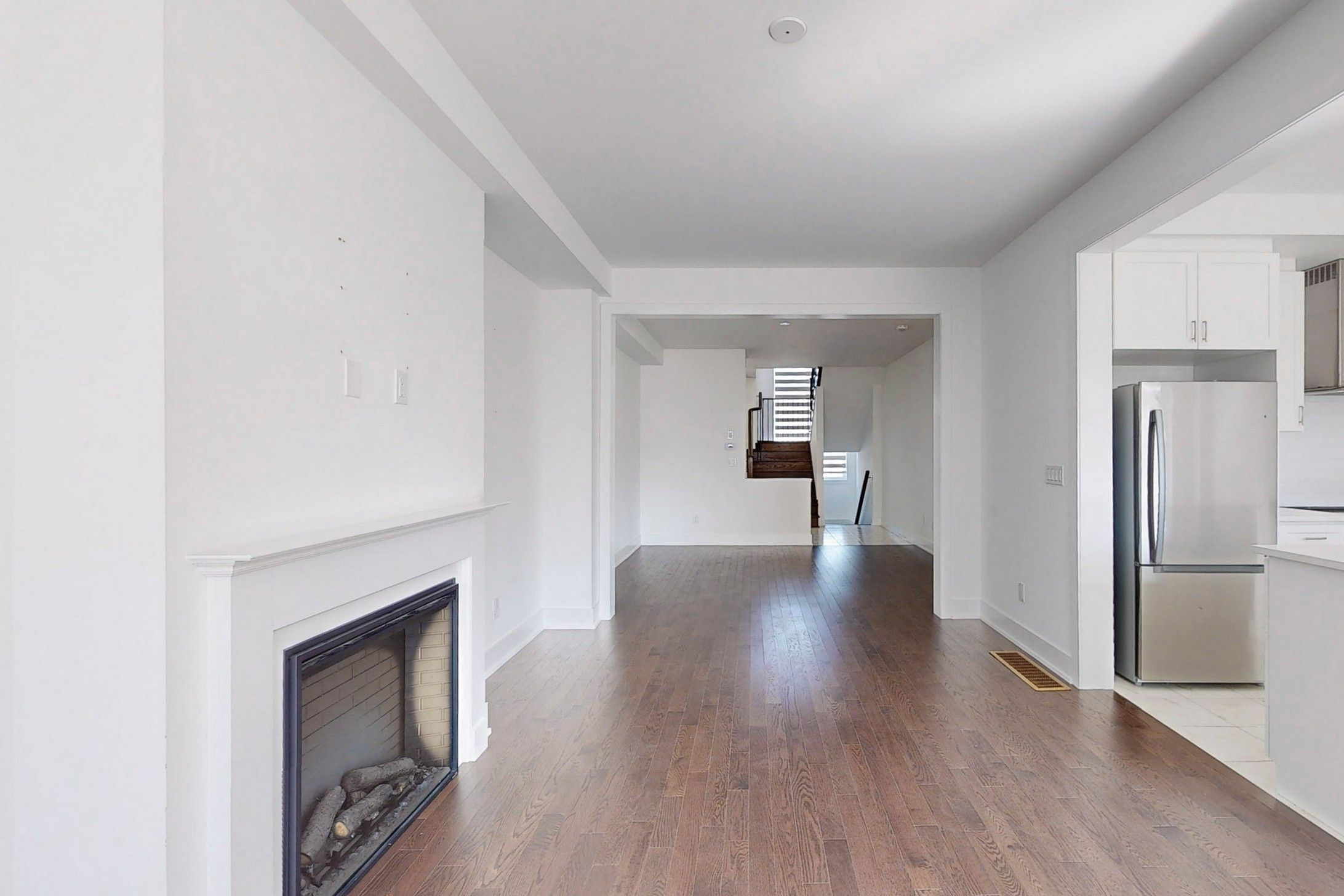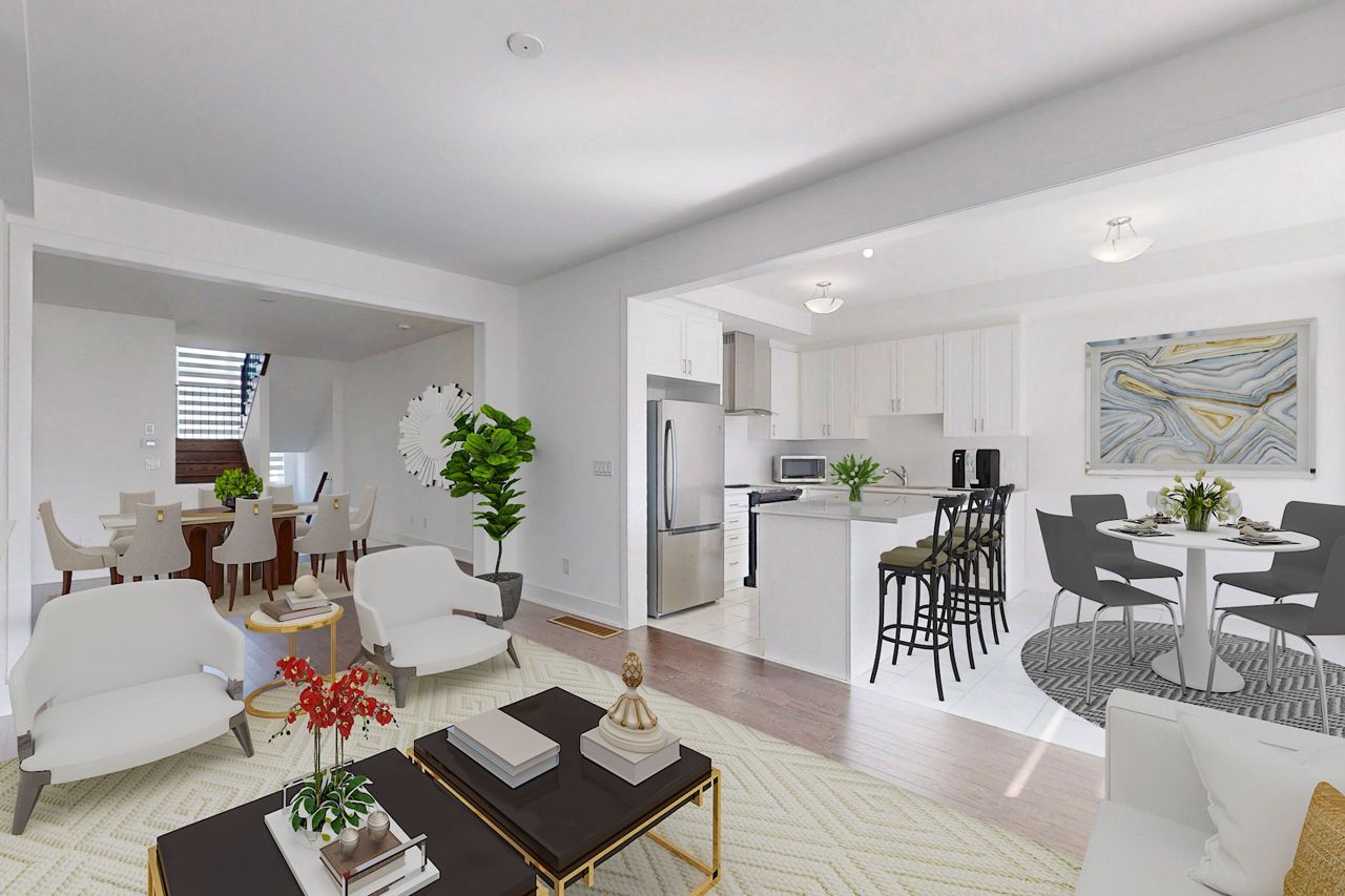 1 year old spacious and filled with natural light 3-bedroom 3-washroom townhouse! Freehold, no POTL fees! Almost 2000 sq ft. Connected only by garage on one side - feels like a semi! 9' ceiling and hardwood floor throughout main floor. Bright open concept living room with fireplace and large window. Modern kitchen with European range hood and large quartz countertop island is perfect for entertaining. Oakwood stairs with iron pickets. Primary bedroom features large walk-in closet and upgraded ensuite with granite counter and freestanding tub. 2nd floor laundry. Direct access to garage. Minutes to Hwy 404, Go Train, shopping and entertainment.
