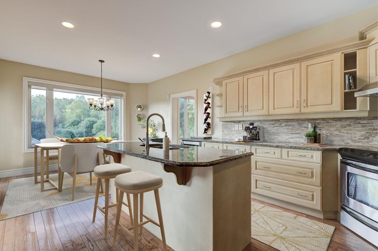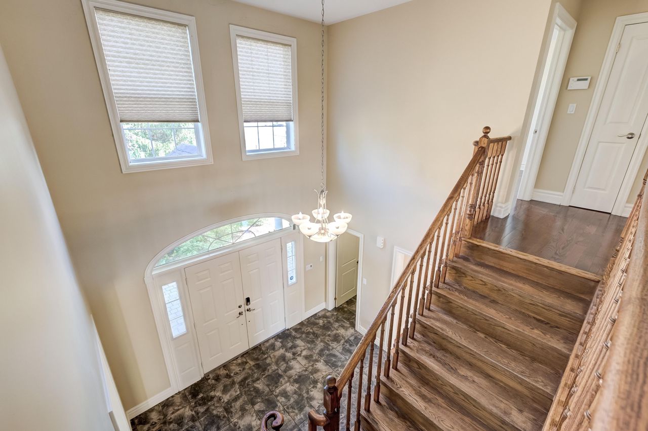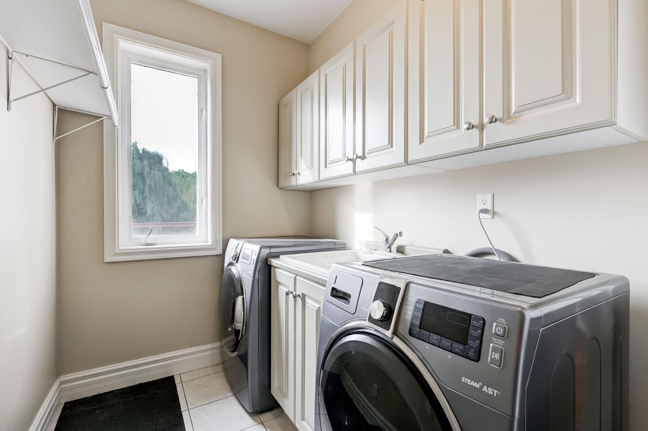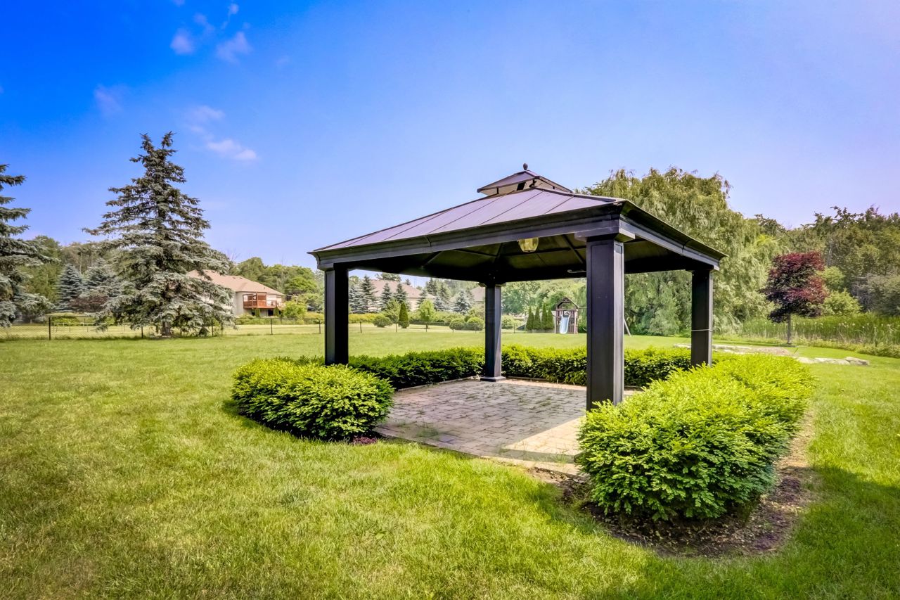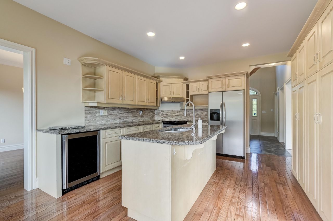 Open concept 2 storey Executive home in Sharon Hills with 9ft ceilings on main floor on picturesque 3/4 acre lot backing onto conservation. Sunny south facing backyard with gazebo & children's playset. Aprox 4200 sqft of total living space including finished walkout basement, 3 car garage & 12 car parking in total.ELF, all window coverings, CAC (2yrs new), new furnace (2023), gazebo, stainless steel fridge, stove, b/i dishwasher, bar fridge, washer, dryer, storage shed, swing set (as is)
