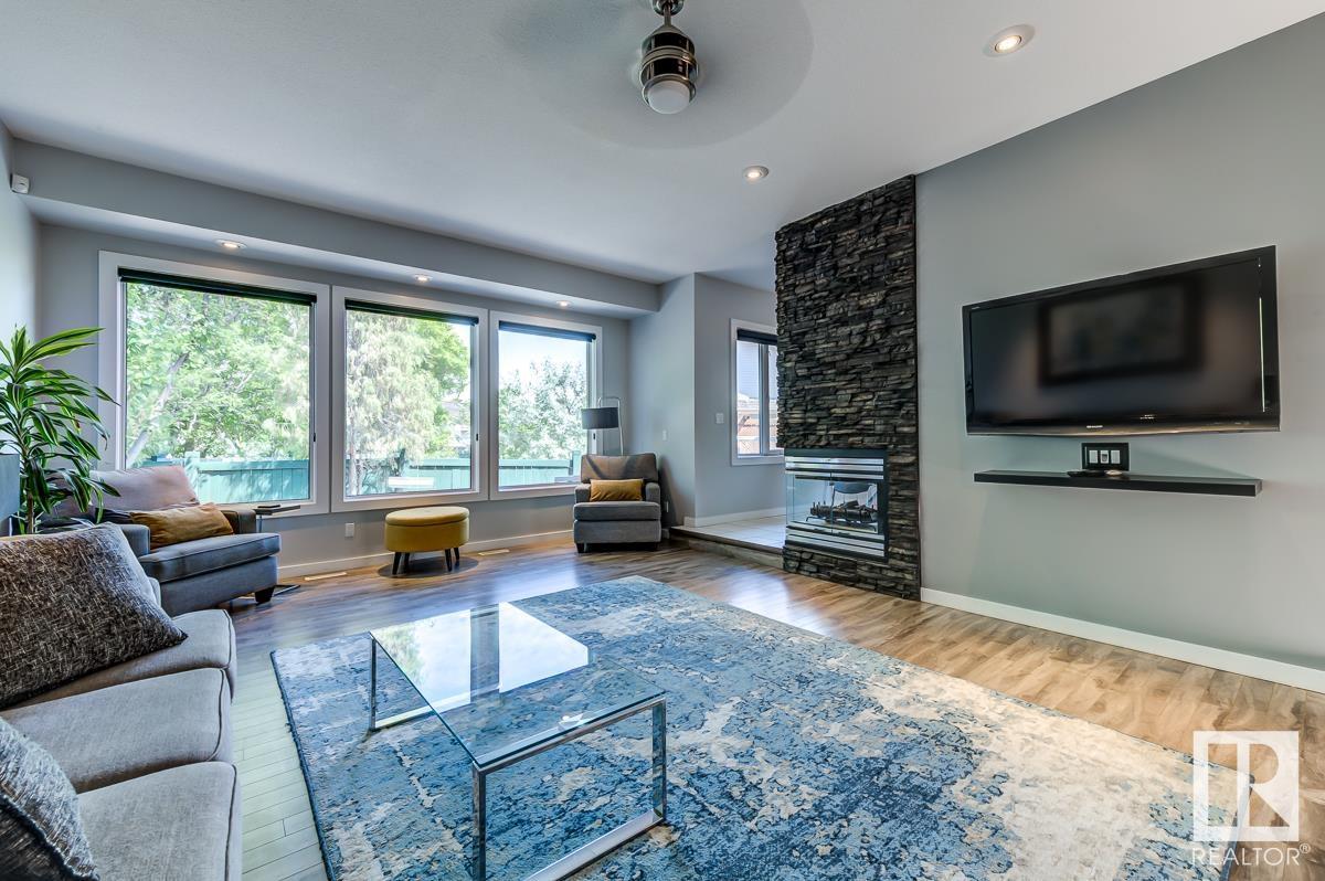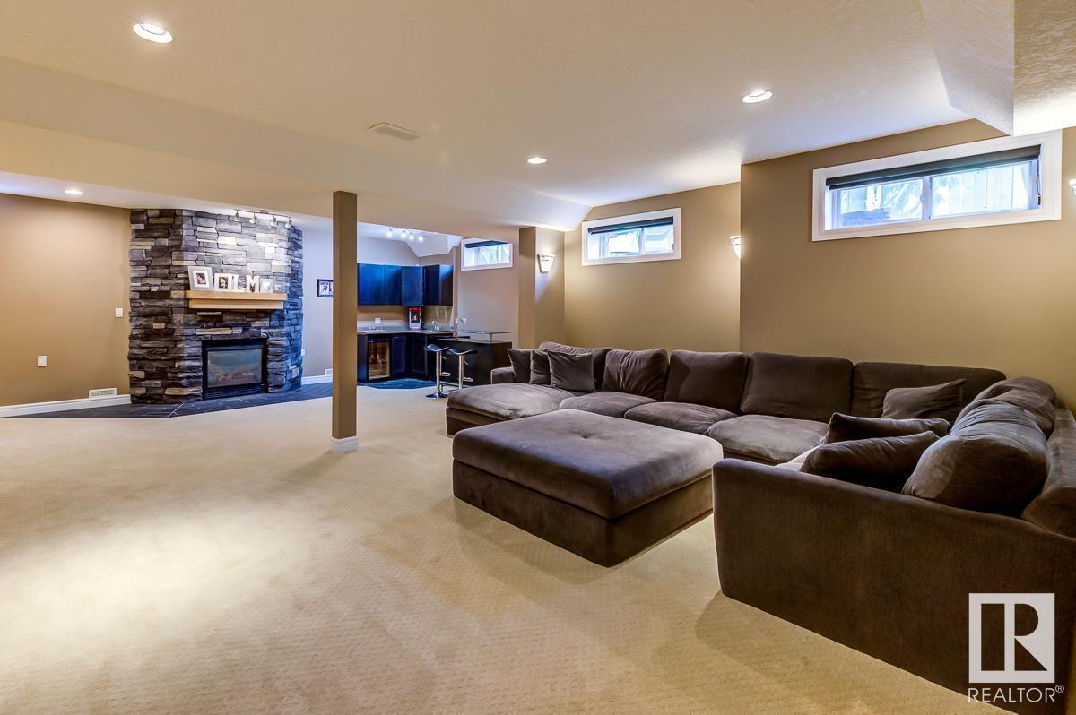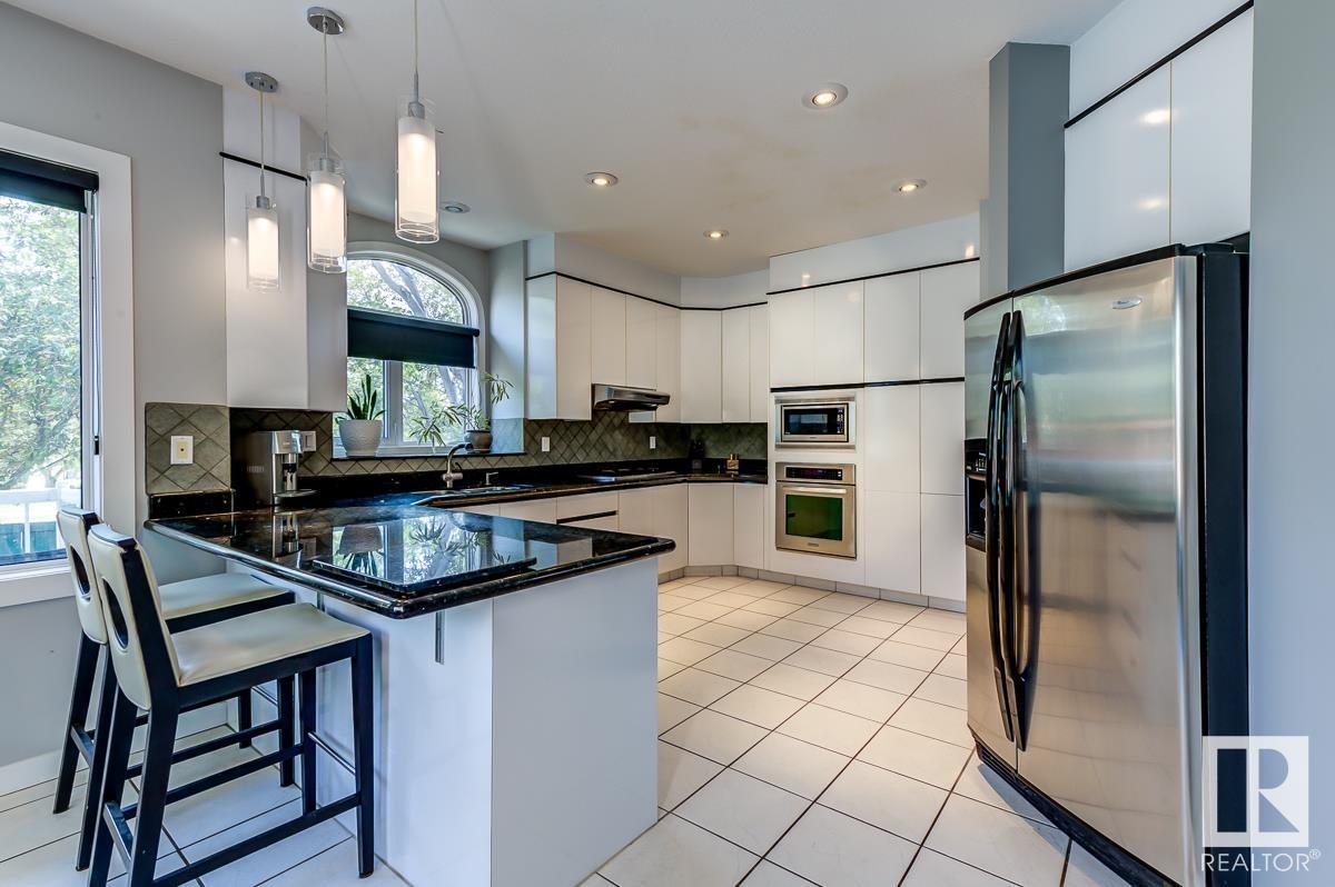 Situated in the sought-after community of Blackburne is this stunning executive bungalow offering over 4000 sqft of living space. Featuring a double-attached garage, 9' ceilings, Hunter Douglas blinds, 2 newer H/W Tanks (2015), newer High-Effic. furnace (2018). You are welcomed into the open concept main level featuring a formal dining room, and spacious living room with a 3-sided fireplace. Step into the kitchen with granite counters, gas range, stainless steel appliances, and ample cabinet space for storage. The primary bedroom boasts a large walk-in closet, and 5pce ensuite with soaker tub. Two additional bedrooms, 5pce bath, and conveniently located laundry room complete this level. Downstairs you will find a spacious recreational room with a wet bar, creating the perfect setting for entertaining! As well as two generous sized bedrooms, 3pce bathroom, and storage room. Enjoy the East-facing backyard & being located minutes to Blackburn Creek Park, Anthony Henday Dr, QE2, and South Edmonton Common. (id:22211)