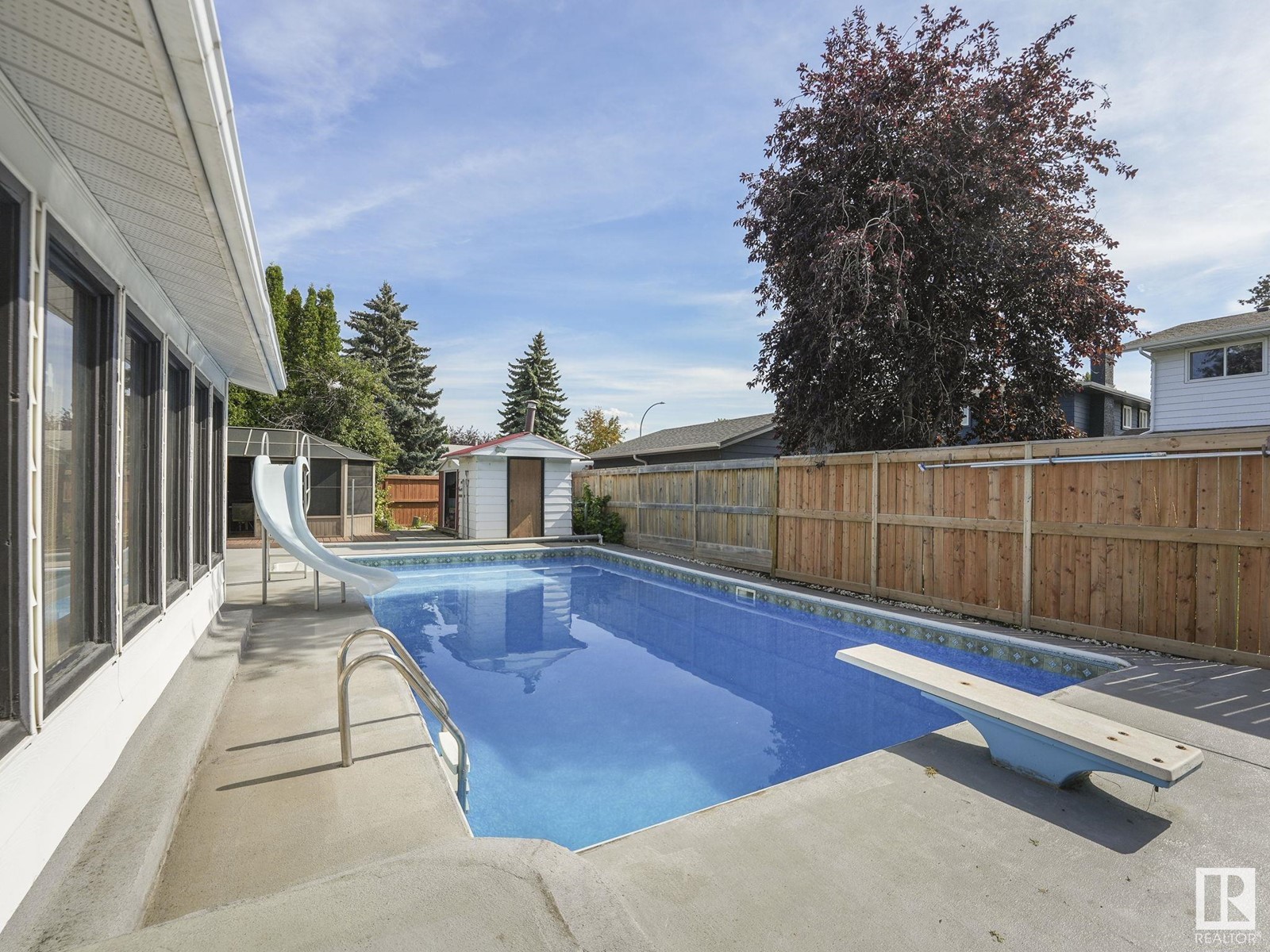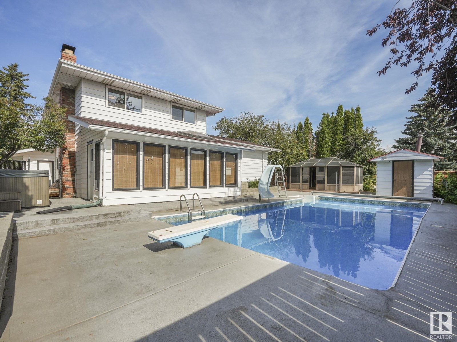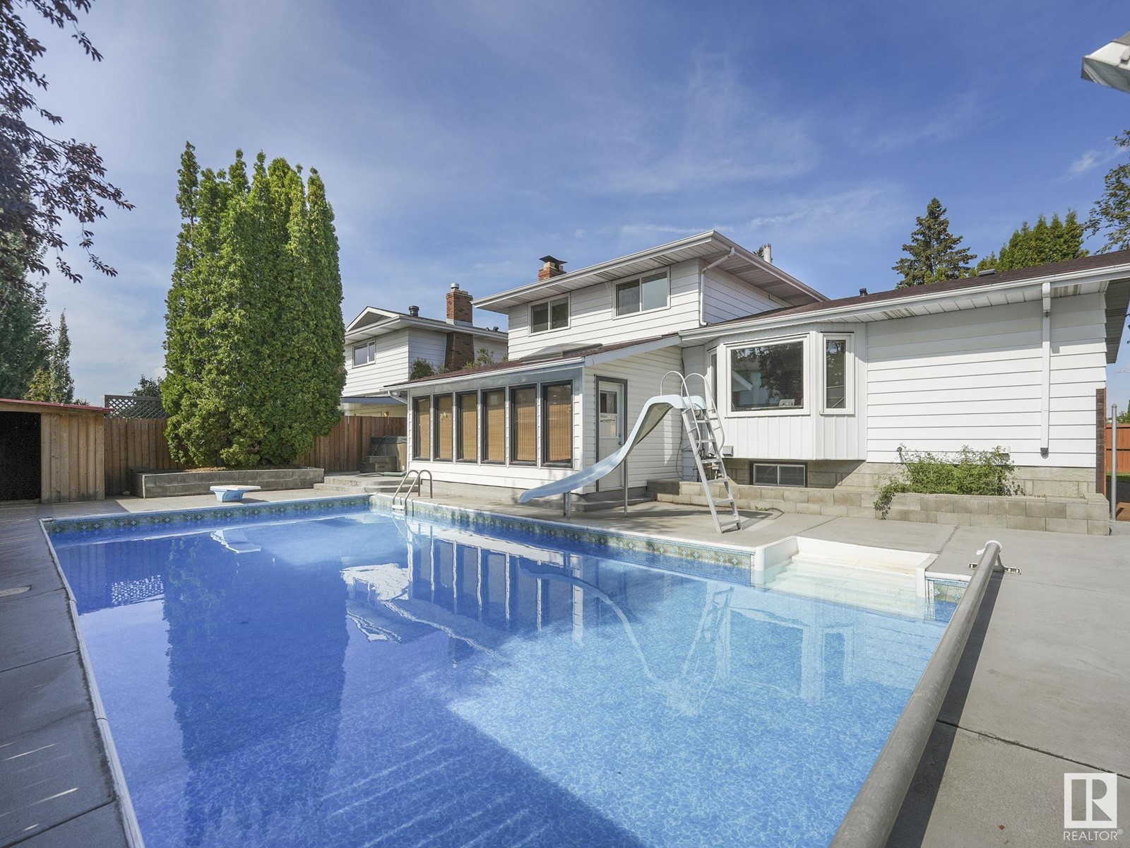 Move into this Ace Lange built home w/ enough space & bedrooms for a large family. This 6 bedroom home has over 3500 sq feet of developed living space. 3 Large Living spaces, 2 fireplaces, a sun room & has undergone a full renovation. The chef will appreciate the gourmet kitchen featuring new appliances, a huge wet island w/ luxurious quartz countertops, a breakfast bar, bayed eating area, built in china cabinets & tonnes of cabinet space. The kitchen has a view of the stunning pool a perfect open concept space for entertainment. Cool off on those hot summer days in the 36x18 foot in ground swimming pool w/ a new liner. Warm up on cool evenings in the hot tub. The sun room is a great space for quiet relaxation. This home is upgraded including, new luxurious vinyl plank flooring throughout, renovated bathrooms, newer furnaces, electrical, & fencing. Enjoy the peace & quiet of an established neighborhood that is close to schools & all the amenities & walking distance to LRT train. HUGE 734 sq.m lot. (id:22211)