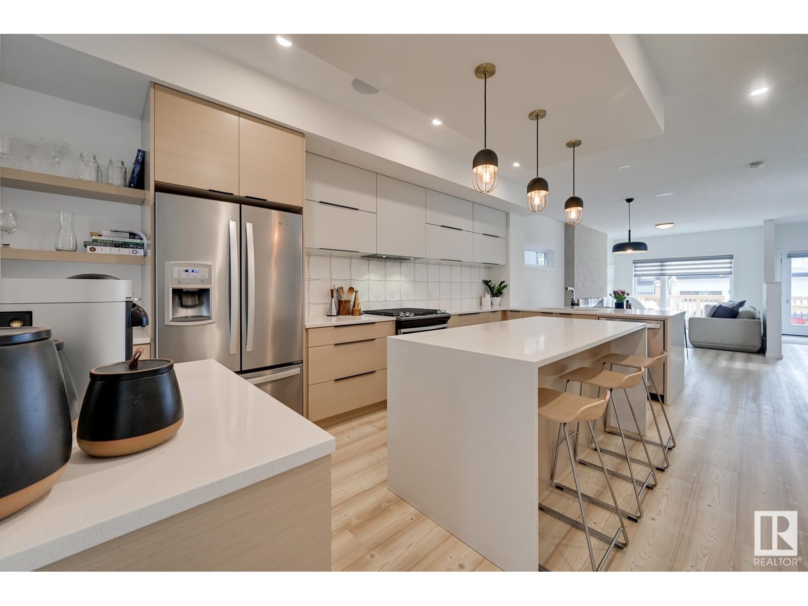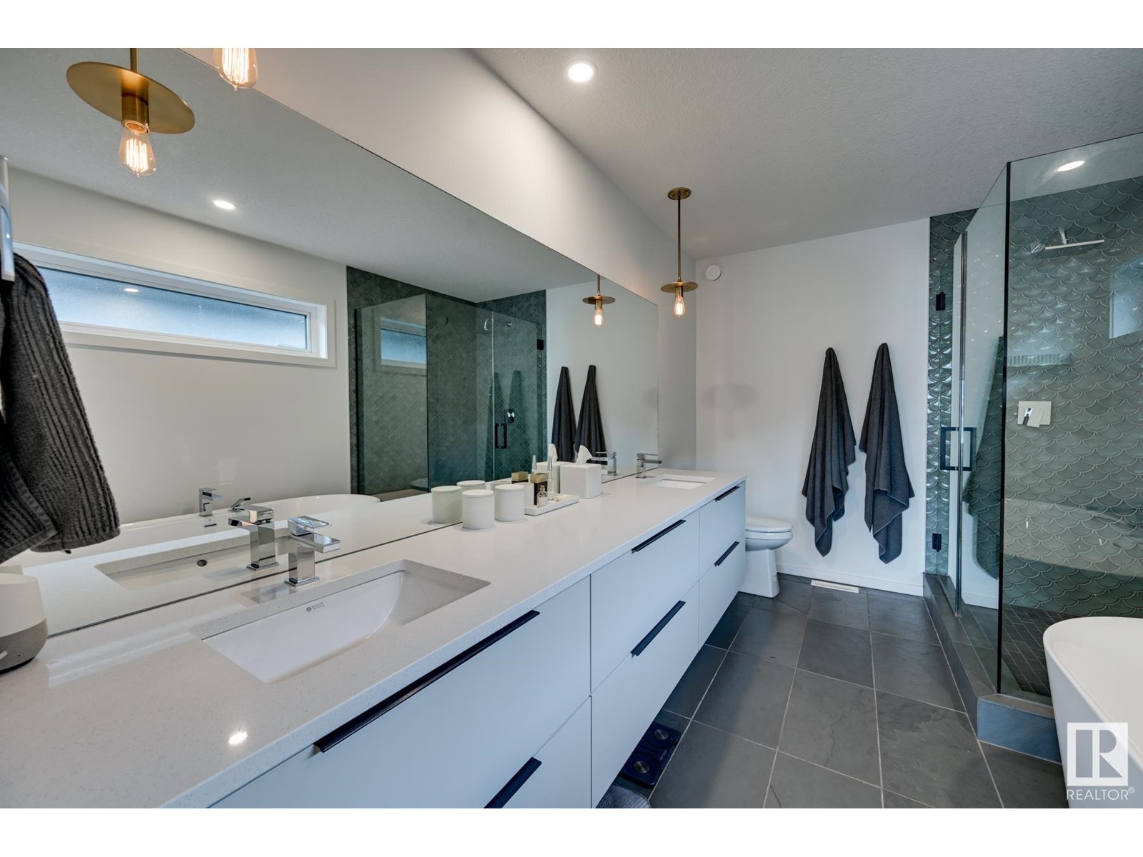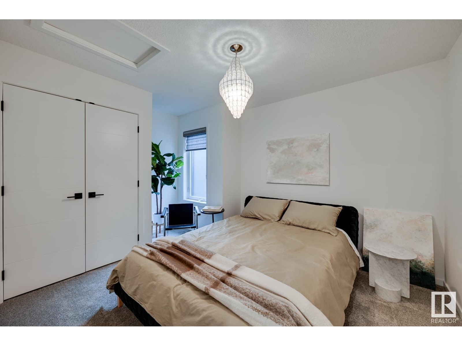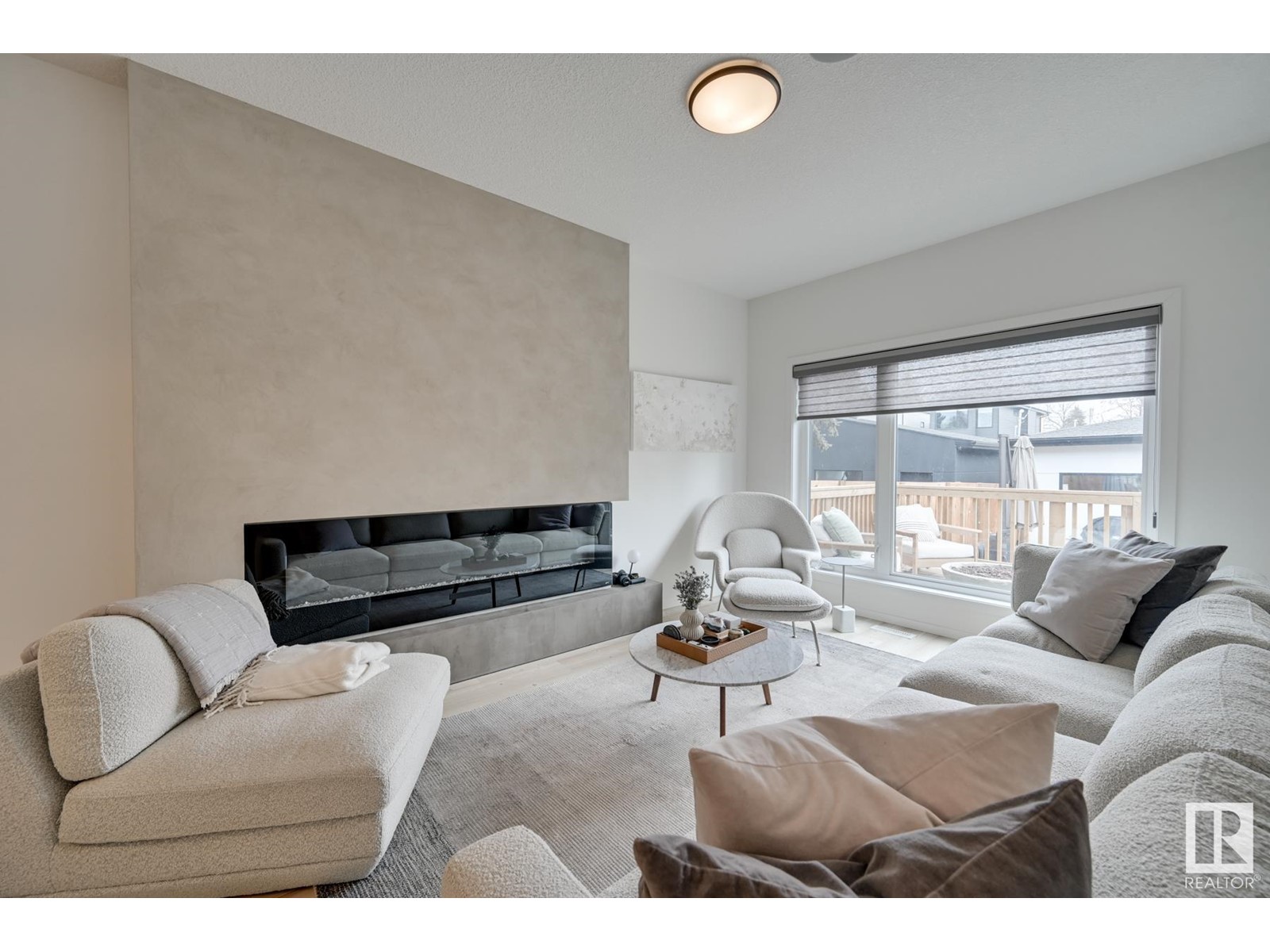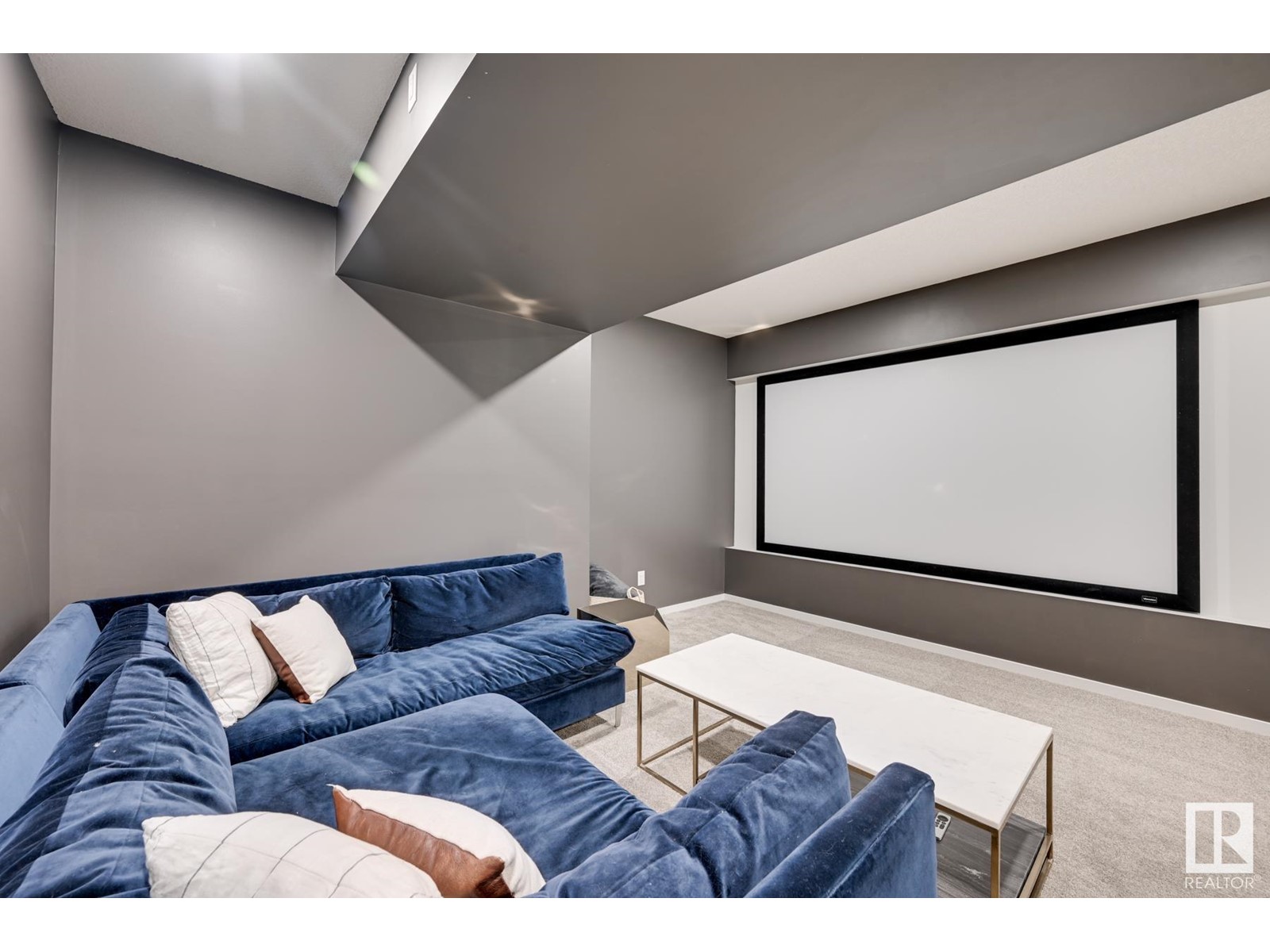 Welcome to the beautiful community of Grovenor with easy access to downtown & Edmonton's River Valley Trails! This heavily upgraded home has been meticulously maintained & features so many thoughtful details! Past the main flr flex rm find a spacious walk-through pantry opening into a stunning kitchen equipped w/ gas stove, full height cabinetry & double quartz islands. Main floor complete w/ sizeable dining area, bright living rm w/ feature concrete wall/over-sized linear fireplace, 2 pc bath & mudroom w/ storage galore. Upstairs find a huge primary w/ built-in wardrobes & spa-like ensuite. Plus 2 more well-sized bdrms (3rd has walk-in closet), 4pc bath & laundry rm w/ brand new washer/dryer, sink & added storage. Fully-finished basement features rec space w/ projector screen, 4pc bath & lrg 4th bdrm. Features incl AC, open-tread stairs/glass wall, quartz throughout, upgraded lighting, acrylic stucco, low-maintenance landscaping, mature trees & powered dbl garage (w/ gas line roughed-in). Turn-key ready! (id:22211)