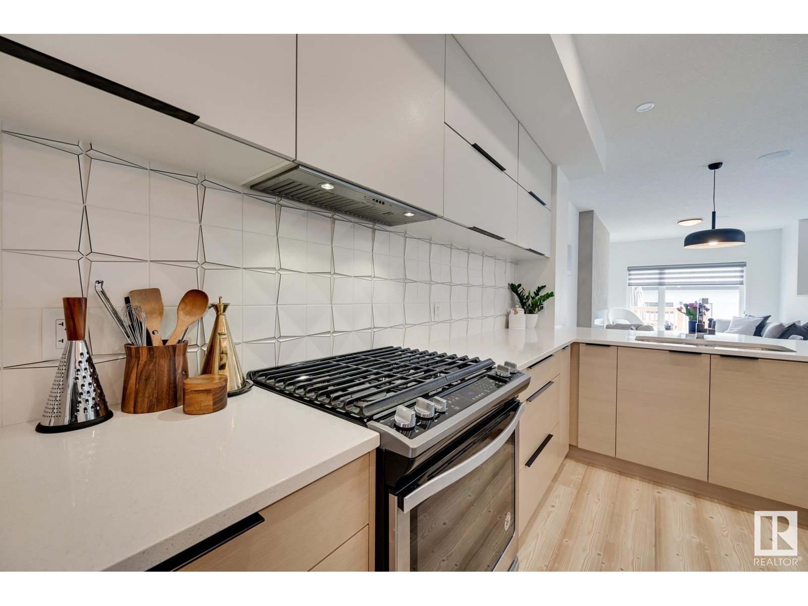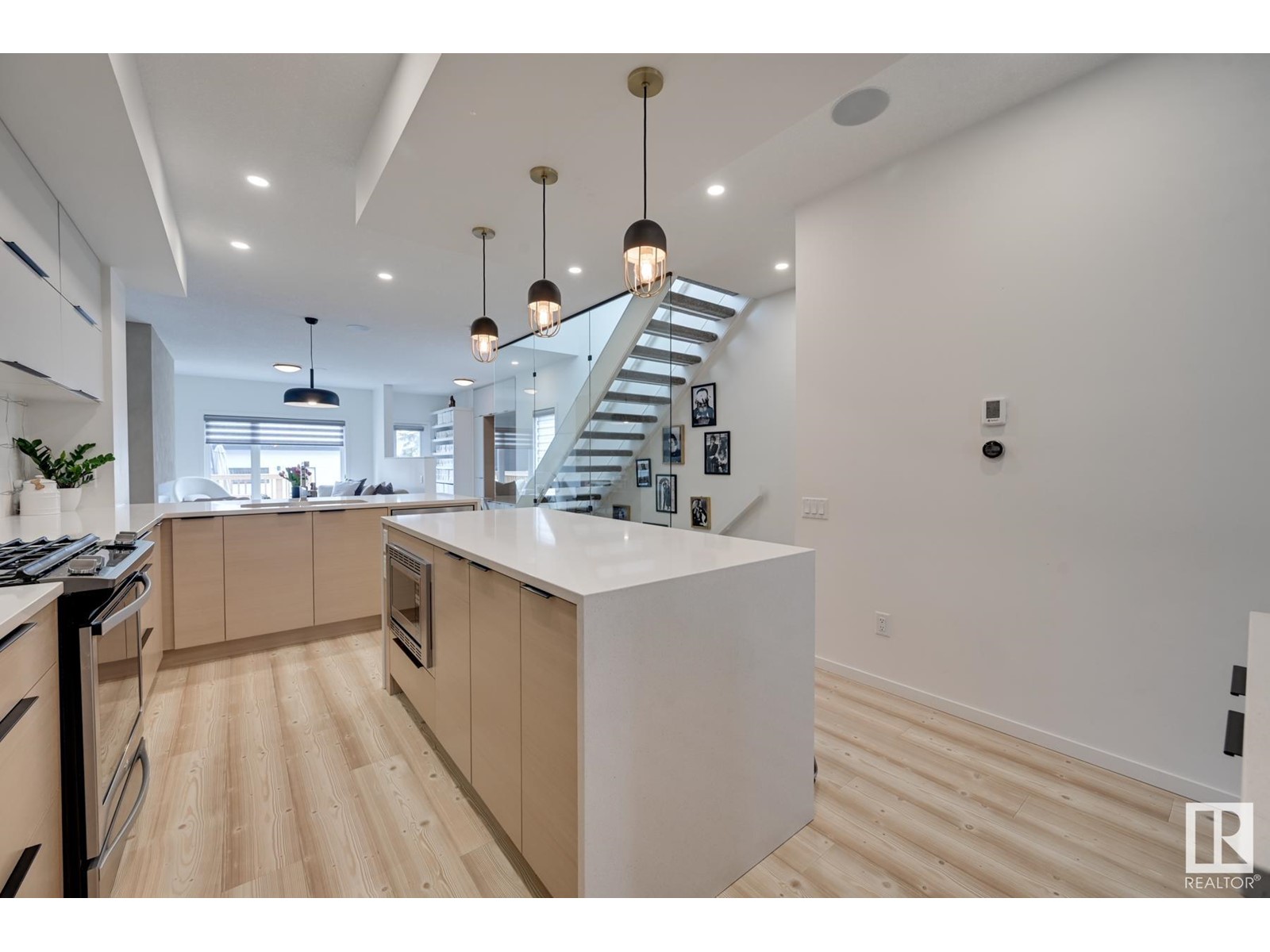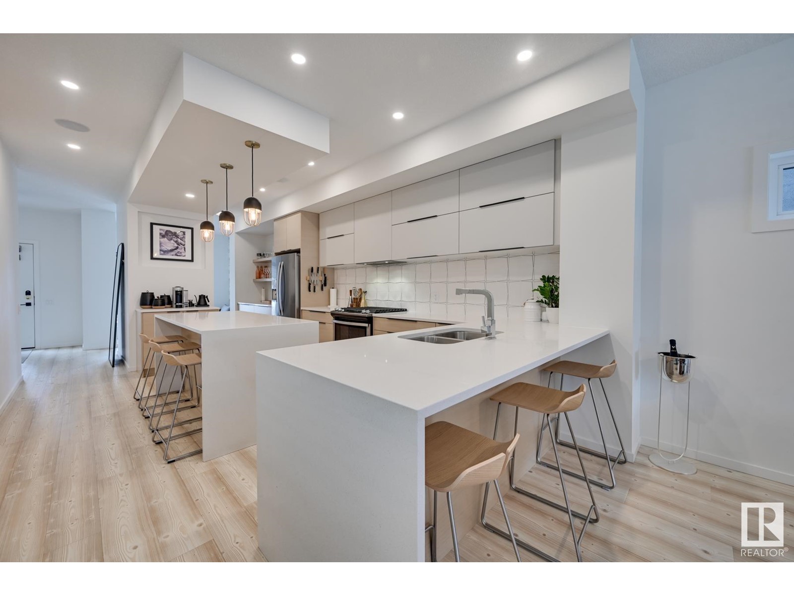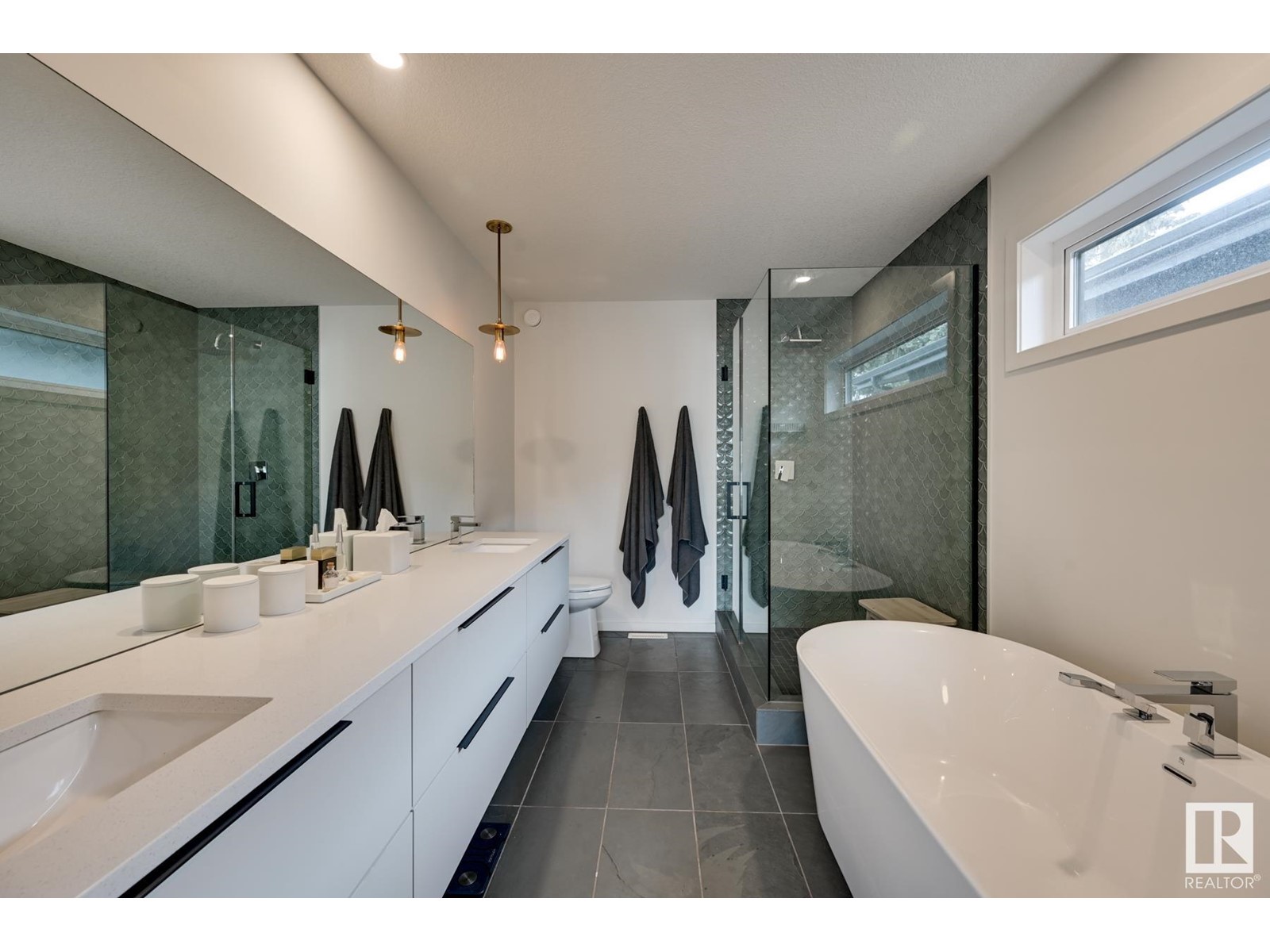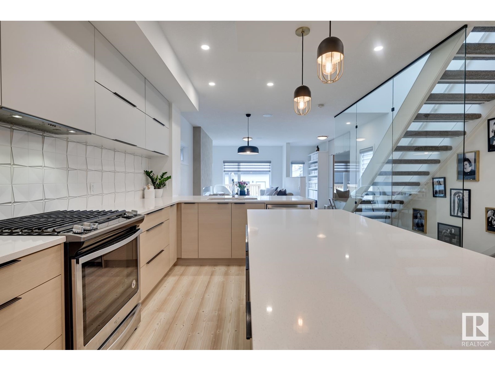Welcome to the beautiful community of Grovenor with easy access to downtown & Edmonton's River Valley Trails! This heavily upgraded home has been meticulously maintained & features so many thoughtful details! Past the main flr flex rm find a spacious walk-through pantry opening into a stunning kitchen equipped w/ gas stove, full height cabinetry & double quartz islands. Main floor complete w/ sizeable dining area, bright living rm w/ feature concrete wall/over-sized linear fireplace, 2 pc bath & mudroom w/ storage galore. Upstairs find a huge primary w/ built-in wardrobes & spa-like ensuite. Plus 2 more well-sized bdrms (3rd has walk-in closet), 4pc bath & laundry rm w/ brand new washer/dryer, sink & added storage. Fully-finished basement features rec space w/ projector screen, 4pc bath & lrg 4th bdrm. Features incl AC, open-tread stairs/glass wall, quartz throughout, upgraded lighting, acrylic stucco, low-maintenance landscaping, mature trees & powered dbl garage (w/ gas line roughed-in). Turn-key ready! (id:22211)