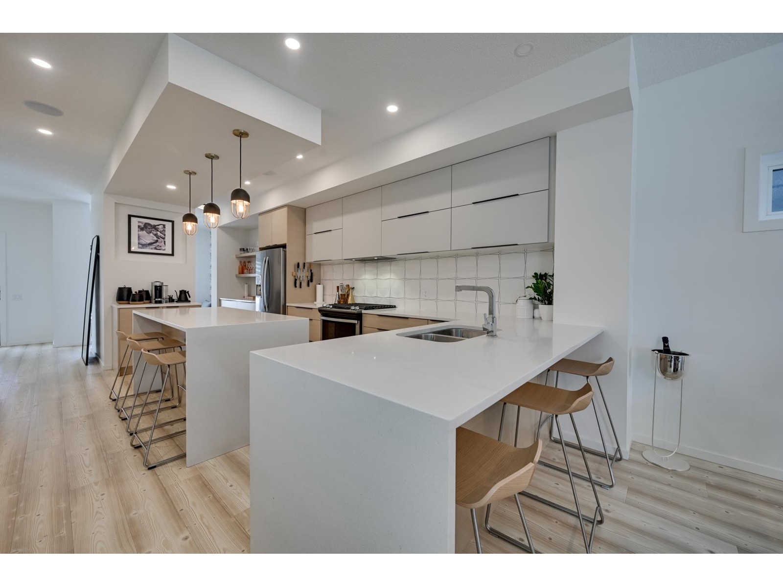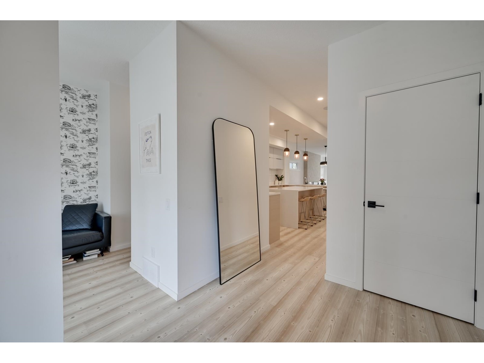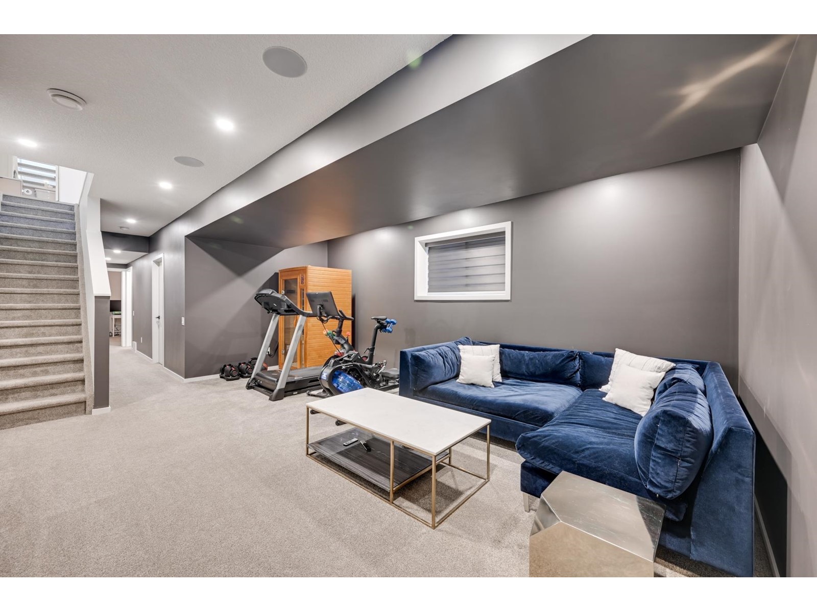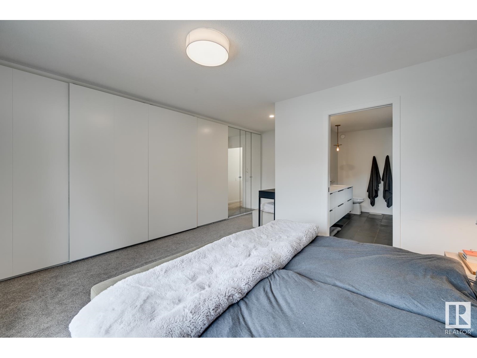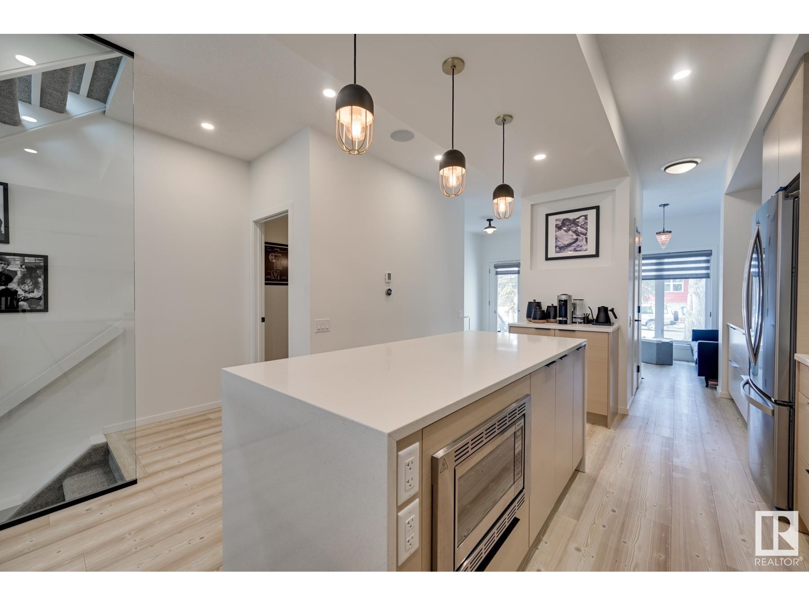 Welcome to the beautiful community of Grovenor with easy access to downtown & Edmonton's River Valley Trails! This heavily upgraded home has been meticulously maintained & features so many thoughtful details! Past the main flr flex rm find a spacious walk-through pantry opening into a stunning kitchen equipped w/ gas stove, full height cabinetry & double quartz islands. Main floor complete w/ sizeable dining area, bright living rm w/ feature concrete wall/over-sized linear fireplace, 2 pc bath & mudroom w/ storage galore. Upstairs find a huge primary w/ built-in wardrobes & spa-like ensuite. Plus 2 more well-sized bdrms (3rd has walk-in closet), 4pc bath & laundry rm w/ brand new washer/dryer, sink & added storage. Fully-finished basement features rec space w/ projector screen, 4pc bath & lrg 4th bdrm. Features incl AC, open-tread stairs/glass wall, quartz throughout, upgraded lighting, acrylic stucco, low-maintenance landscaping, mature trees & powered dbl garage (w/ gas line roughed-in). Turn-key ready! (id:22211)
