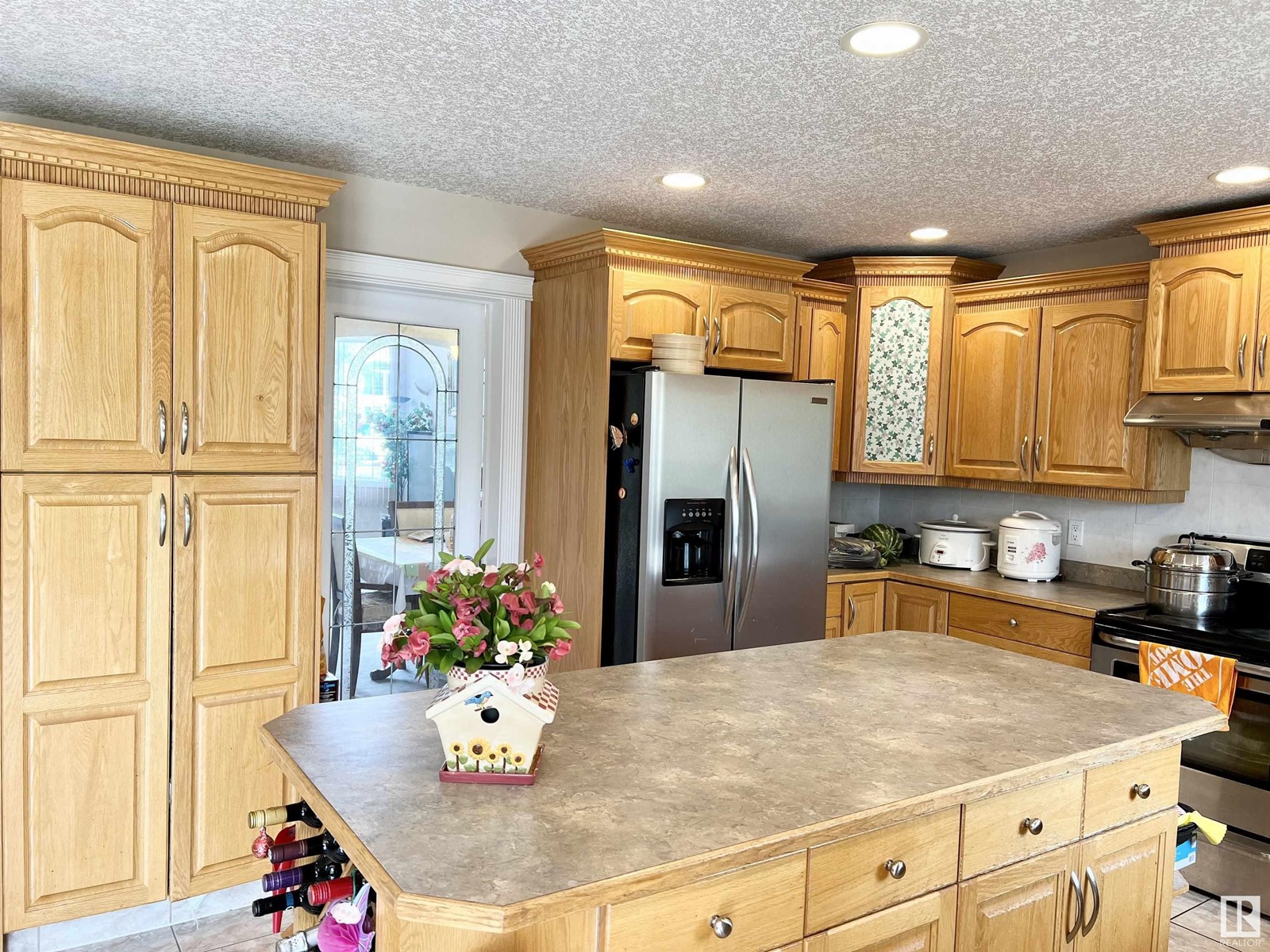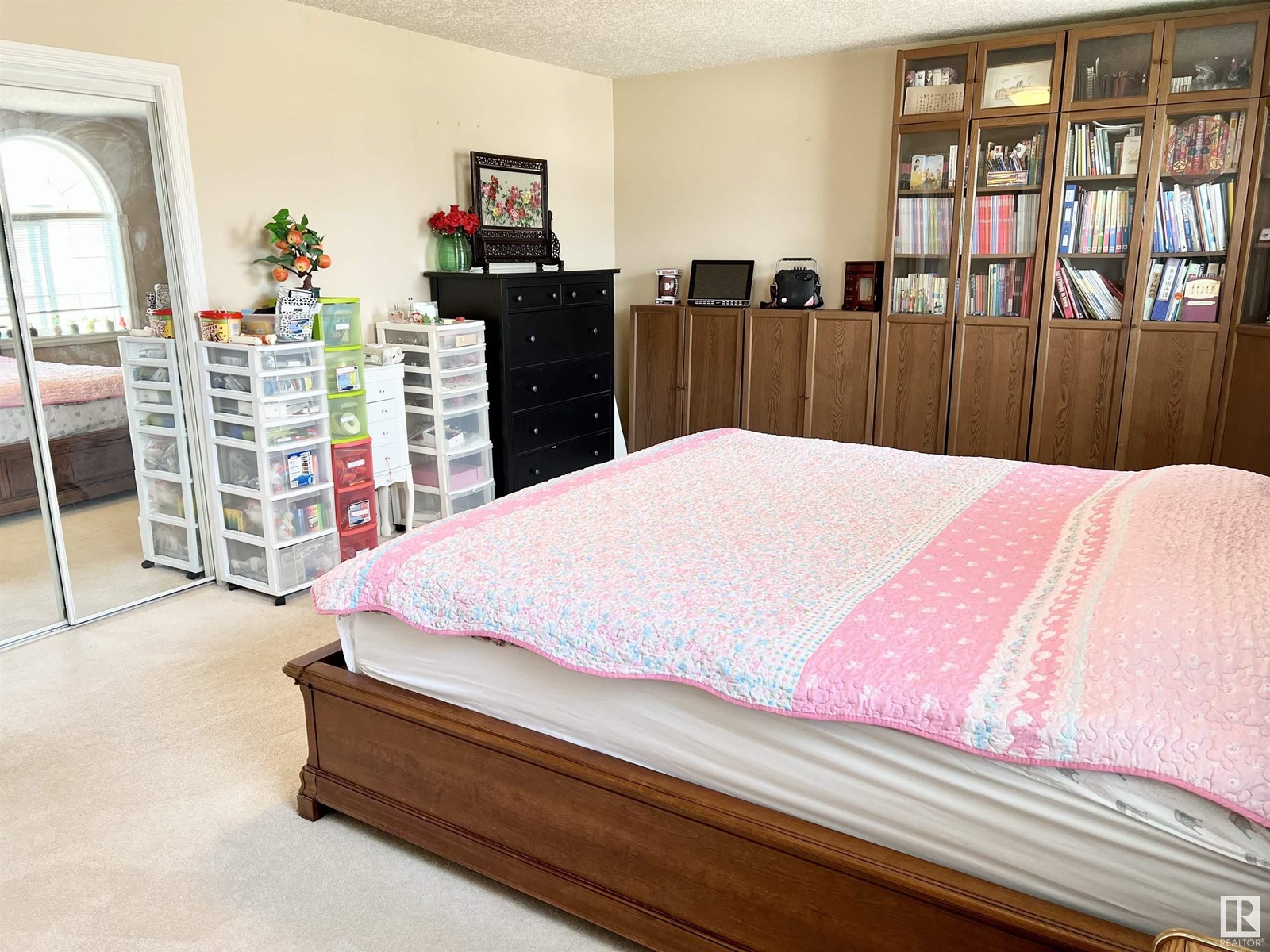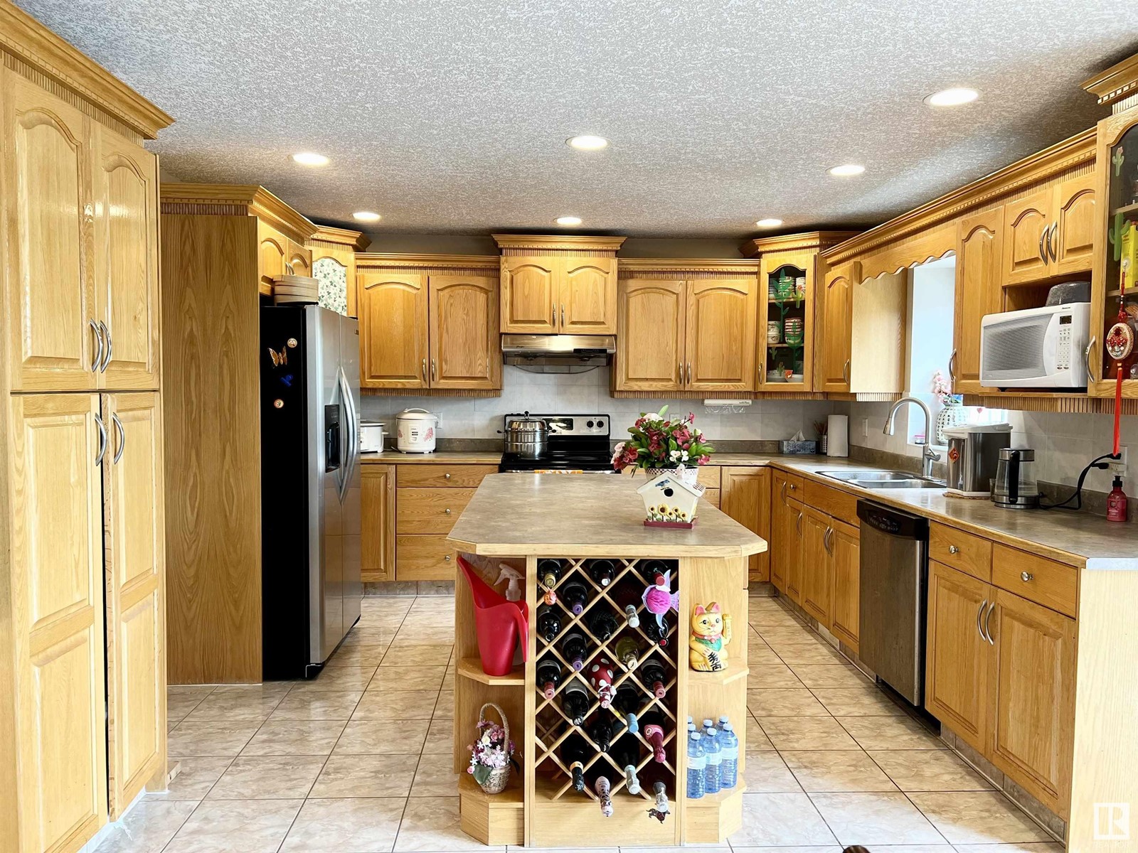 Located in Royal Gardens, Richford. Two storey approximately 2643 sq.ft plus 1175 sq.ft WALKOUT BASEMENT (total of 3819 sq.ft living space). Total of 7 bedrooms, 4 full baths (master bedroom with jacuzzi ensuite) and 2 kitchens. Foyer, living and family rooms with high ceilings. Double door entrance and patio, walkout basement also has double doors to backyard. Landscaping with fruit and apple trees, backing onto a walking trail. Double car garage dry wall insulated, stucco, vinyl deck. Minutes to Calgary Trail, Anthony Henday Drive, South Common shopping center, and other major roads and airport. The large island style kitchen features ceramic tile flooring, all stainless steel appliances(brand new fridge, stove and dishwasher), smooth stove top, ceramic tile backsplash and a large pantry style oak cabinets. Next to it the Dining Nook offers decorative light fixture, phone desk and access to large deck with southern exposure. (id:22211)