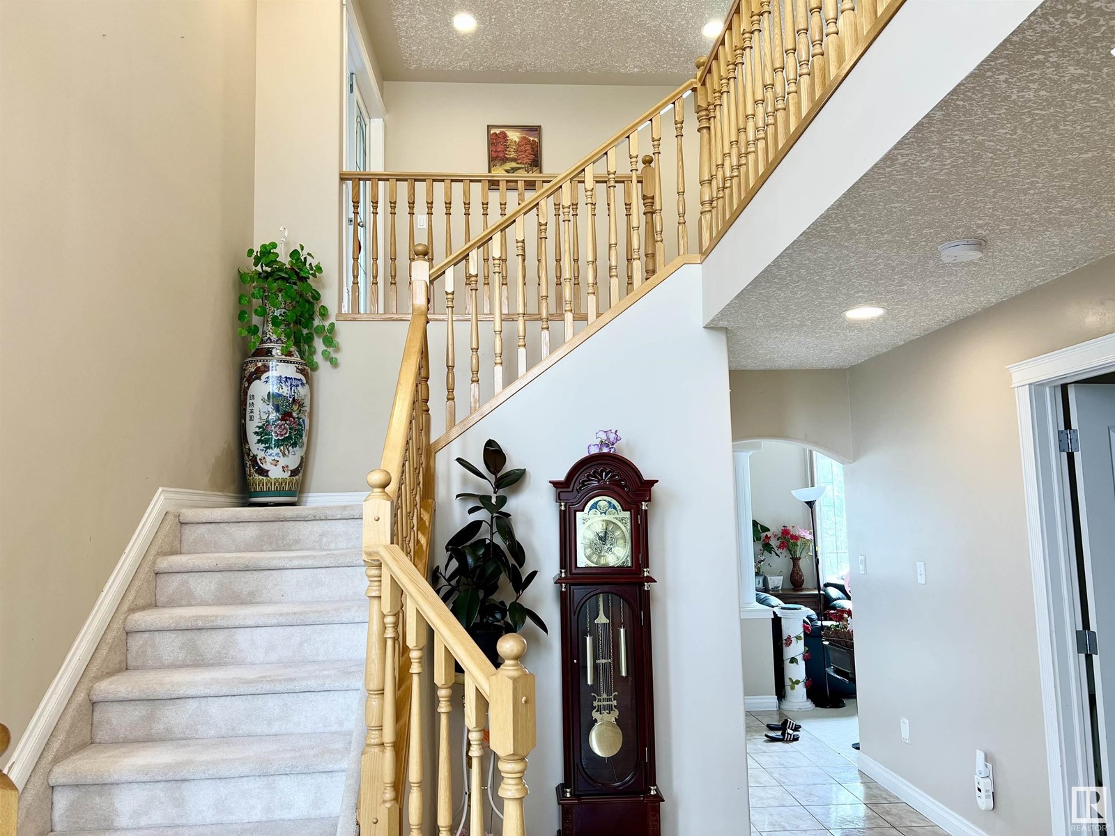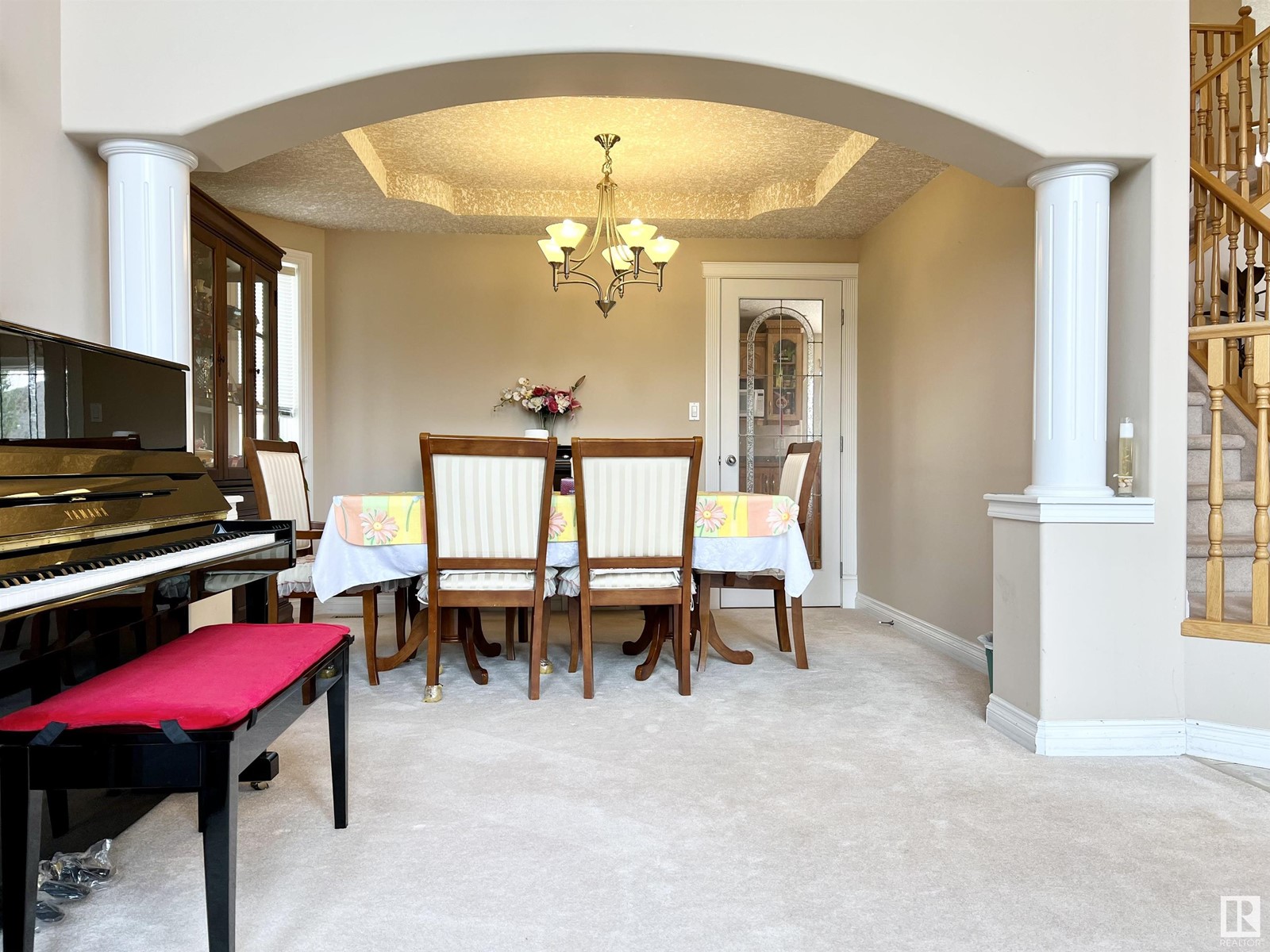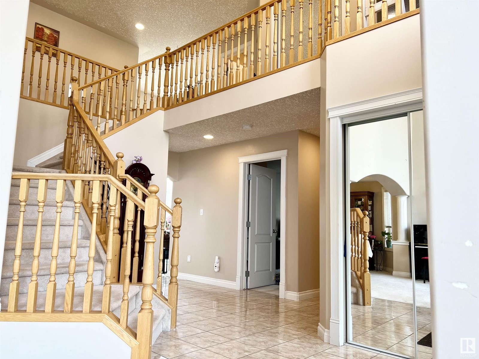 Located in Royal Gardens, Richford. Two storey approximately 2643 sq.ft plus 1175 sq.ft WALKOUT BASEMENT (total of 3819 sq.ft living space). Total of 7 bedrooms, 4 full baths (master bedroom with jacuzzi ensuite) and 2 kitchens. Foyer, living and family rooms with high ceilings. Double door entrance and patio, walkout basement also has double doors to backyard. Landscaping with fruit and apple trees, backing onto a walking trail. Double car garage dry wall insulated, stucco, vinyl deck. Minutes to Calgary Trail, Anthony Henday Drive, South Common shopping center, and other major roads and airport. The large island style kitchen features ceramic tile flooring, all stainless steel appliances(brand new fridge, stove and dishwasher), smooth stove top, ceramic tile backsplash and a large pantry style oak cabinets. Next to it the Dining Nook offers decorative light fixture, phone desk and access to large deck with southern exposure. (id:22211)