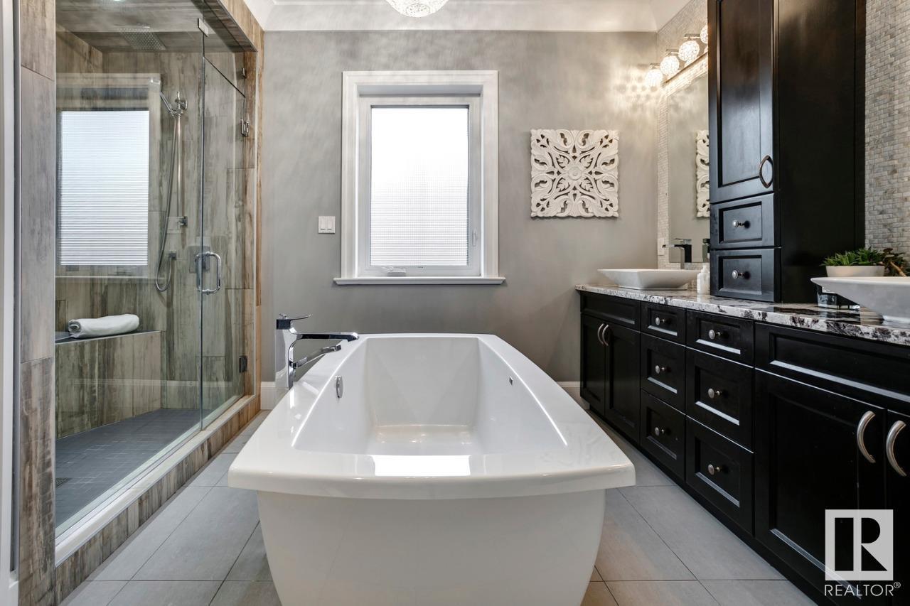 Beautiful infill w/ 2x8 construction, hardwood & crown moulding. The massive, OPEN PLAN main floor is designed for entertaining with 10 ft ceilings, loads of cabinets, large island & pantry, & custom window coverings. The 2nd level offers 3 large bedrooms w/ custom closets, 2 bathrooms & laundry room w/ loads of storage. The primary suite provides a luxurious bath & steam shower, double sinks & custom walk in closet. The bright & beautiful basement offers passive income or extra living space with 2 large bedrooms w/custom closets, oversized, above ground windows, 10 ft ceilings, Jack & Jill bathroom, laundry, open concept living/kitchen area, custom finished concrete flooring & separate entrance. The back yard is ZERO maintenance & provides multiple gas & power outlets for hot tub, heaters & grill. (not toddler friendly). The oversized, triple garage is a fully finished, insulated, & heated man cave with 300+ sq. ft. of storage space in the attic, industrial shelving & air compressor (id:22211)