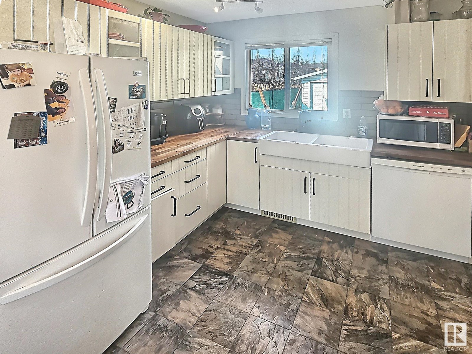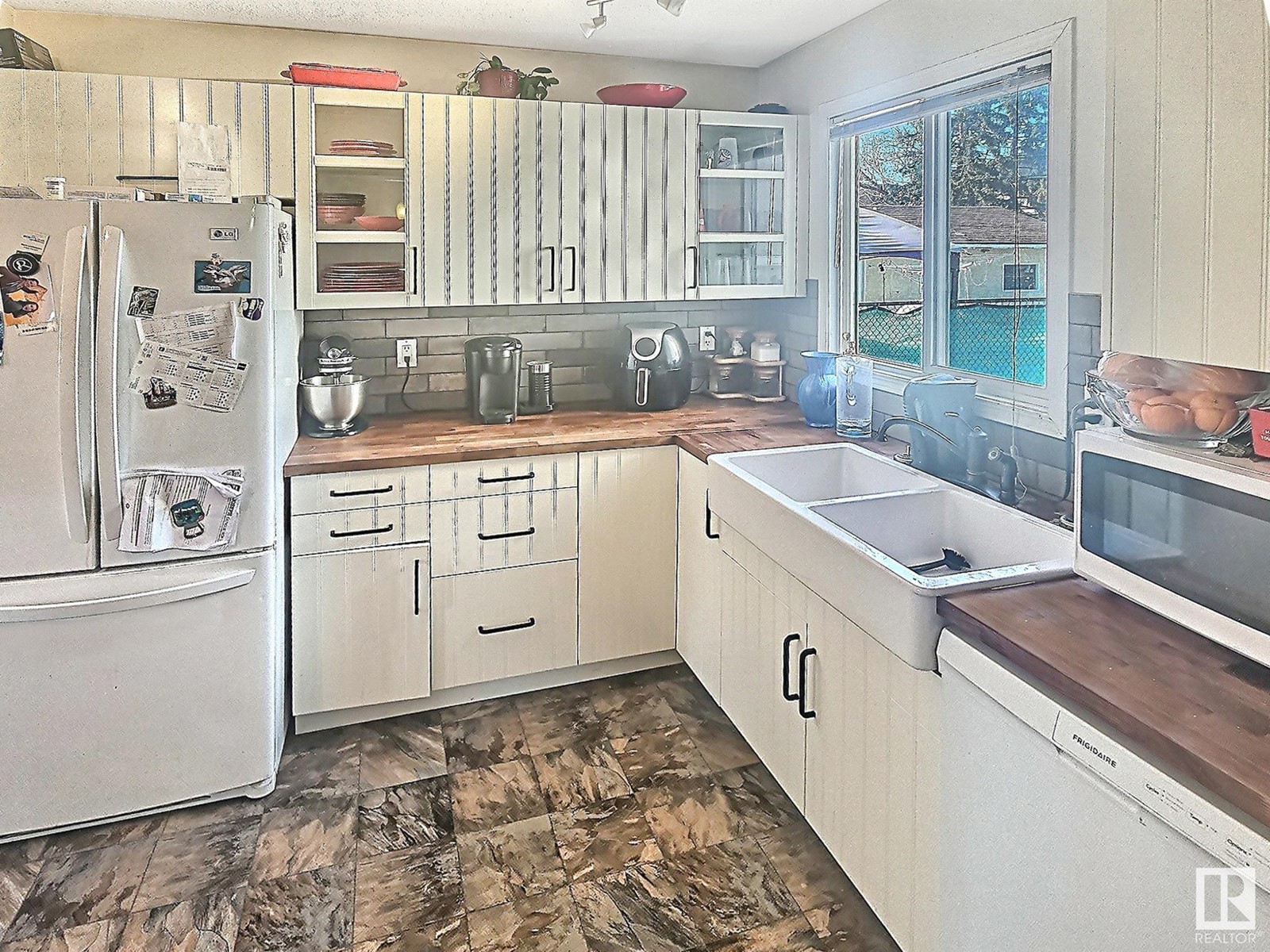 Perfect Home for First Time Buyers, Investors or Growing Family. Located in the Mature Neighborhood of Baturyn, close to Parks, Schools, Shopping and Commuting by public transportation or quick access to the City's ring road. The Home offers a bright open Floor plan with lots of natural light, with just under 1000st.ft of living space this 3 Bedroom Bungalow, is a carpet-free home, with easy to care for Laminate floor throughout. UPDATED Kitchen has warm white cabinets, butcher block counter tops and a farm style apron sink, overlooking the Massive back yard, with room for gardening, playing or just relaxing. The rest of the Main floor offers 3 well-sized bedrooms and a 3-piece bath. The basement is partially developed with two finished rooms, and a roughed-in bathroom. New Electrical Panel installed 2022, New Shingles 2018, Fiber Optics installed by Telus. (id:22211)