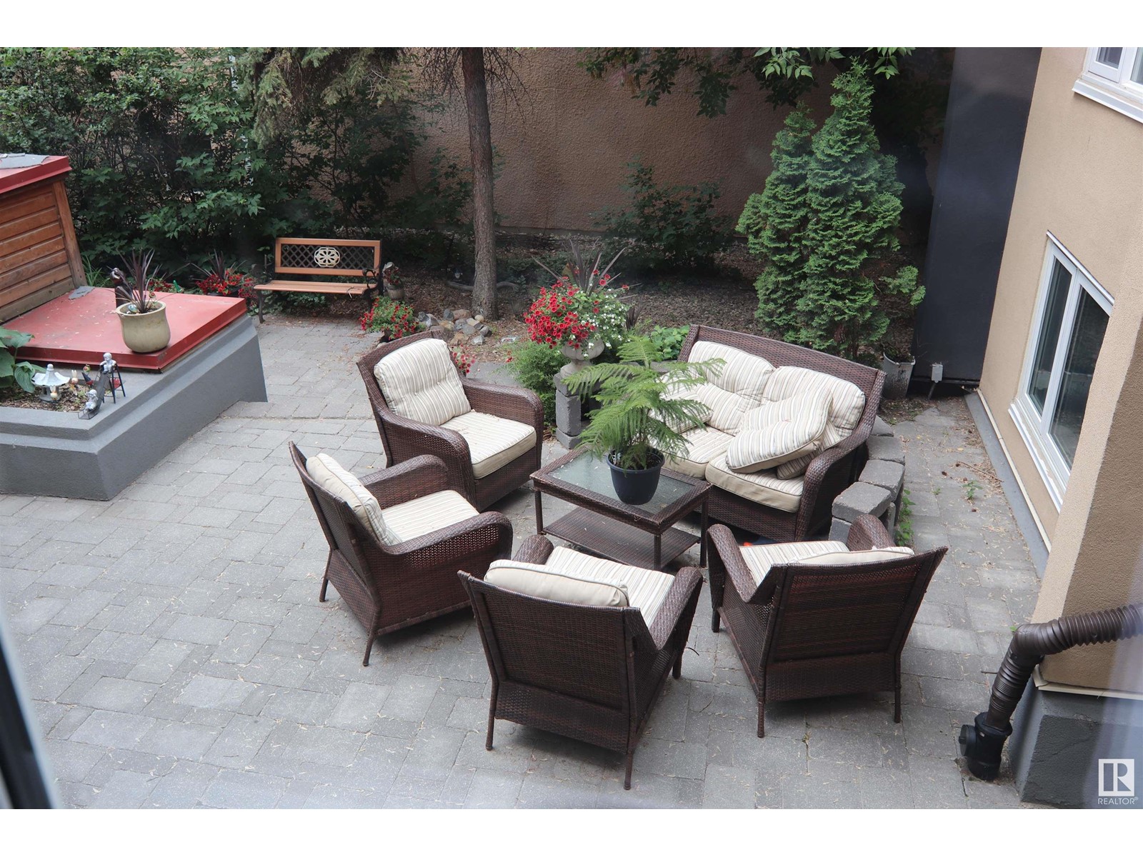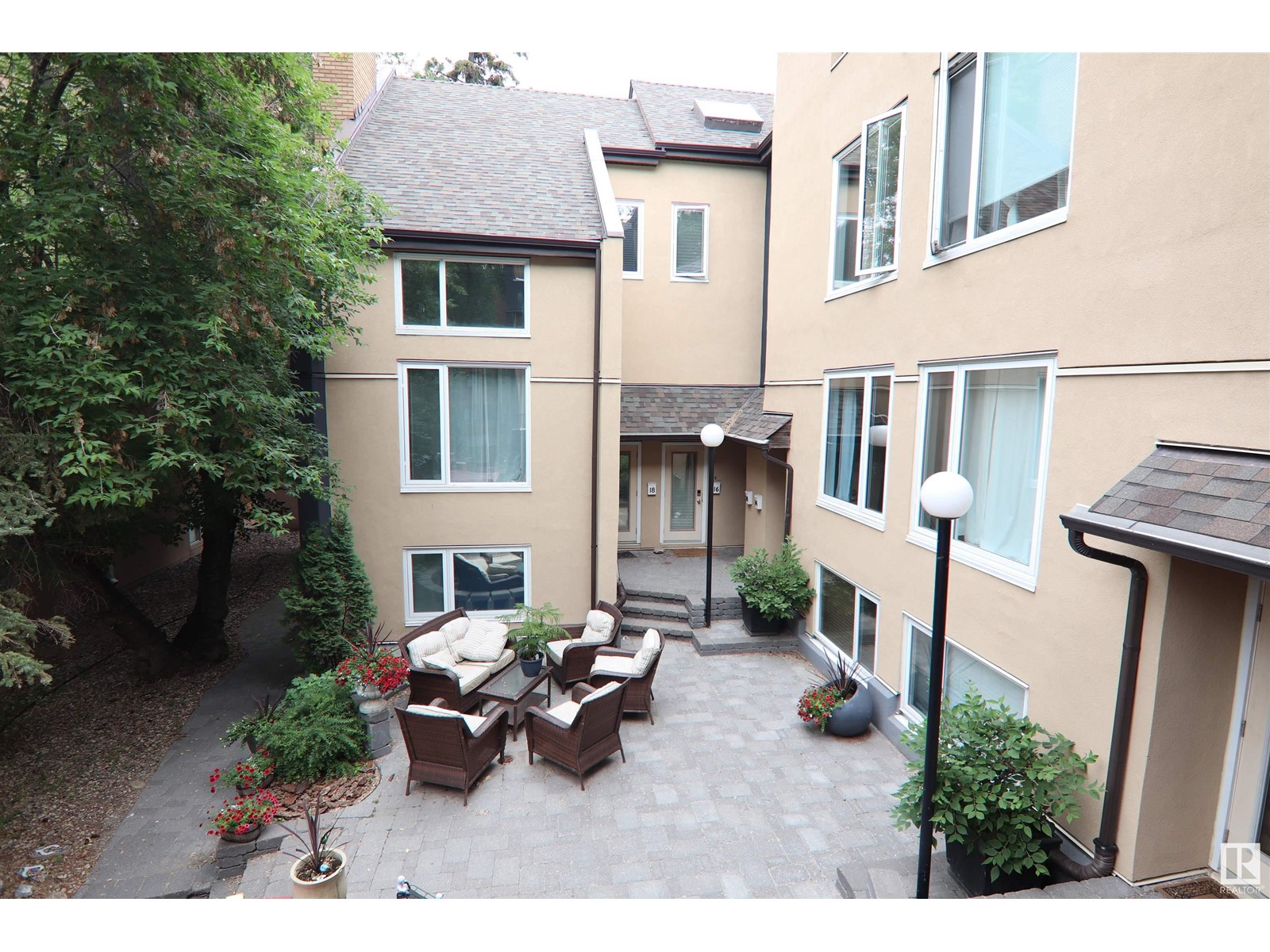 This executive style fully renovated 2-storey townhouse is located in the highly sought after historical neighborhood of Garneau and just steps to the U of A campus and hospital, Whyte Avenue and Downtown. The courtyard greets you with a serene outdoor patio enveloped in nature's ambience. Entering head up the stairs into a spacious living room, dining room providing ample entertaining space w/ a two sided fireplace, 2 pc bath & large kitchen w/ plenty of cupboard and pantry space, a coffee breakfast bar and high end appliances. The ground level is uniquely designed with large windows and storage, the 2 bdrms are situated apart with a family room and private walkout patio in the middle, laundry & boiler room, and 4 pc bath with double sinks. Underground heated parking stall w/ bike racks, visitor stalls outback, and permitted street parking. This trendy central area is an excellent place to live with walkability to great restaurants, shopping, river valley, biking trails, cultural and social venues. (id:22211)