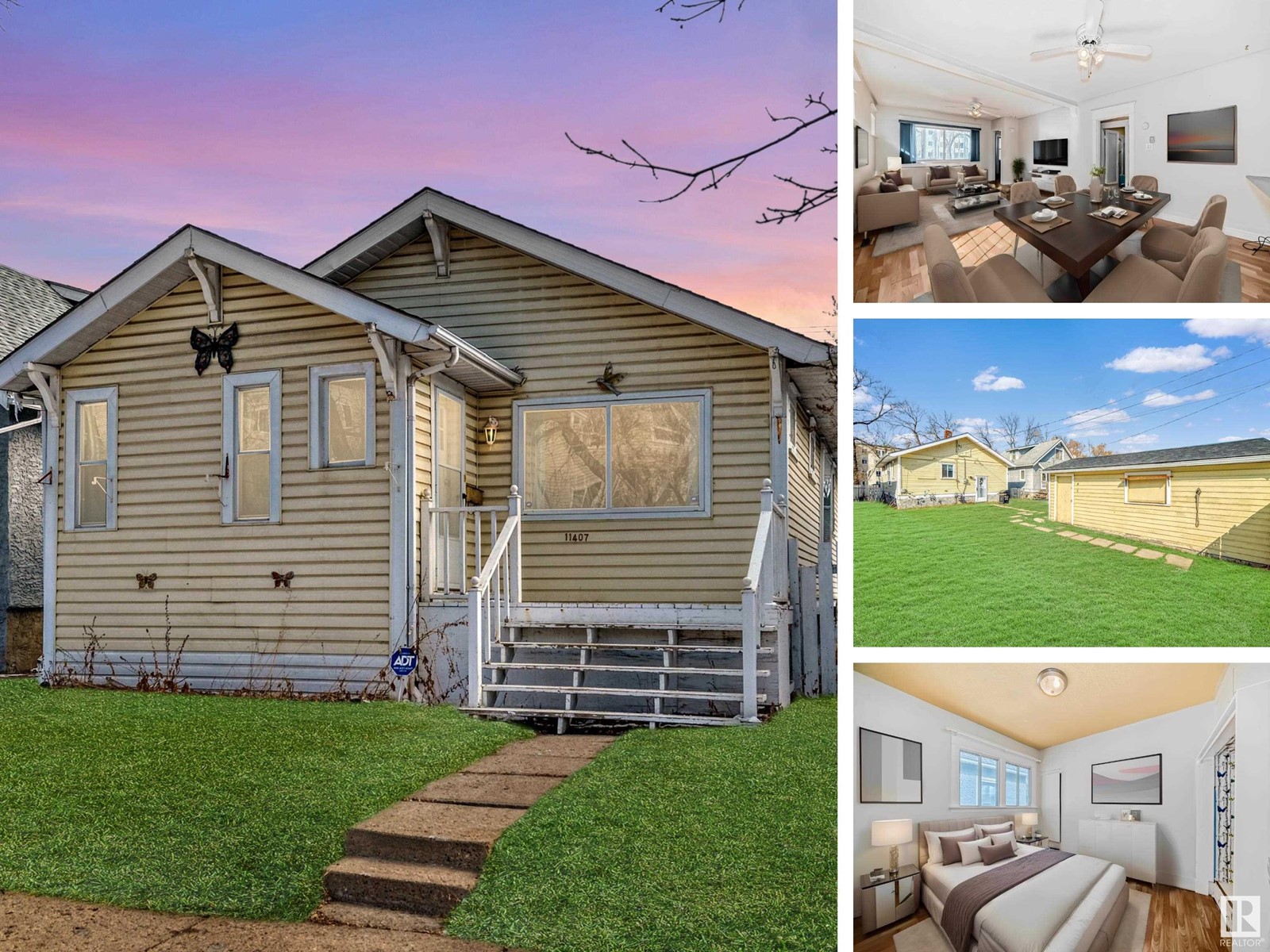 INVESTOR ALERT/CENTRAL EDMONTON/4 BED 2 BATH:Step into this charming bungalow,perfect for first-time buyers or savvy investors. With 4 bedrooms and 2 bathrooms, it offers ample space for family living or rental potential. A quaint raised porch welcomes you, with clever storage underneath. Inside, a spacious mudroom provides plenty of closet space. The living room, dining area, and well-equipped kitchen flow seamlessly in an open concept design. The home features durable linoleum and laminate flooring throughout, making maintenance a breeze. Custom window trim and elegant molding add character, while recent upgrades include new roofing and a hot water tank. The fully finished basement includes a 2 more bedrooms, complete bathroom, and laundry facilities. A single detached garage and three parking spaces cater to your needs. Landscaped gardens and a fenced yard offer privacy. Centrally located, this home is a lifestyle choice offering incredible value. (Some photos have been staged or digitally modified.) (id:22211)