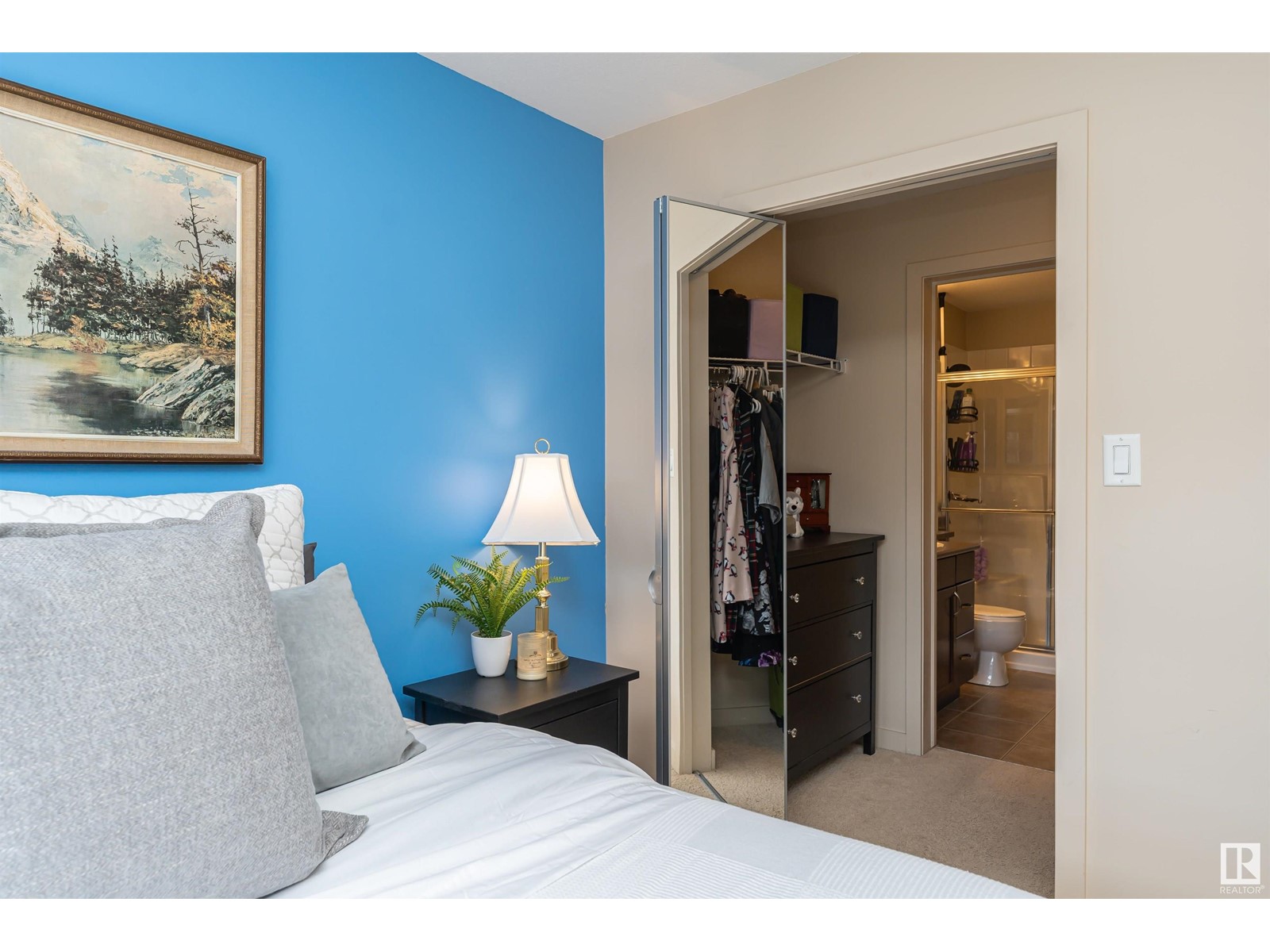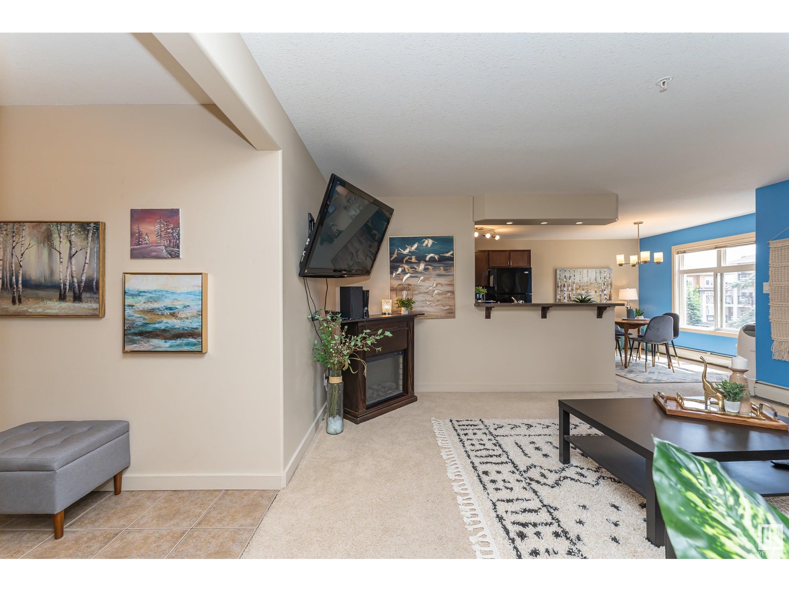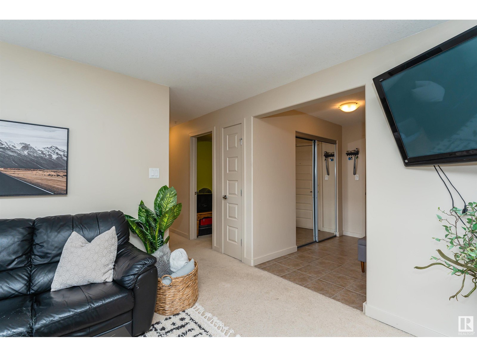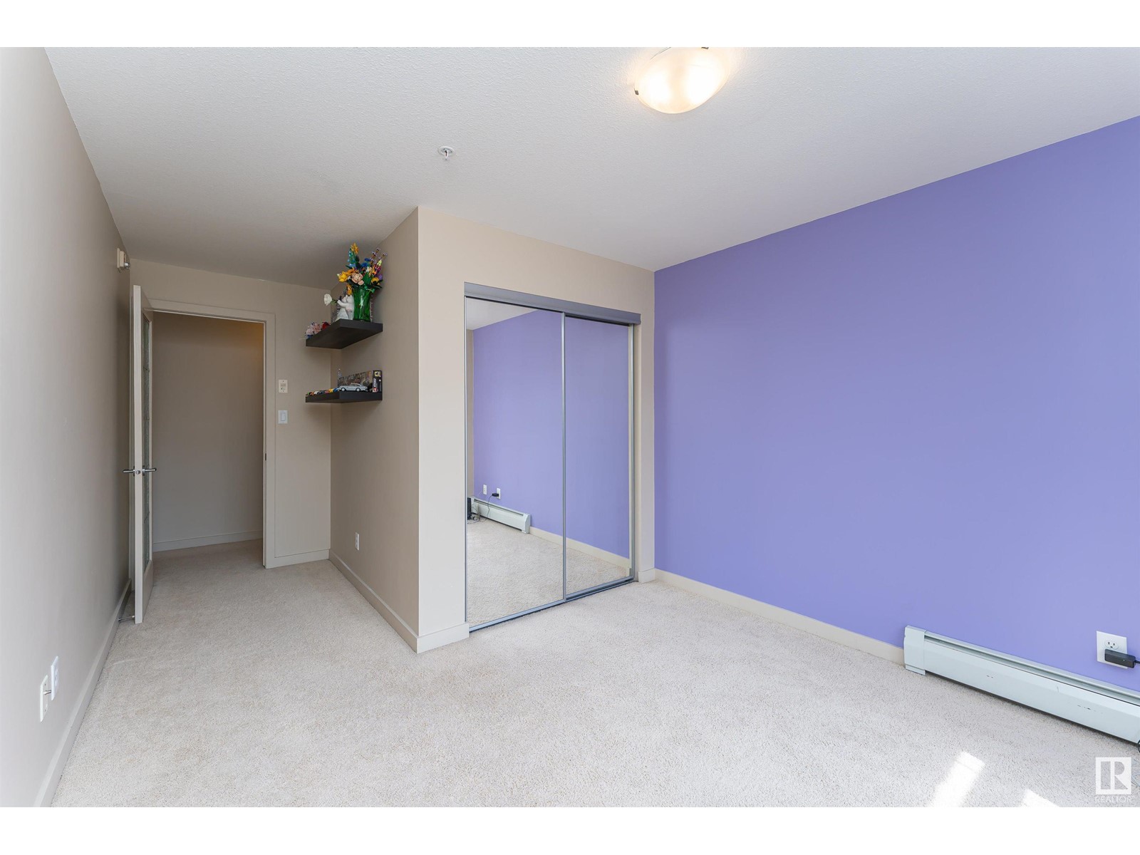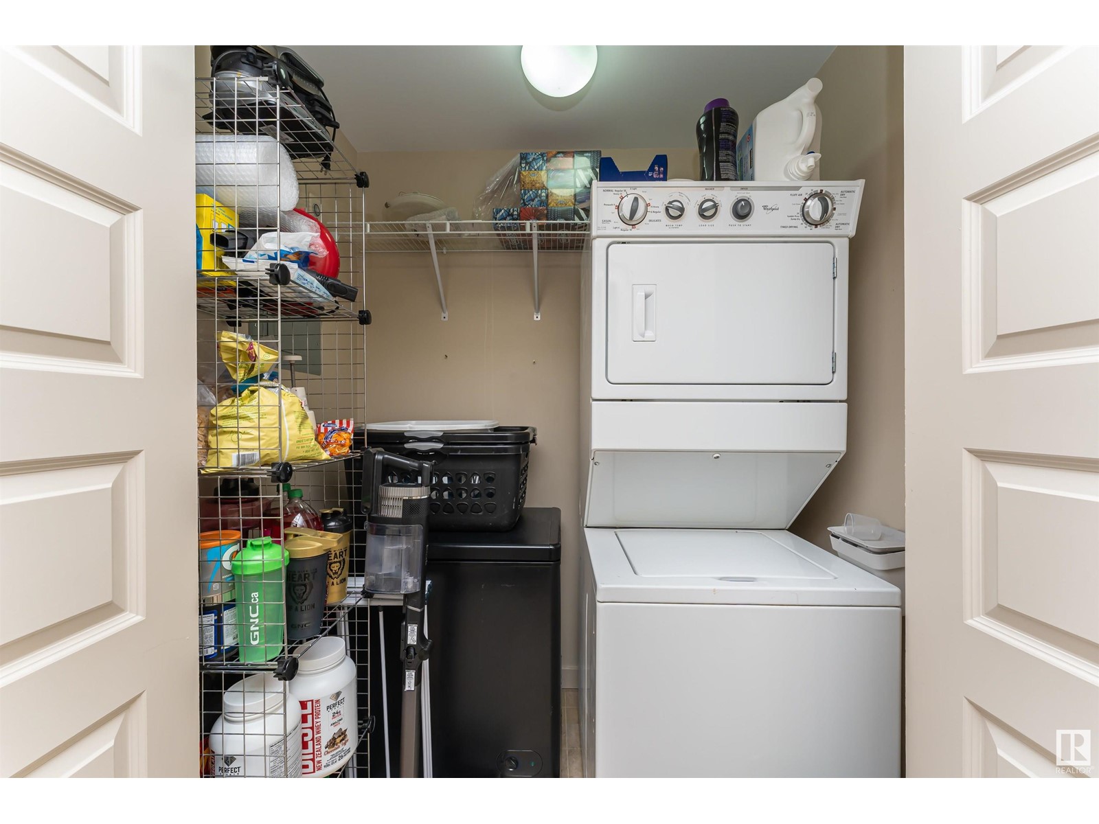 Spacious, two-bedroom + den suite with over 1000 SqFt of living space, this condo delivers an excellent floor plan with lots of storage. The well-appointed kitchen has sleek appliances with a breakfast bar that seamlessly flows into the living & dining area that opens to the LRG, south-facing covered balcony w/ a gas BBQ line - a perfect sunny retreat! The primary bedroom has a DBL walk-through closet extending into the ensuite bath with glass shower. An additional spacious bedroom & a versatile den, is ideal for use as a home office. This unit offers a private & quiet setting, with no neighbours below & only one adjacent unit. Positioned above the social & a utility room, peace and tranquility are guaranteed. In-suite laundry, titled UG stall w/ storage cage adds to the value. Residents of Rutherford Gate enjoy an exercise room, party room, with a kitchen, pool table, table tennis & seating area. For out-of-town visitors, a guest suite is available. Quick access to all amenities & the Anthony Henday. (id:22211)