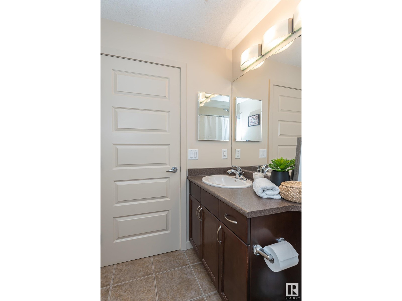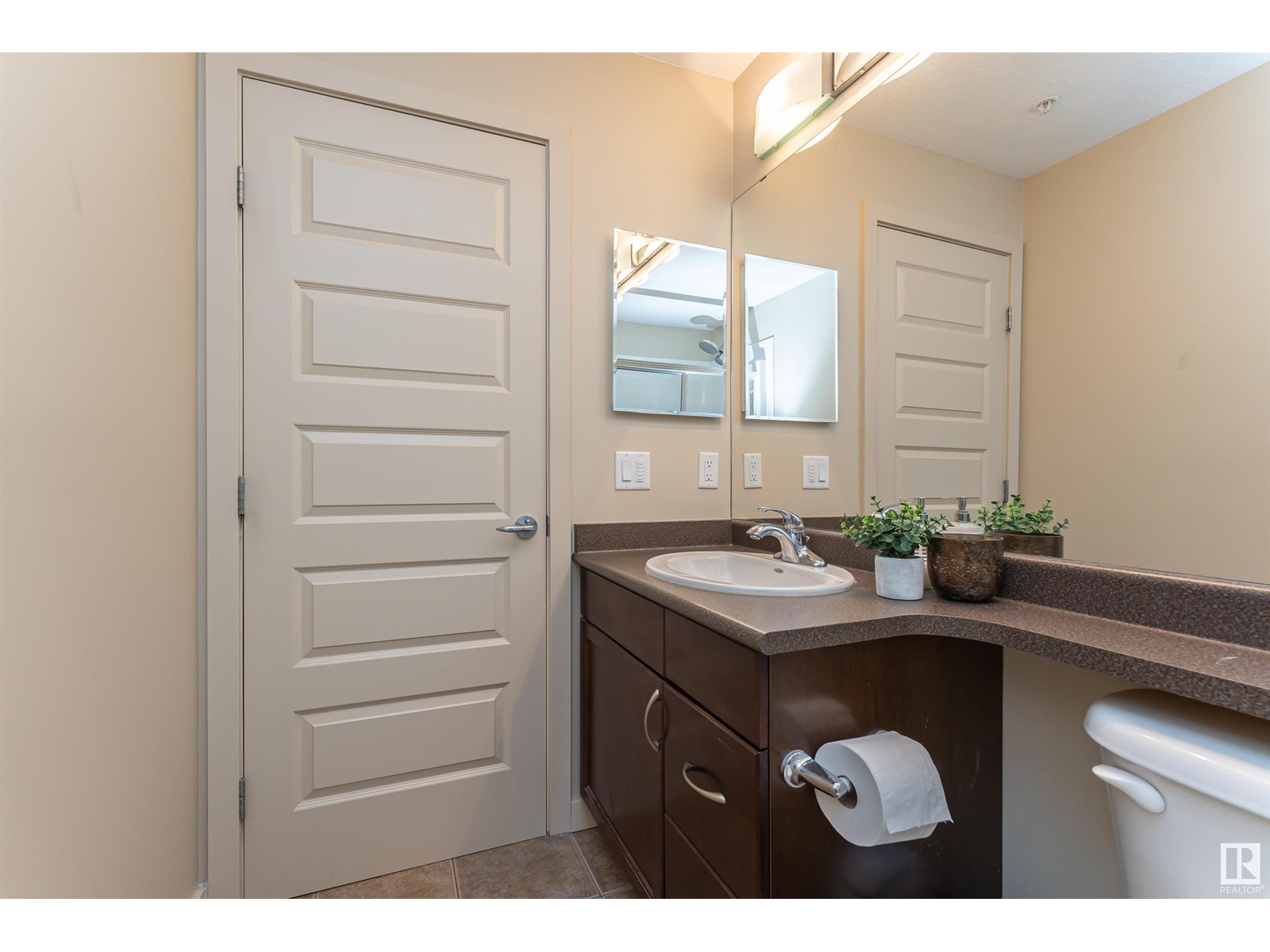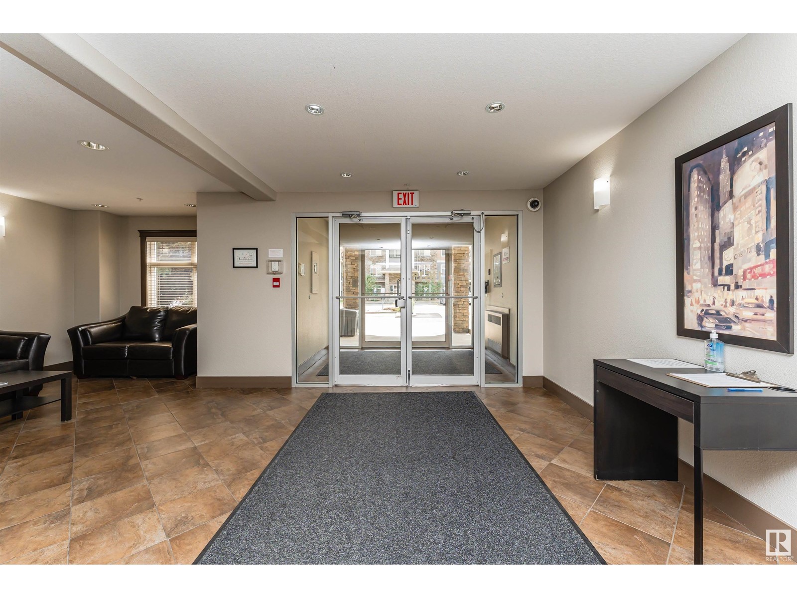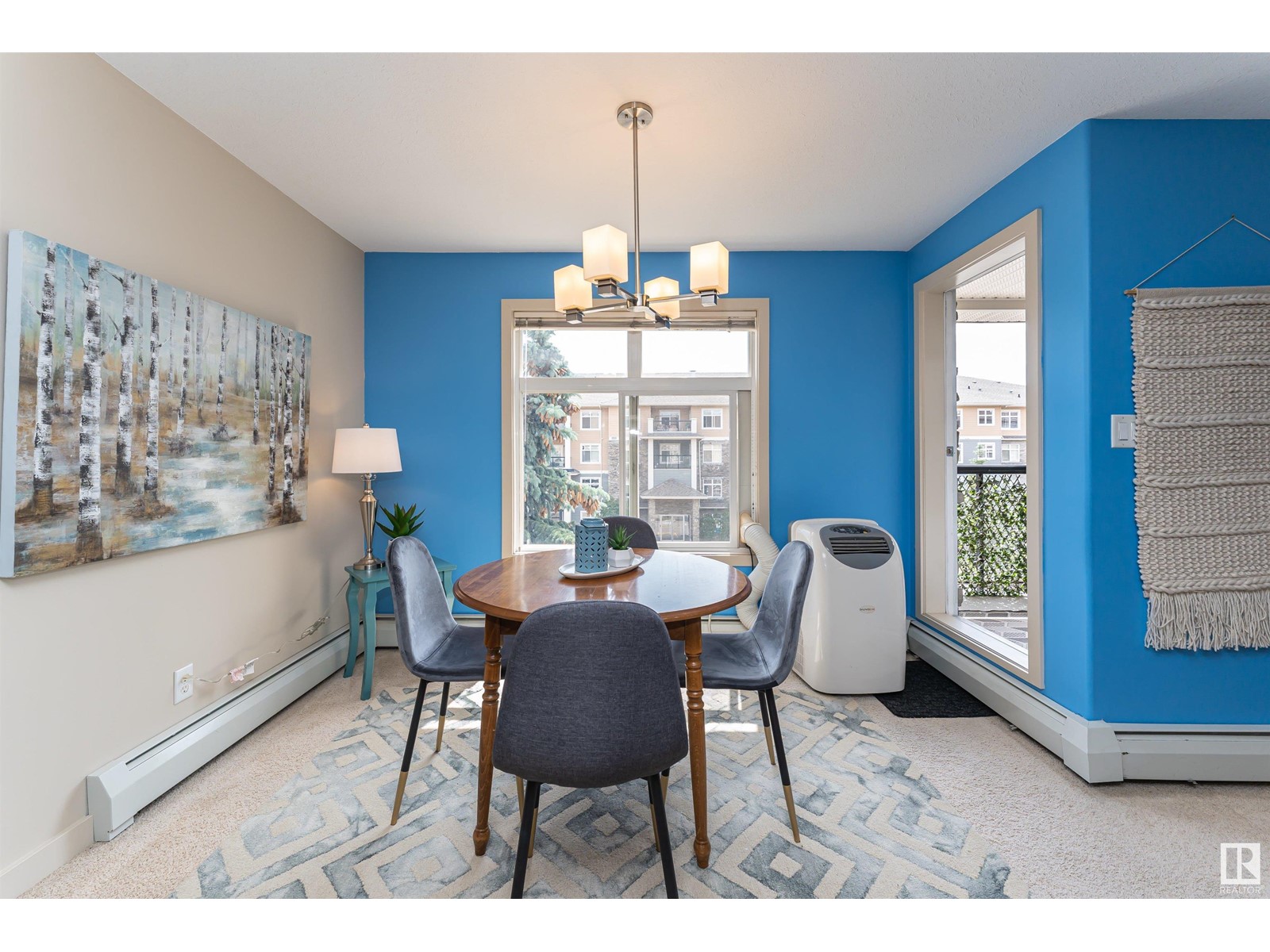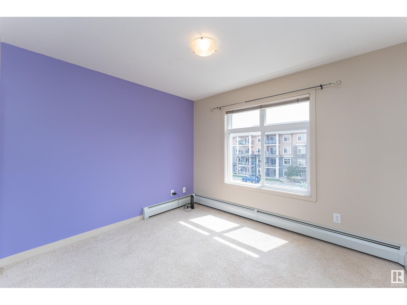 Spacious, two-bedroom + den suite with over 1000 SqFt of living space, this condo delivers an excellent floor plan with lots of storage. The well-appointed kitchen has sleek appliances with a breakfast bar that seamlessly flows into the living & dining area that opens to the LRG, south-facing covered balcony w/ a gas BBQ line - a perfect sunny retreat! The primary bedroom has a DBL walk-through closet extending into the ensuite bath with glass shower. An additional spacious bedroom & a versatile den, is ideal for use as a home office. This unit offers a private & quiet setting, with no neighbours below & only one adjacent unit. Positioned above the social & a utility room, peace and tranquility are guaranteed. In-suite laundry, titled UG stall w/ storage cage adds to the value. Residents of Rutherford Gate enjoy an exercise room, party room, with a kitchen, pool table, table tennis & seating area. For out-of-town visitors, a guest suite is available. Quick access to all amenities & the Anthony Henday. (id:22211)