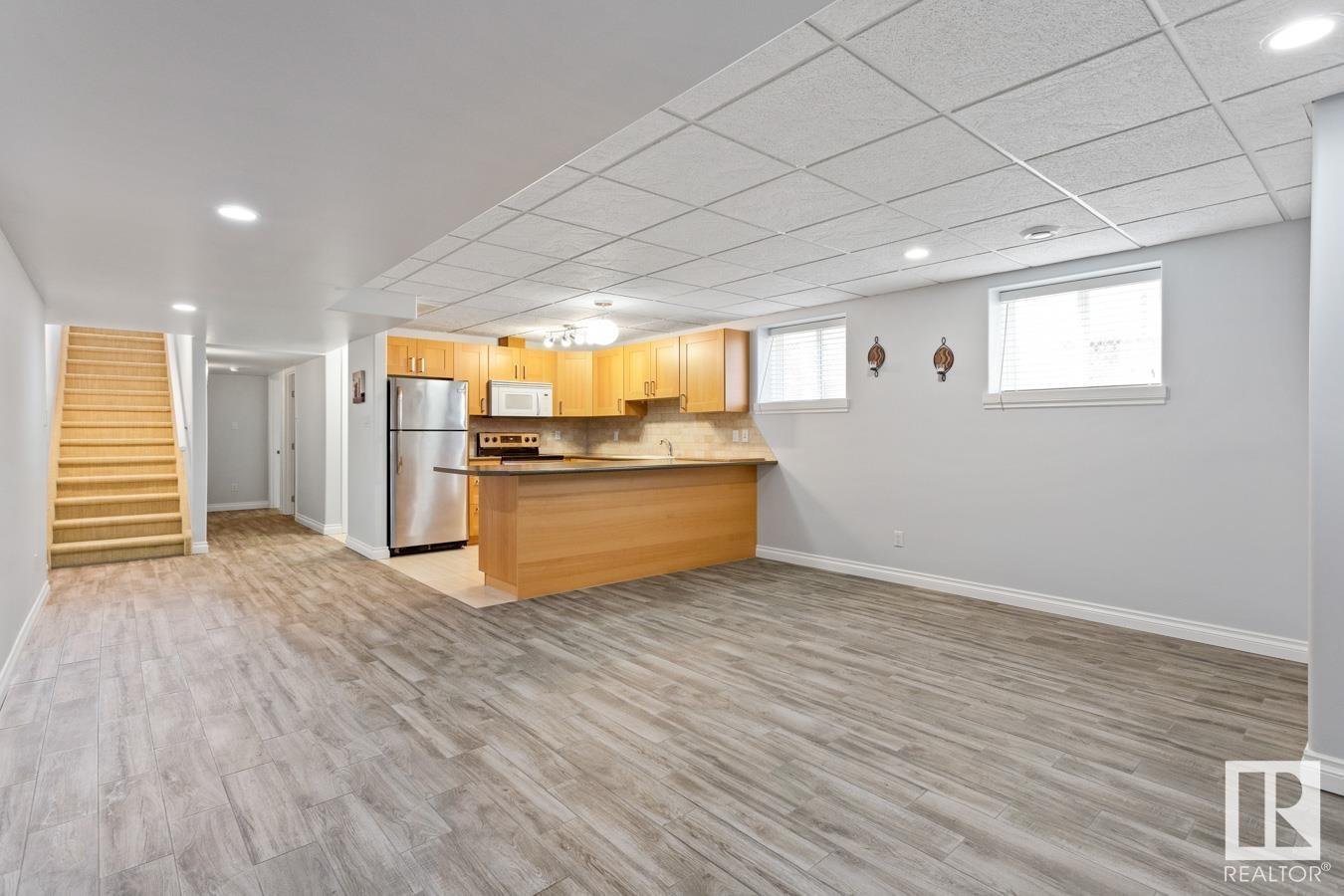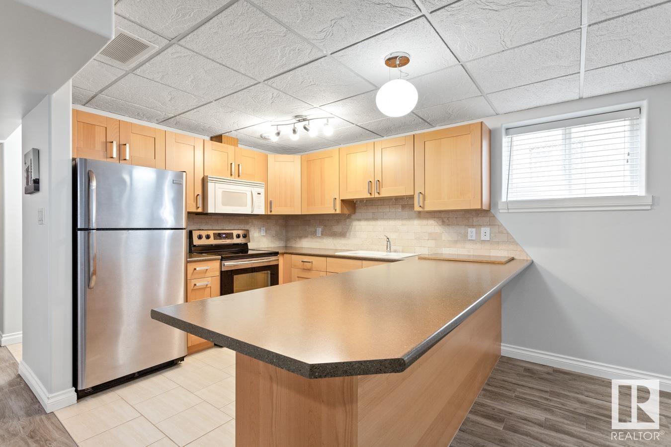 REDUCED! Available with immediate possession. Close to Nait & ideal as 5 bedroom rental unit perhaps. The leafy Westwood community also offers easy access to Kingsway Mall, Victoria School & Royal Alex. A finished illegal basement suite. Enjoy 5-bedrooms 4-bathrooms. The home would be perfect for an investor, first-time buyers or a family. The main floor offers oak hardwood floors, a cosy gas fireplace, modern kitchen with stainless appliances, a 4-piece bathroom & a bedroom. Perfect for an older family member. The upper floor offers 3 good sized bedrooms including a master with ensuite. The lower floor can be accessed via a separate entrance & offers 1-bedroom, kitchen, laundry & underfloor heating. Outside you will enjoy mature landscaping, higher end exposed concrete front, rear porch area & a double garage with a storage loft. Close to public transportation & just minutes to downtown. Comes with all appliances & window coverings installed. Amazing value. (id:22211)