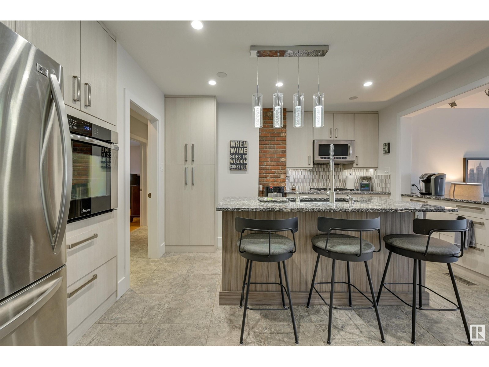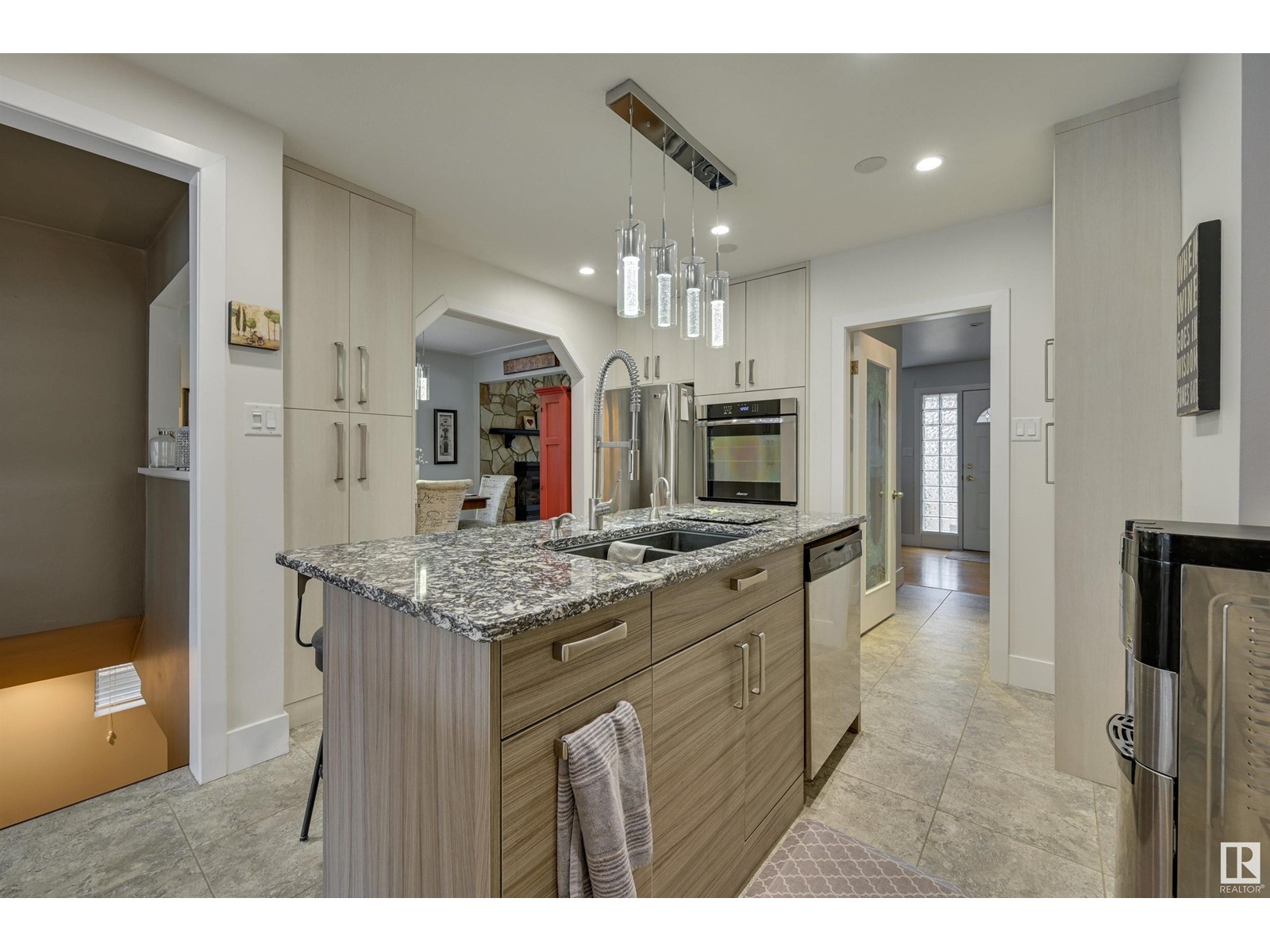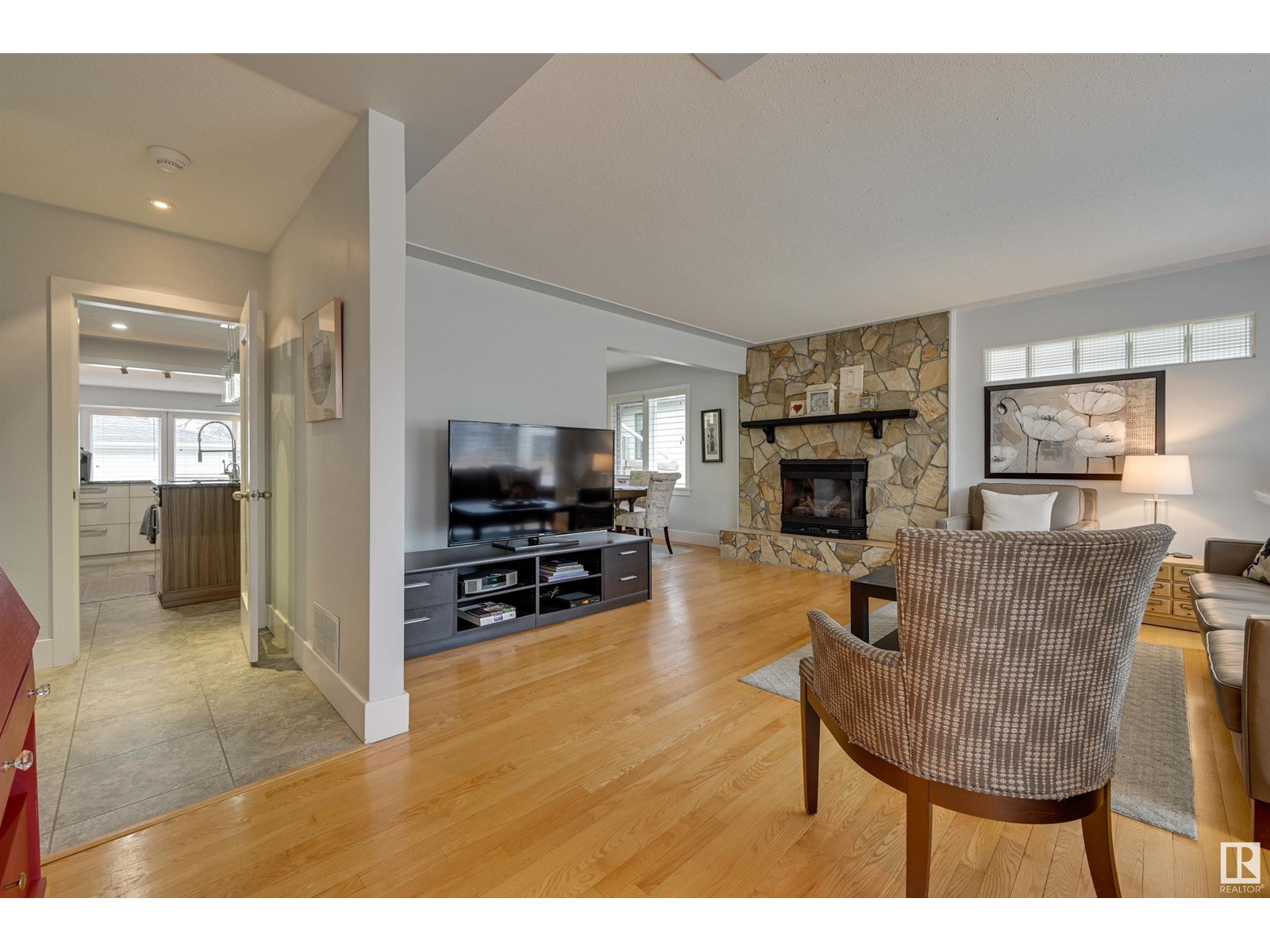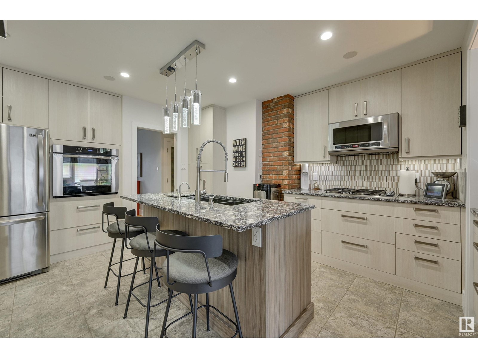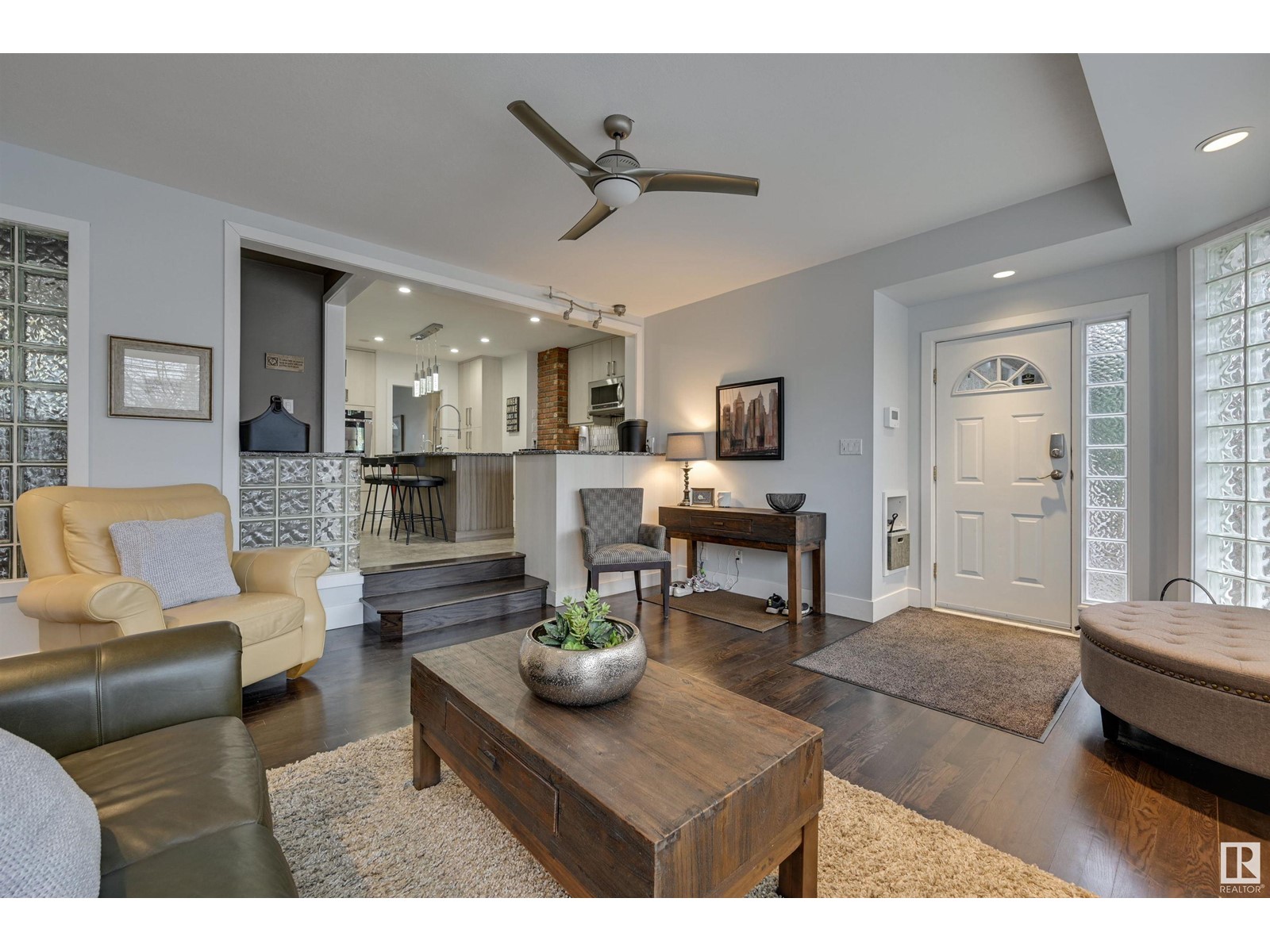 Fantastic 1500+ sq.ft. 3 bedroom + 3 bathroom in Glenora. Walk in the front door & immediately you will love the space in the living room w/ the gas fireplace, hardwood flooring & generous dining room. Move into the renovated kitchen that has quartz countertops, exposed brick, modern style cabinetry, island and a combo of pot lights & pendant lighting. Now move into the family room which features another gas fireplace and lots of windows ~ multiple purpose area for TV, kids zone, or work-out room. The primary bedroom has room for a king bed, 3 piece ensuite (w/steam shower), 2nd bedroom is currently used as an office but ample room for a king. The main floor 4 pce bathroom has quartz countertops + same cabinetry as the kitchen + beautiful glass bricks allowing in lots of natural lighting. Move downstairs ~ 1 bedroom + 3 pce. bathroom, large rec. room w/gas fireplace, utility room w/ plenty of storage. Heated oversized garage, underground sprinkler & low maintenance landscaping. Must to see! (id:22211)
