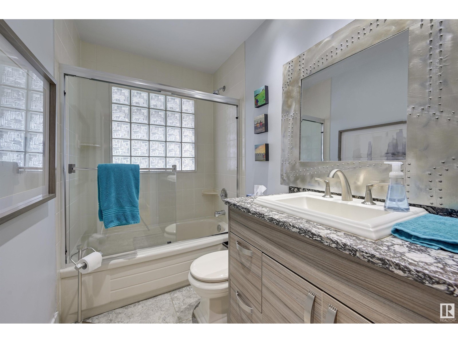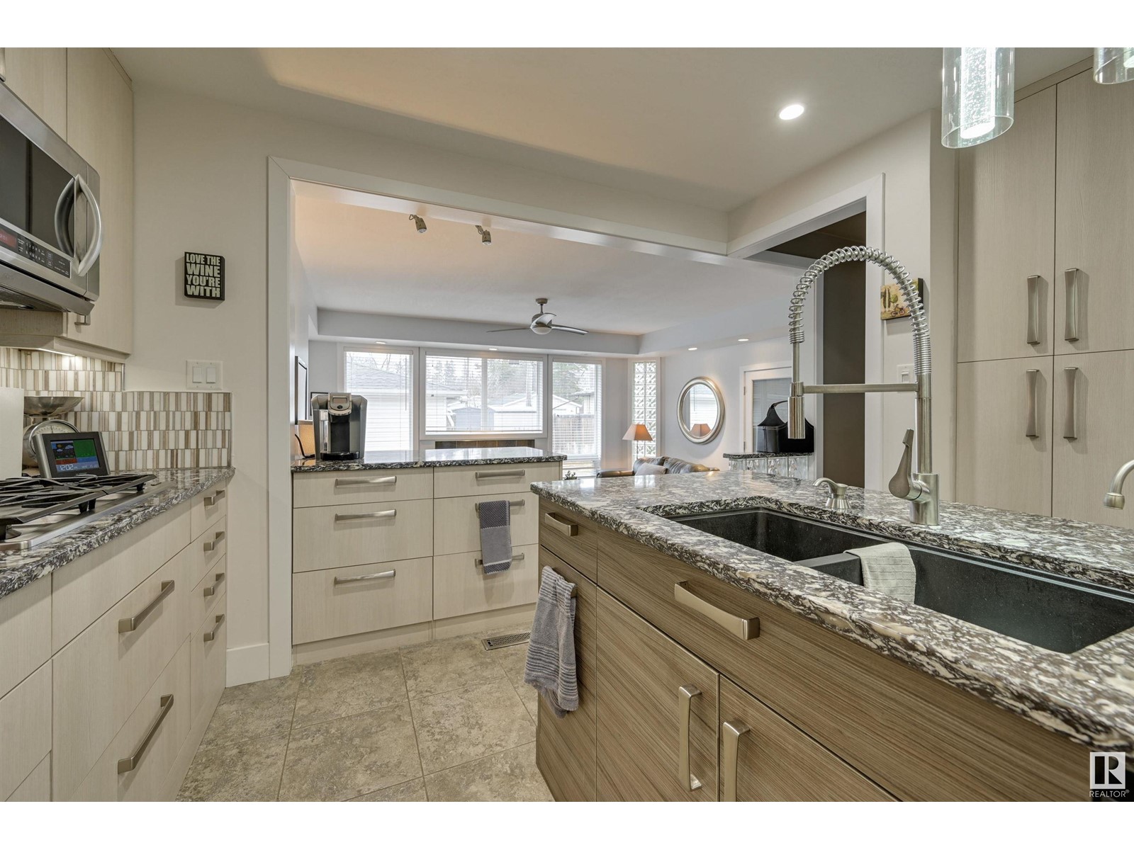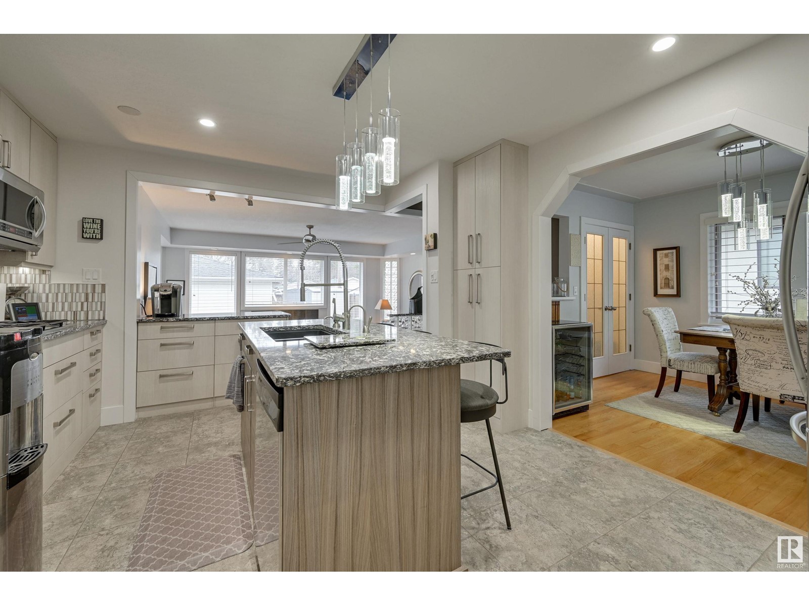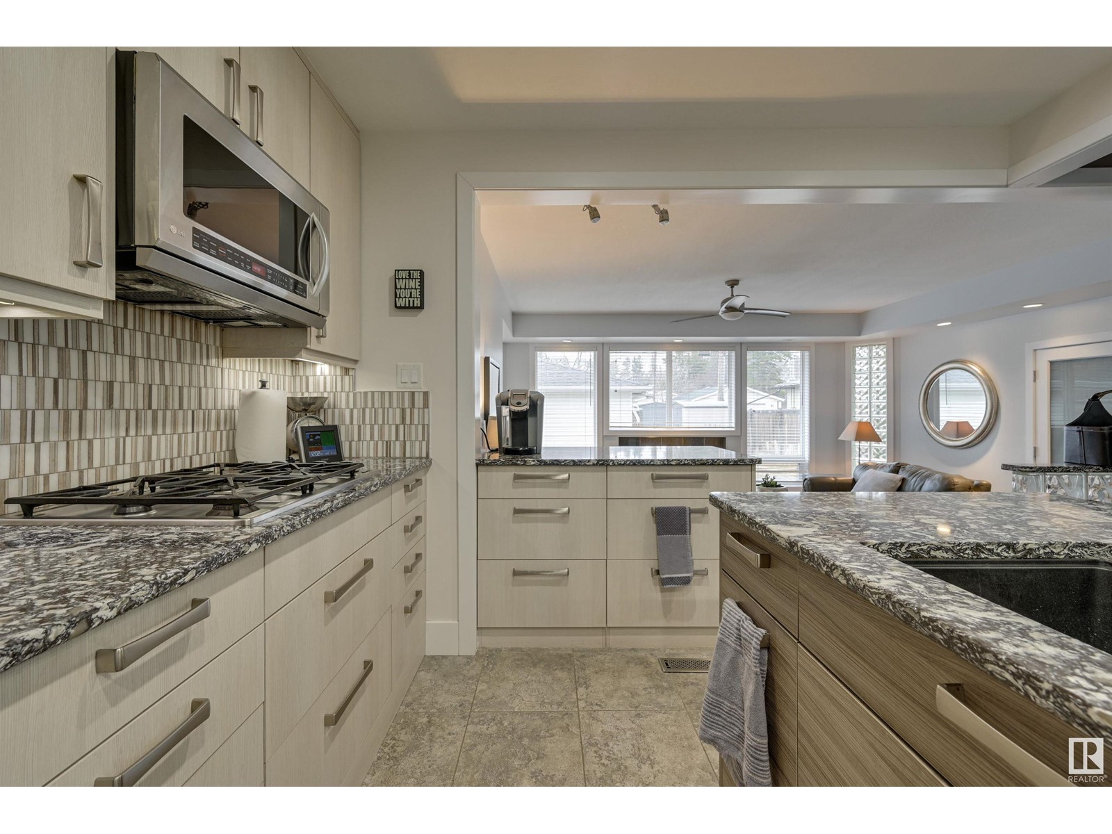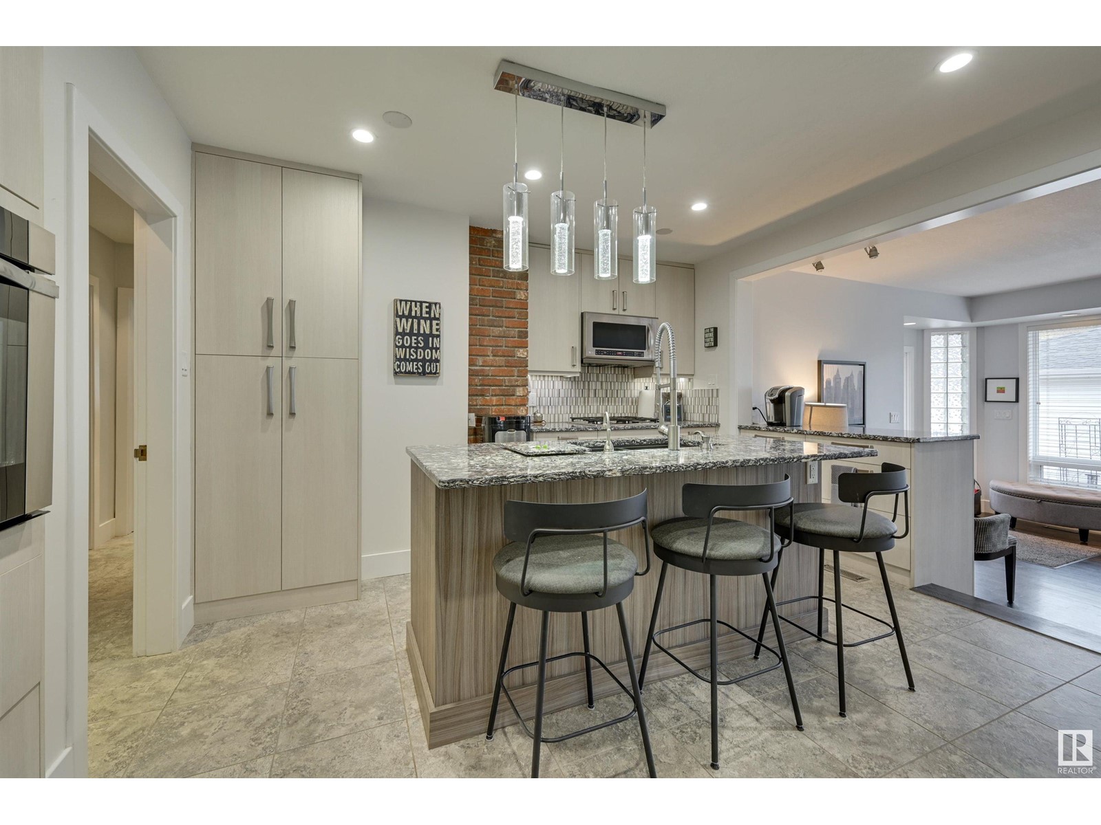 Fantastic 1500+ sq.ft. 3 bedroom + 3 bathroom in Glenora. Walk in the front door & immediately you will love the space in the living room w/ the gas fireplace, hardwood flooring & generous dining room. Move into the renovated kitchen that has quartz countertops, exposed brick, modern style cabinetry, island and a combo of pot lights & pendant lighting. Now move into the family room which features another gas fireplace and lots of windows ~ multiple purpose area for TV, kids zone, or work-out room. The primary bedroom has room for a king bed, 3 piece ensuite (w/steam shower), 2nd bedroom is currently used as an office but ample room for a king. The main floor 4 pce bathroom has quartz countertops + same cabinetry as the kitchen + beautiful glass bricks allowing in lots of natural lighting. Move downstairs ~ 1 bedroom + 3 pce. bathroom, large rec. room w/gas fireplace, utility room w/ plenty of storage. Heated oversized garage, underground sprinkler & low maintenance landscaping. Must to see! (id:22211)
