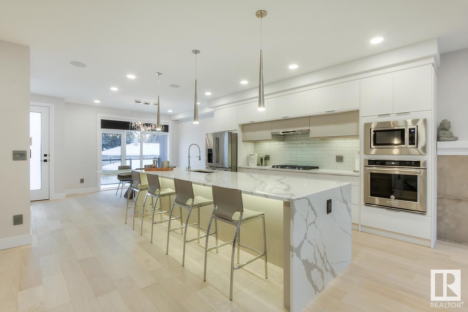 INVESTOR ALERT! MOST EXCLUSIVE & HIGH END FULLY RENTED 4PLEX w/Rental income of APPROX $16,000+ in GLENORA close to all amenities such as river valley walking trails, parks, restaurants, shopping & future LRT line. Boasts contemporary finishings featuring over 7500+ SQ.FT w/dark premium acrylic stucco exterior, Sound Proof party walls between units, double attached garages, CENTRAL A/C, oversized triple pane windows, total of 16 BEDS/9 BATHS, engineered hardwood, open riser stairs w/glass railings, ceramic tiles & quartz throughout. Ultra modern kitchen w/built in stainless steel appliances, gas connection in stove area & rear patio, 12' island, and sizable dining/nook area. 3 bedrooms each on the upper level including master w/walk-in closet & 5pc ensuite, his/her sink, luxurious walk-in shower also offers Convenient upper floor laundry in each unit. Additional bedroom/den/gym or full storage each on lower level. Upgrades includes built in speakers, security cameras/video doorbell. SEE IT TODAY! (id:22211)