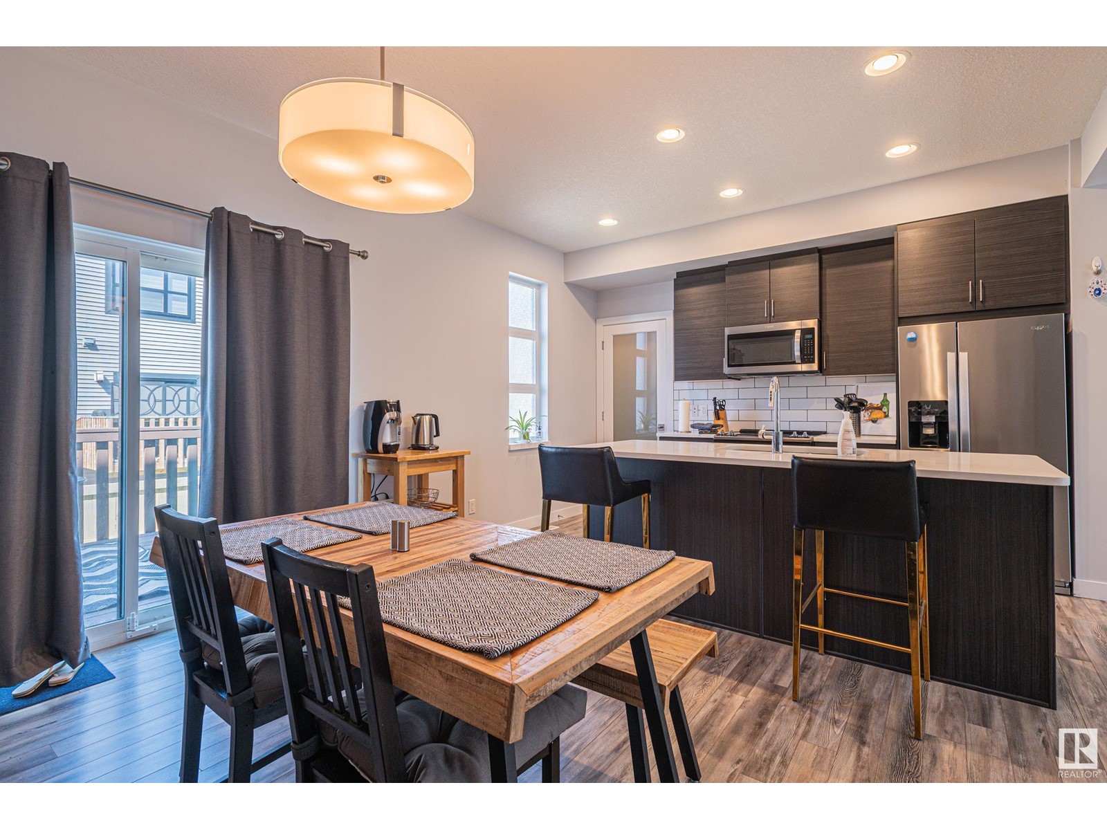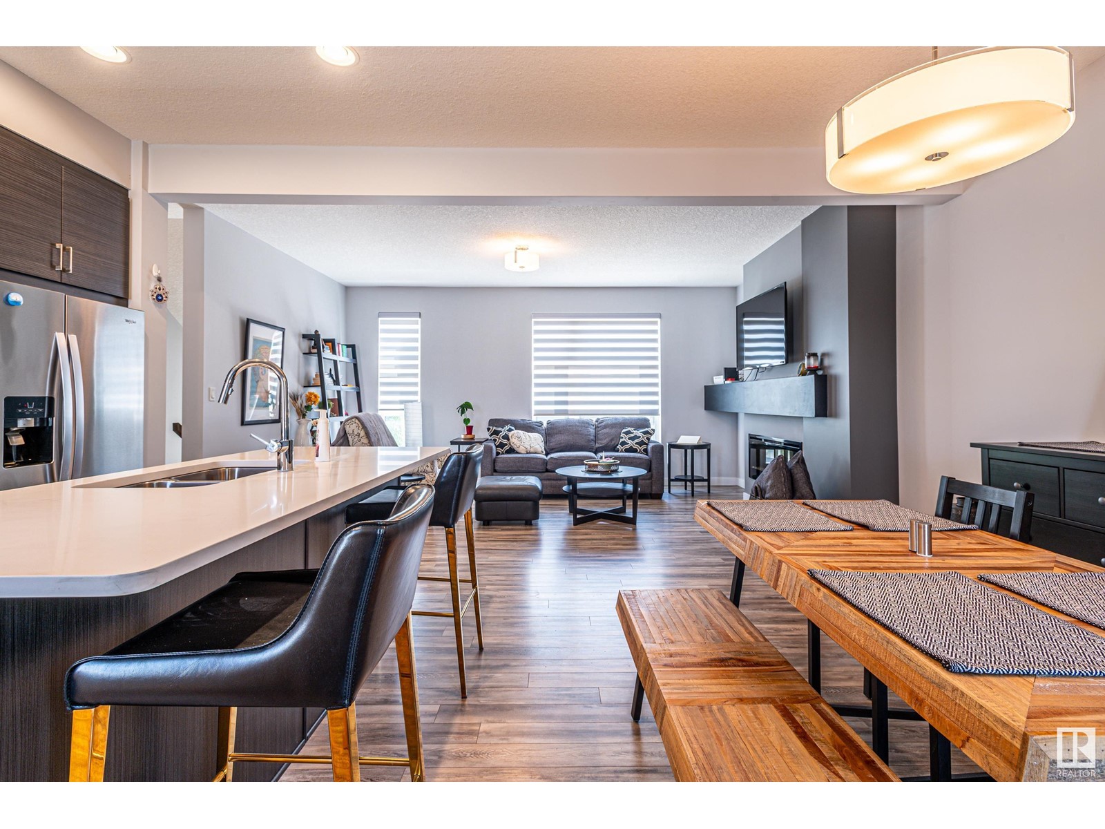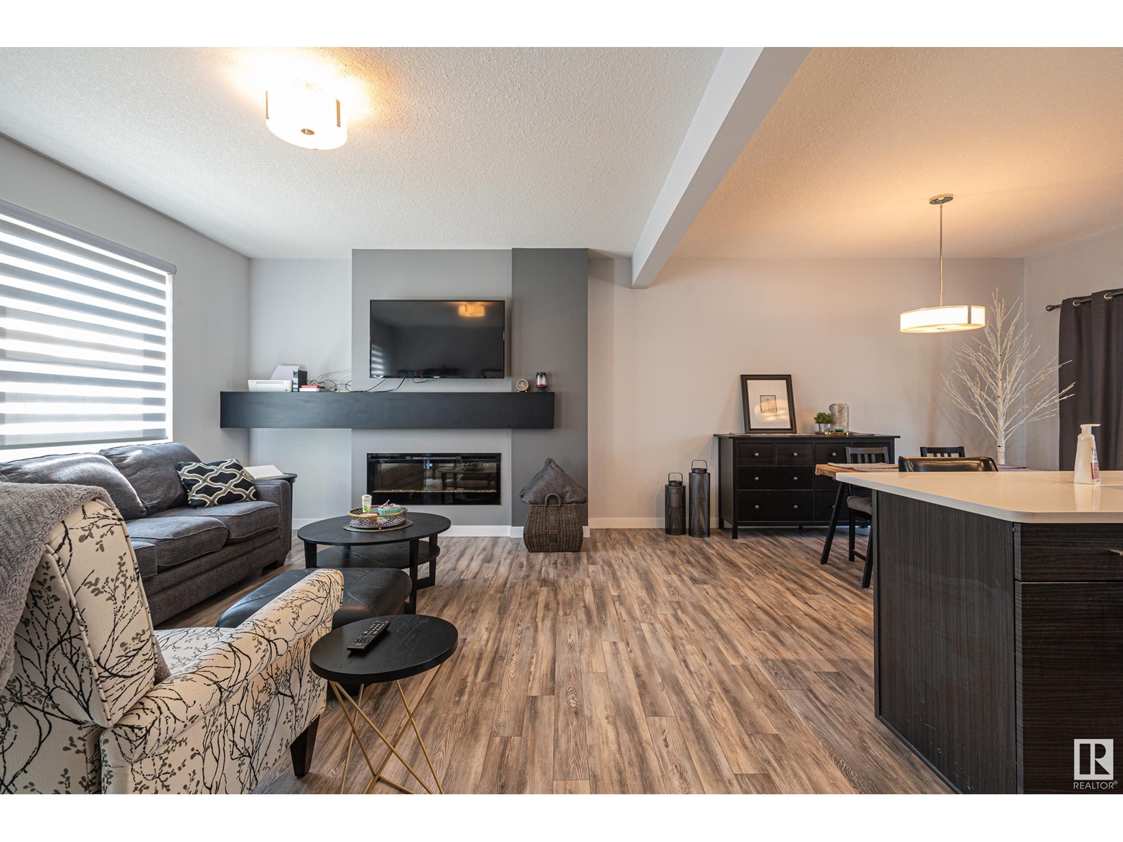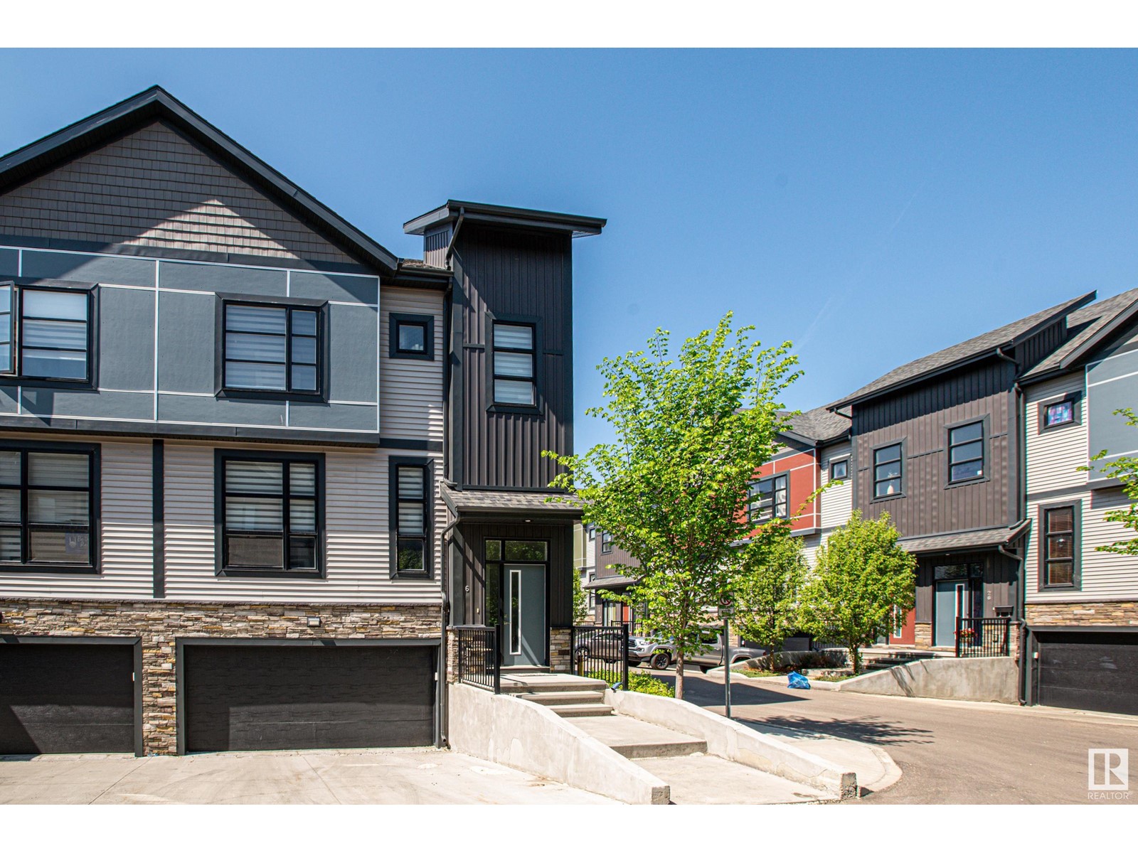 Welcome home to this modern town home located in north west Edmonton this end unit has pride of ownership impressing you from the moment you enter the front foyer. With over 1300 sq ft of living space and a double attached garage. This 3 bedroom home with 2.5 baths has a large open concept floor plan with a stunning kitchen with large island quartz counter tops, large walk in pantry and plenty of cabinets. The large living room has cozy fireplace and large windows with custom blinds through out the main floor there is a large dining room for family gatherings or for entertaining as well there are double patio doors leading you to deck and back yard which is fenced and landscaped. Upstairs features 3 bedrooms including a large walk in closet with a 3 piece ensuite off the master bedroom. In addition to the other two bedrooms is a 4 pc bath completing the upper floor. The oversized double garage will fit two full size cars comfortably and leads you directing into the lower level of this amazing home. (id:22211)