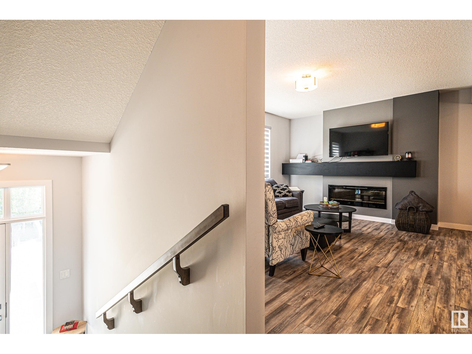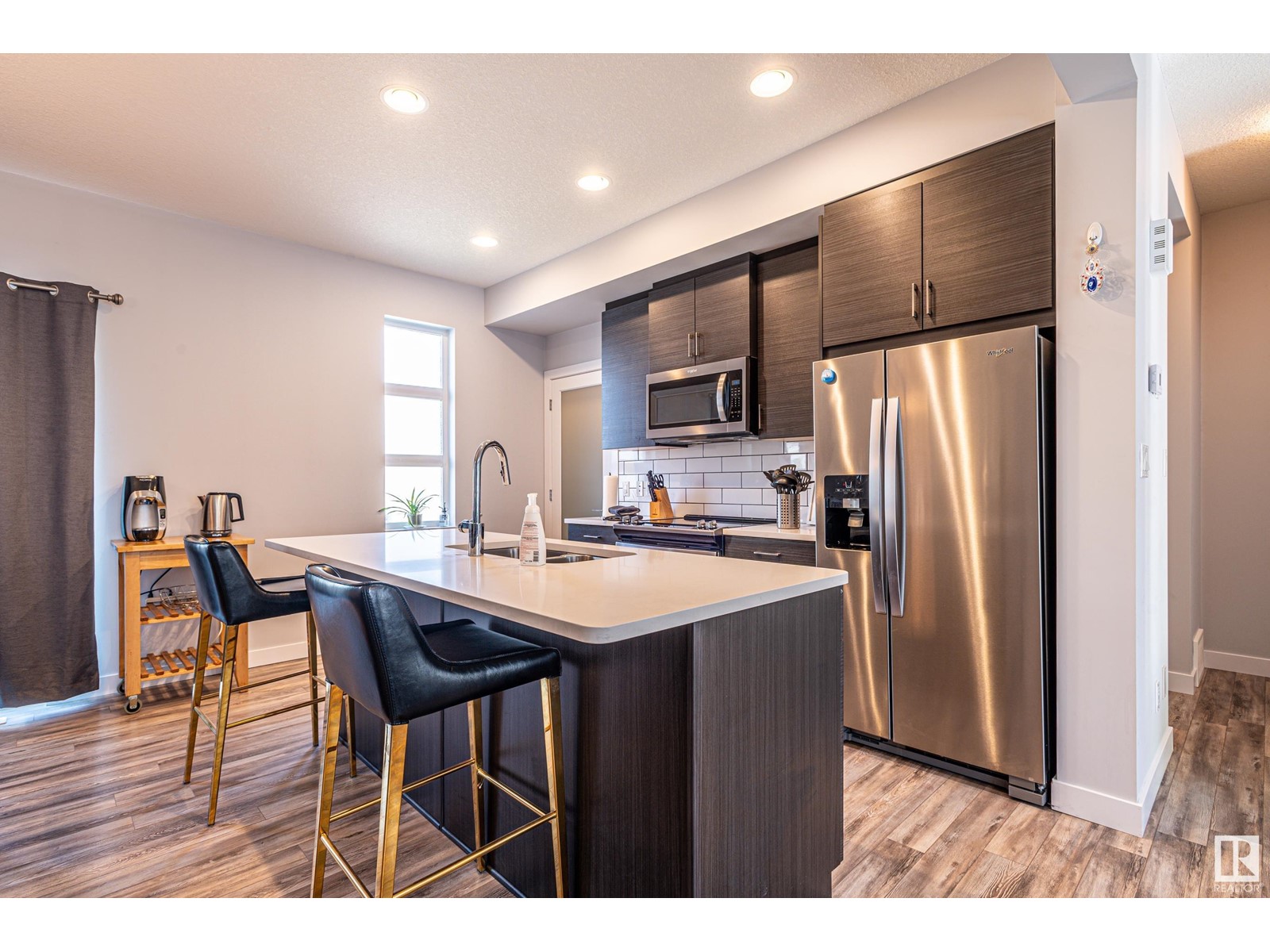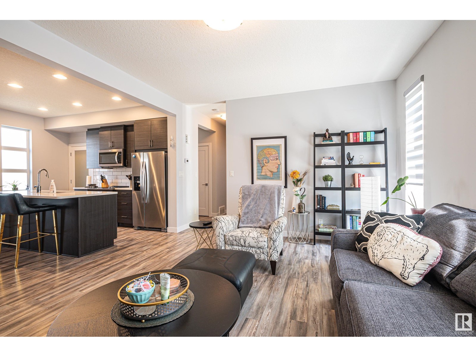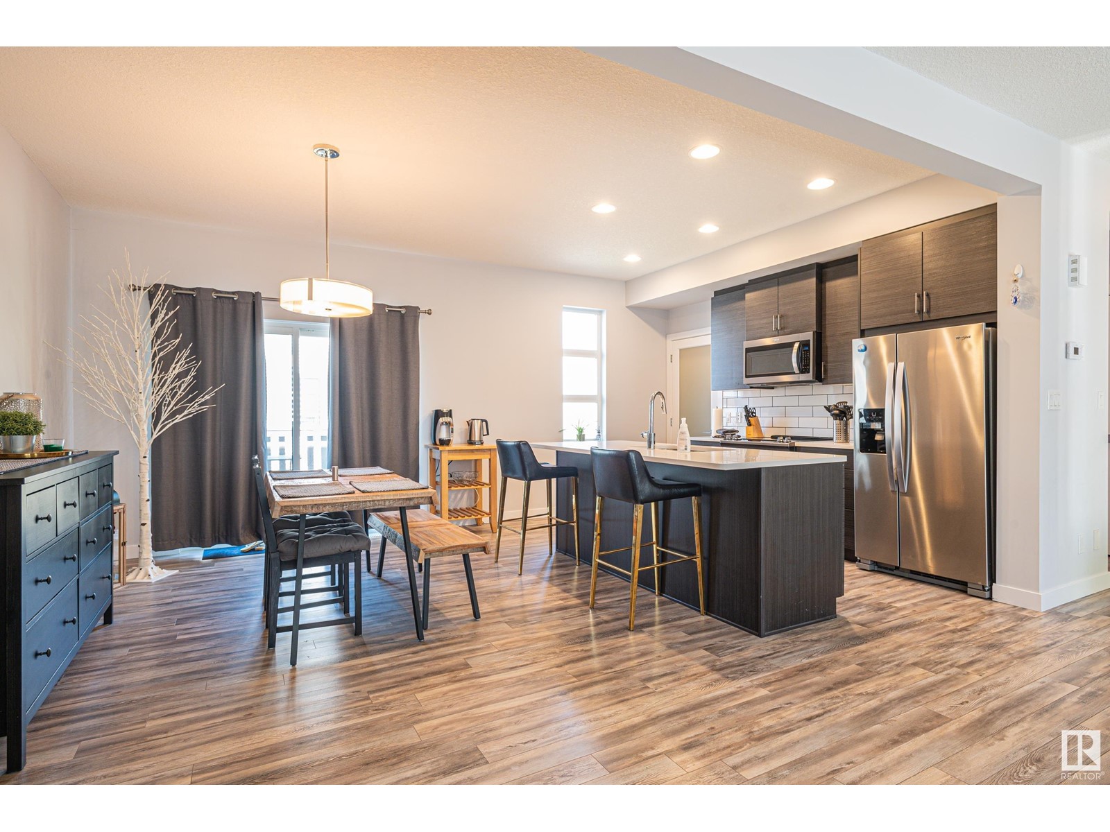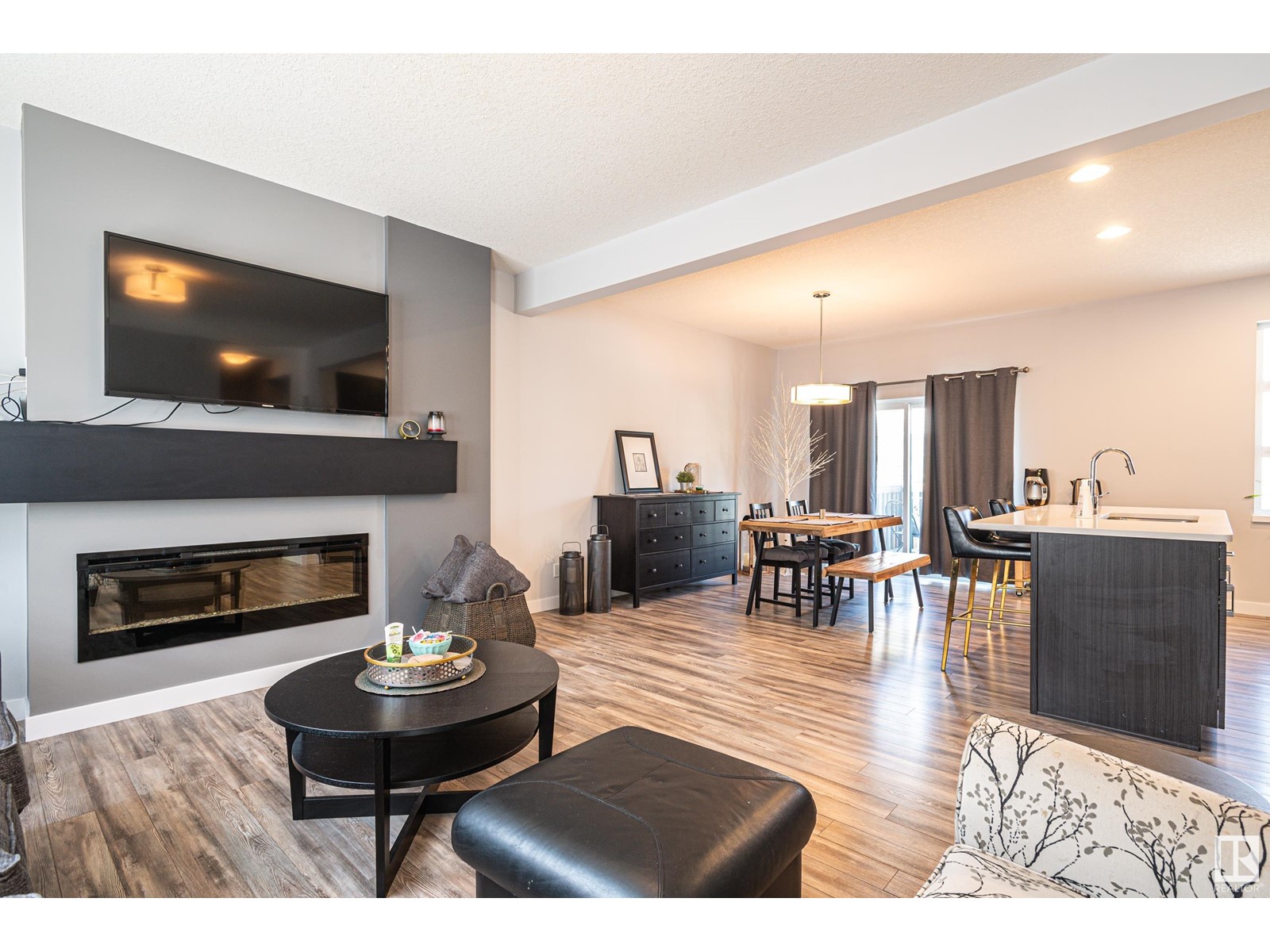 Welcome home to this modern town home located in north west Edmonton this end unit has pride of ownership impressing you from the moment you enter the front foyer. With over 1300 sq ft of living space and a double attached garage. This 3 bedroom home with 2.5 baths has a large open concept floor plan with a stunning kitchen with large island quartz counter tops, large walk in pantry and plenty of cabinets. The large living room has cozy fireplace and large windows with custom blinds through out the main floor there is a large dining room for family gatherings or for entertaining as well there are double patio doors leading you to deck and back yard which is fenced and landscaped. Upstairs features 3 bedrooms including a large walk in closet with a 3 piece ensuite off the master bedroom. In addition to the other two bedrooms is a 4 pc bath completing the upper floor. The oversized double garage will fit two full size cars comfortably and leads you directing into the lower level of this amazing home. (id:22211)