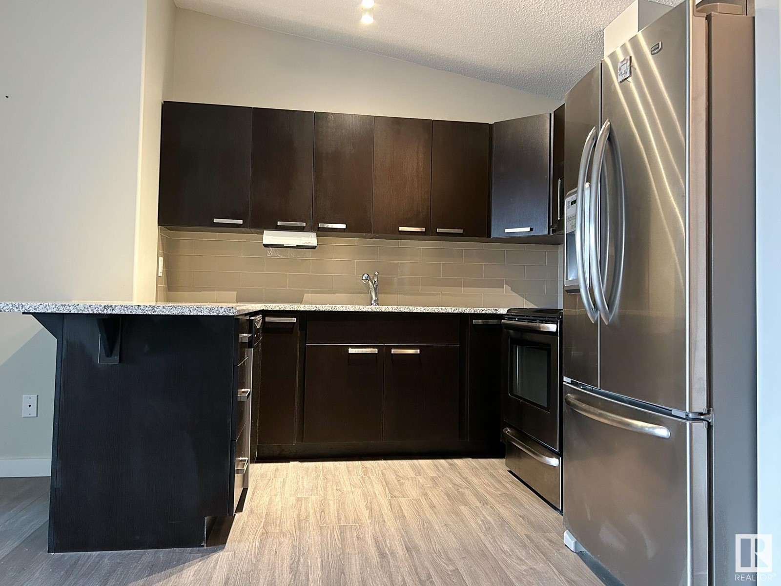 Abundant natural light and grand 10 vaulted ceilings in this TOP Floor Condo! Offers uninterrupted views of gorgeous sunrises and Edmontons beautiful Downtown Skyline! This 2 Bedroom + Den Condo, features 2 full bathrooms, an open floor plan with dark modern kitchen cabinets, granite countertops, stainless steel kitchen appliances including a newer fridge with ICE/WATER Dispenser! Tons of closet/storage space! New carpet in the DEN, trendy paint colour throughout with separate washer/dryer laundry room plus storage! Elegant custom blinds installed throughout, including the patio door! Carpets have been professionally cleaned! Heated, Titled Underground Parking plus a Storage Cage at the front of the stall, and a GYM for owners only! Just a short 20 minute commute to downtown Edmonton, or jump on to the Anthony Henday at 127 St. Walking distance to surrounding amenities; shopping, gyms, swimming pools, golf, and schools. (some pictures virtually staged) (id:22211)