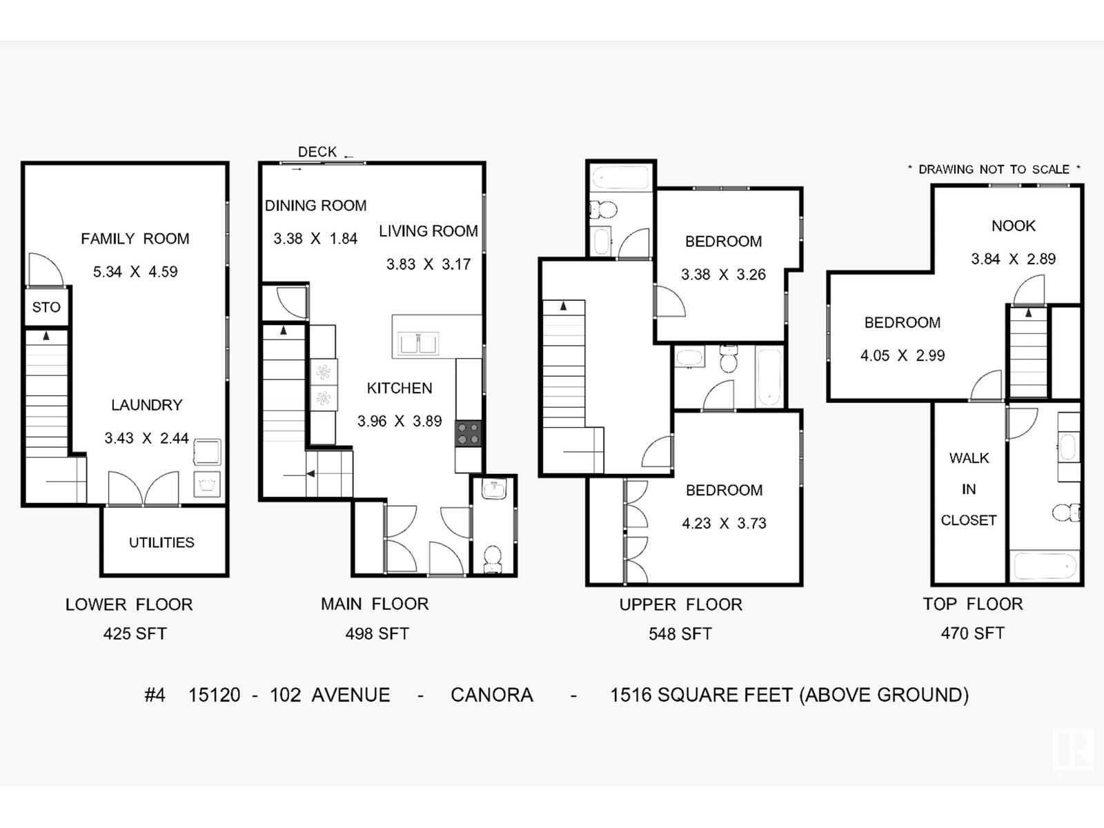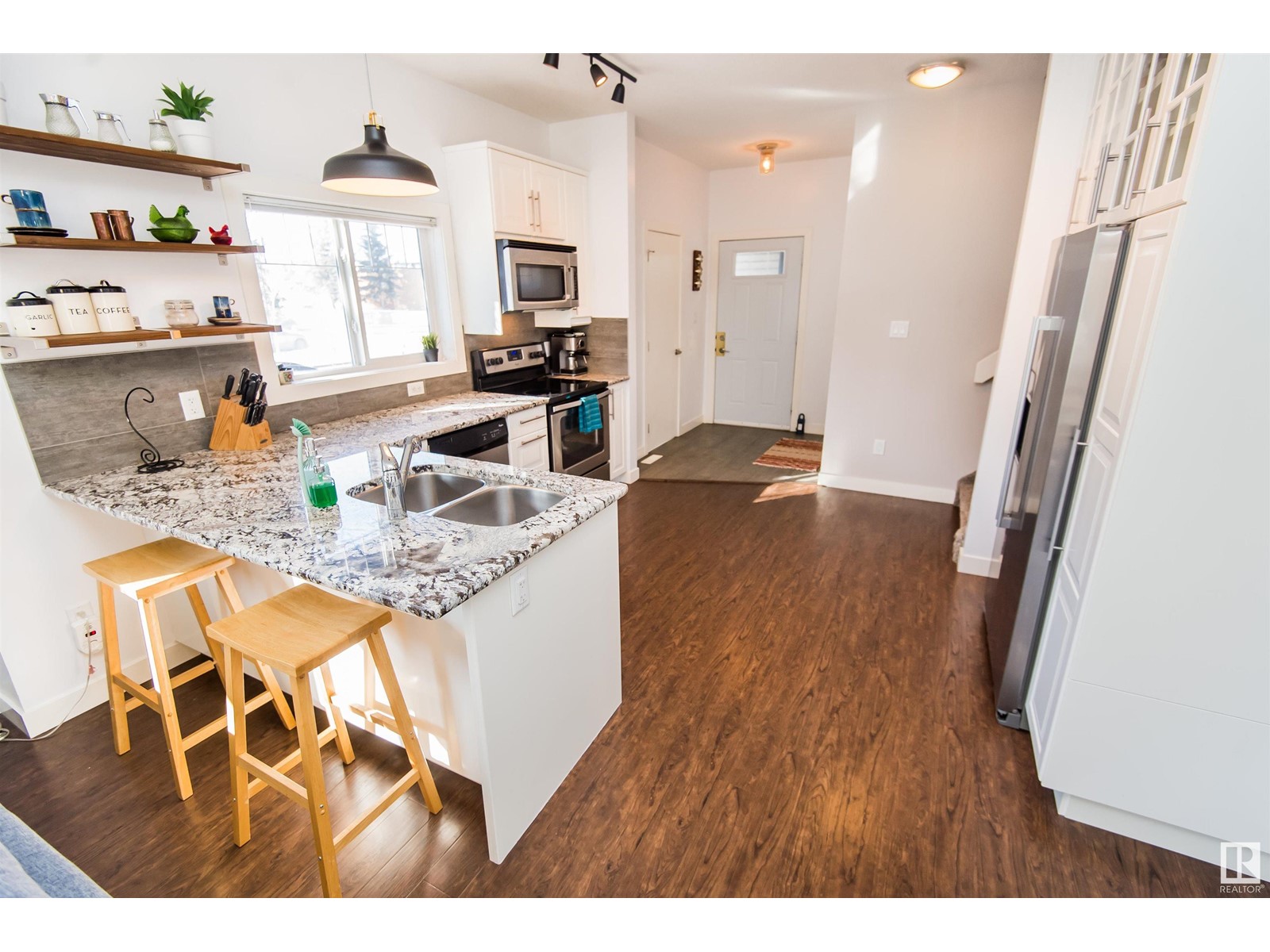 Located in the family friendly and central neighbourhood of Canora, this stunning townhouse at #4 15120 102 Avenue offers the perfect blend of contemporary design and urban living. This beautifully crafted home features 1941 sqft over 4 finished levels, 3 spacious bedrooms & 3.5 baths, making it the perfect fit for families, young professionals. The open concept design seamlessly connects the bright and airy living room with the dining space and kitchen. The spacious kitchen boasts sleek, modern finishes, stainless steel appliances, and plenty of counter space and storage. Convenient half bath on the main floor. Two large bedrooms (one with 4pc en-suite) on the second floor plus another 4pc bath. Gorgeous top floor bedroom, with sitting room, large walk-in closet & 4pc en-suite bath. Fully finished basement with family room & laundry. Features a cozy, deck that is perfect for relaxing & entertaining. Single garage and plenty of storage space throughout the home to store all your belongings. Welcome Home! (id:22211)