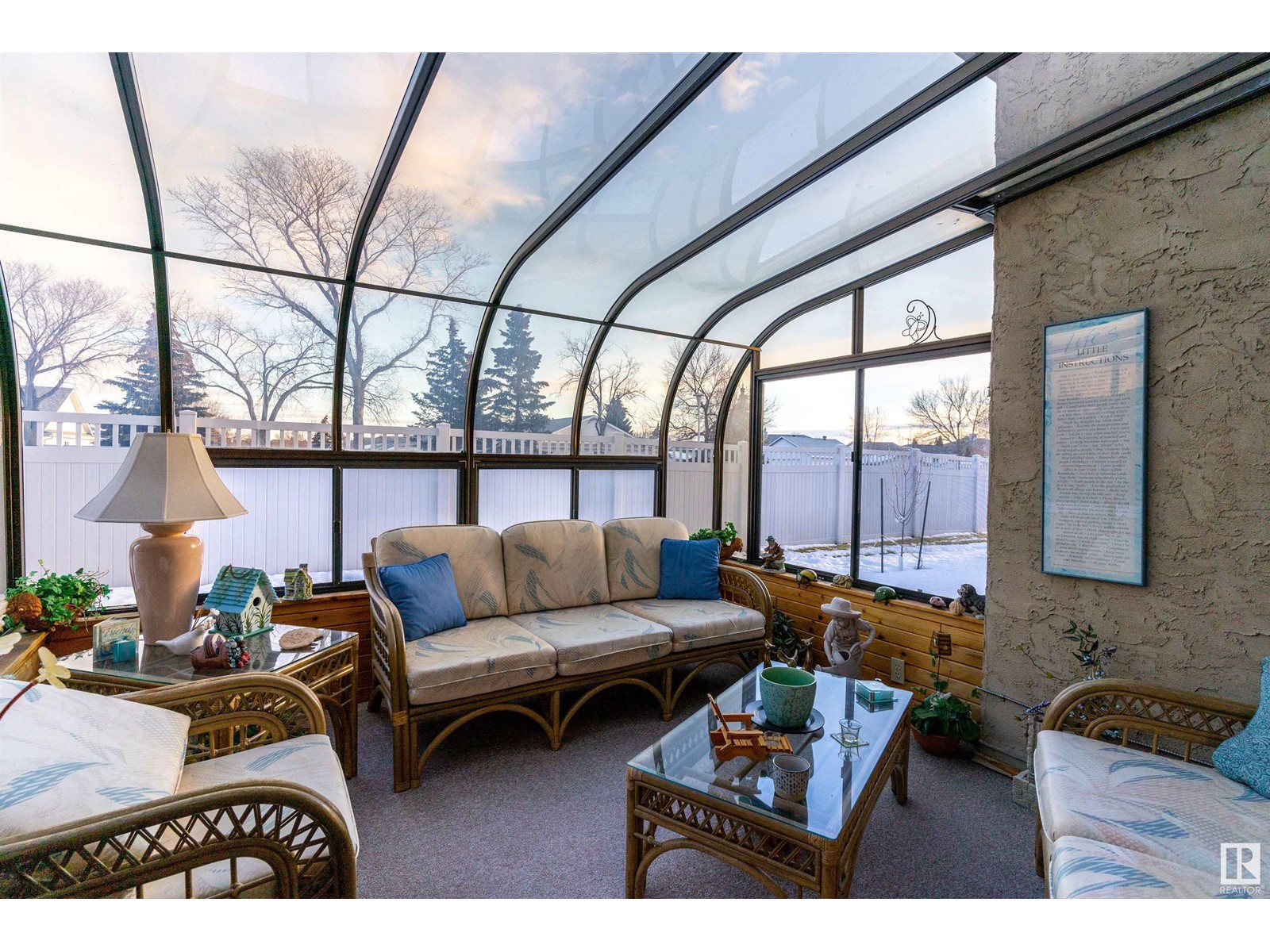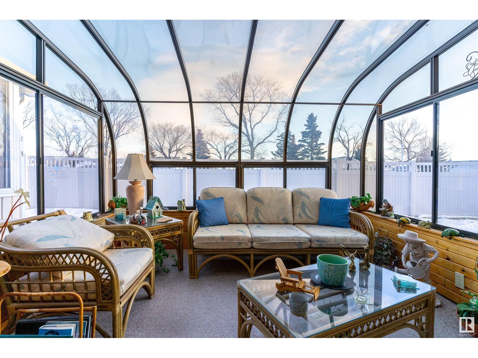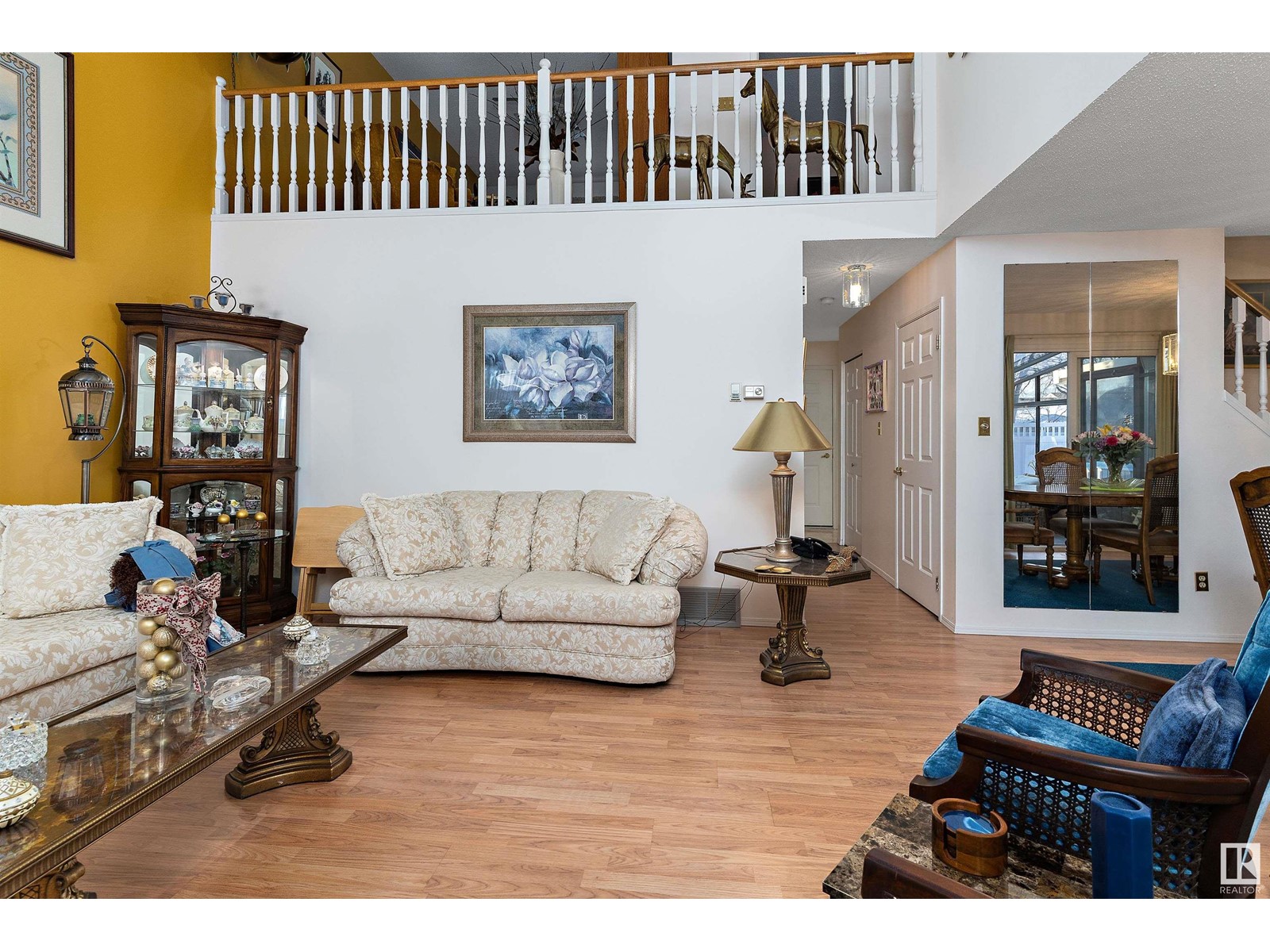 Spectacular 2-bed 2-bath bungalow with bonus loft in Mill Woods, excellent location near Satoo Park and Knottwood Community Hall! This brilliant 1845 sq.ft. home w/double attached garage offers bright and spacious main level plus loft w/seating area, bedroom, and private 3-pc bath. Refined and elegant living room features vaulted ceiling and regal oak surround gas fireplace. Formal dining room, laundry room, 4-pc bath, primary bedroom w/walk-in closet, country kitchen w/oak cabinets, and fabulous sun room for year-round enjoyment of the outdoors. Downstairs, basement is unfinished w/partially developed flex space/hobby room, perfect opportunity to customize to your needs! Great community w/fabulous neighbours in a well-managed 45+ complex. Lawn care and snow removal plus access to hot tub, indoor pool, exercise equipment, and games room included in low monthly condo fees. Beautiful home, spotlessly clean and lovingly maintained, available for quick possession! (id:22211)