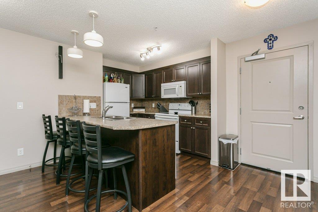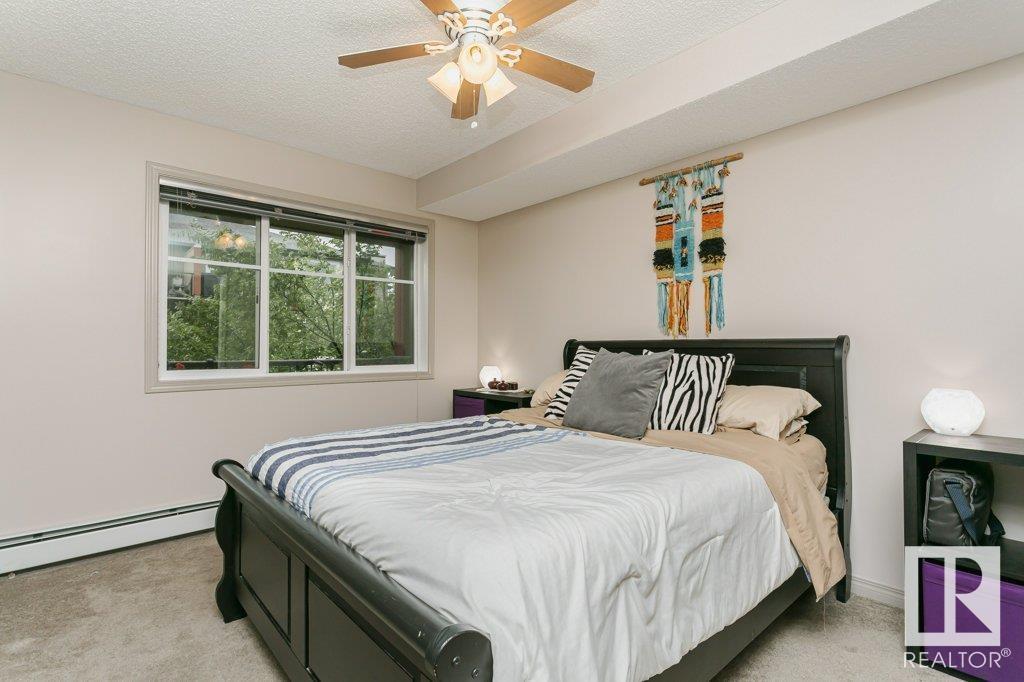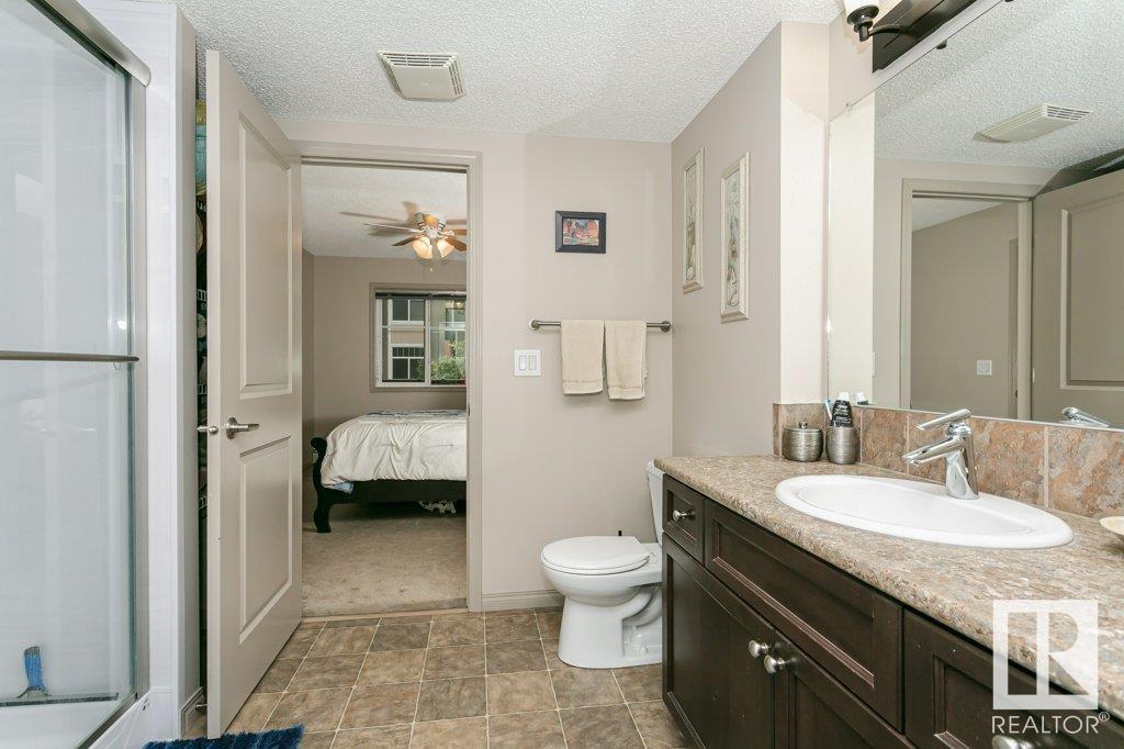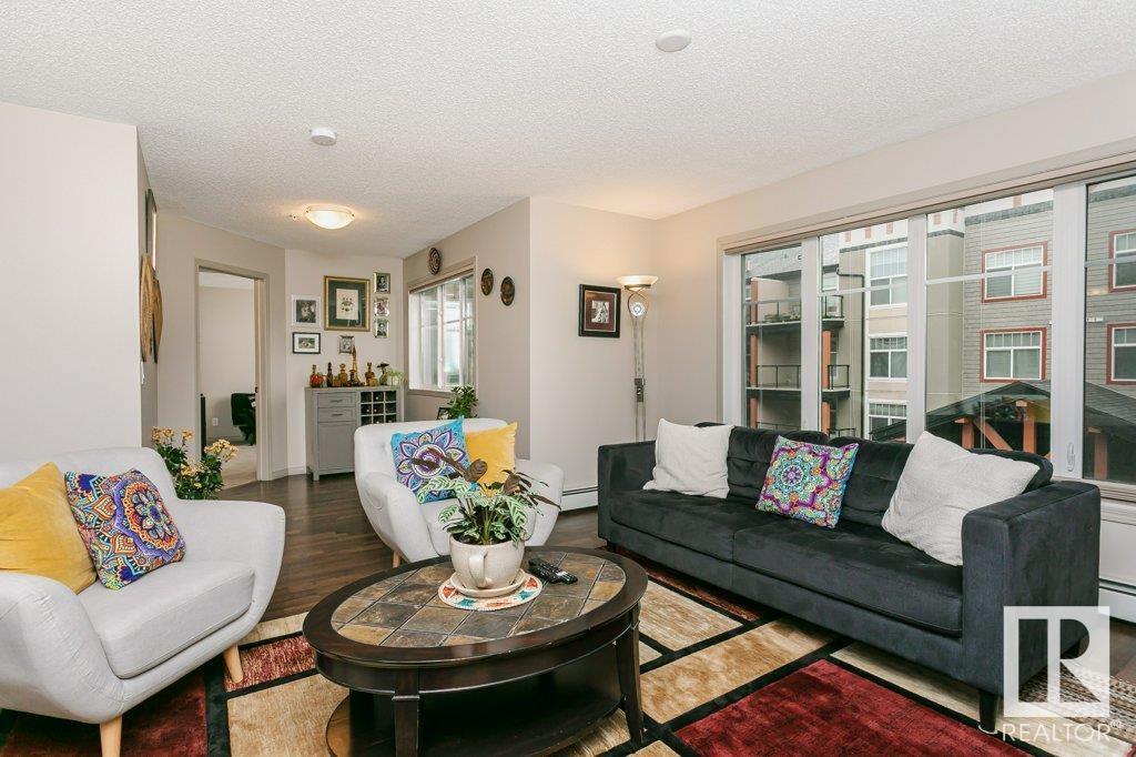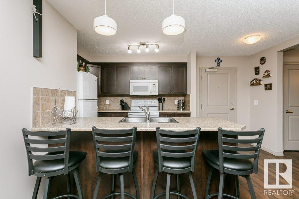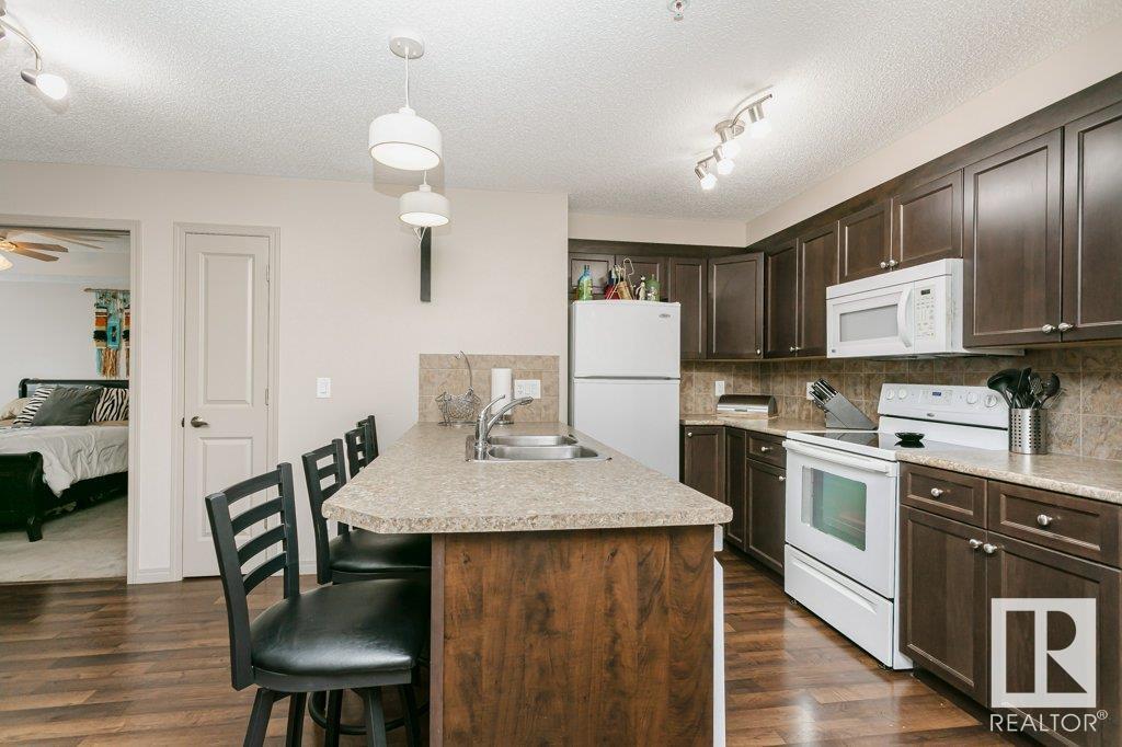 Introducing a charming 2 bed, 2 bath 3rd floor unit steps from Blackmud Creek Ravine. Close to shops, walking trails, amenities, QEII, and Anthony Henday. This unique layout with separated bedrooms features a living room extension that would make a great office space. The well-appointed kitchen, room for 4 at the peninsula island and spacious dining area make for easy entertaining! Both bedrooms feature walk-in closets and spacious bathrooms. Enjoy your morning coffee on the lovely south-east facing balcony, while the in-suite laundry, title parking spot and parkade storage locker provide an added layer convenience and storage. This is an ideal location for nature lovers and convenience seekers. Don't miss this opportunity! (id:22211)