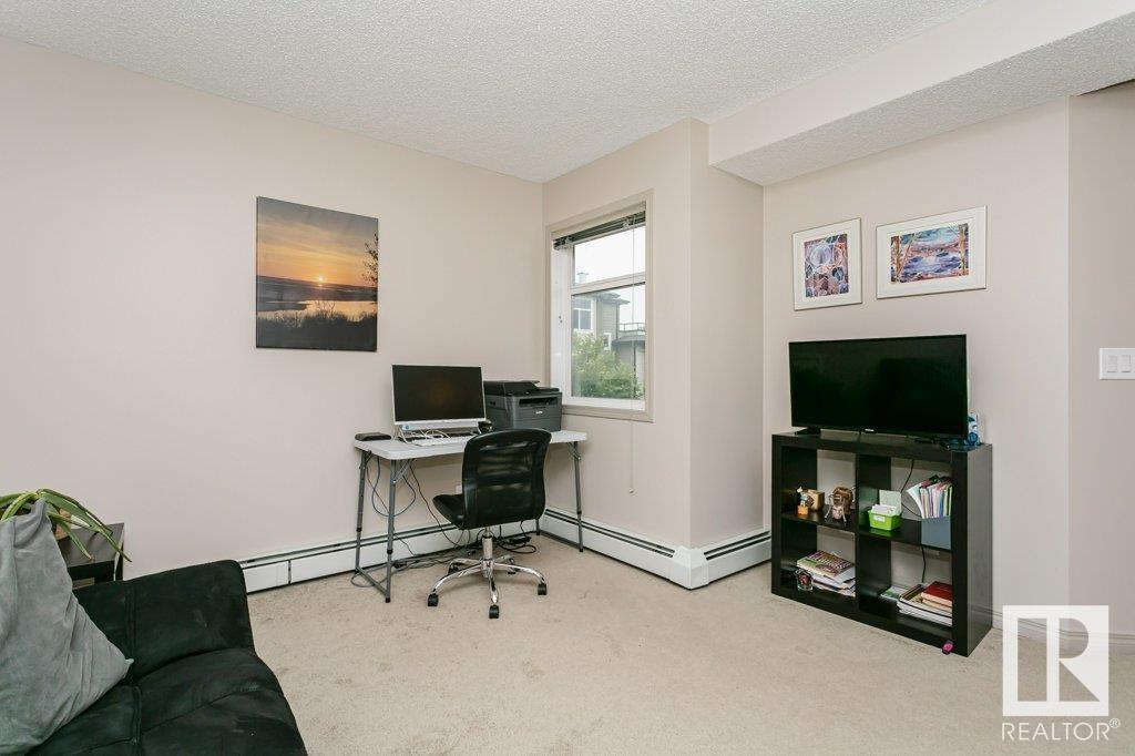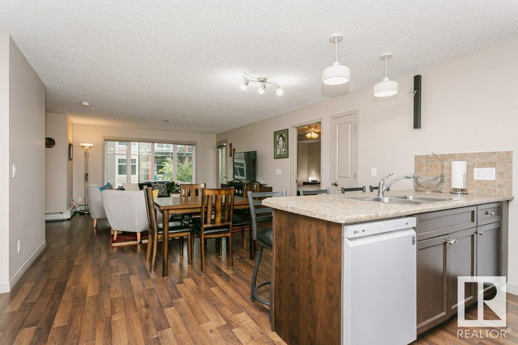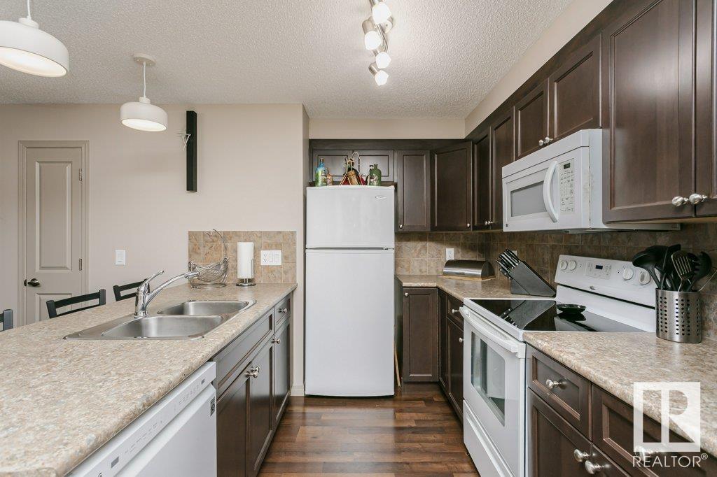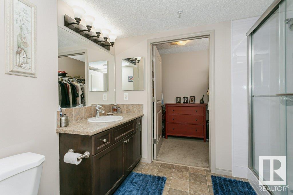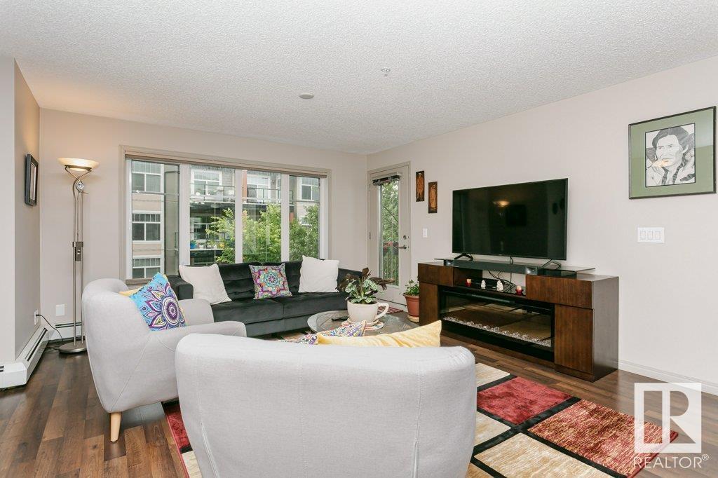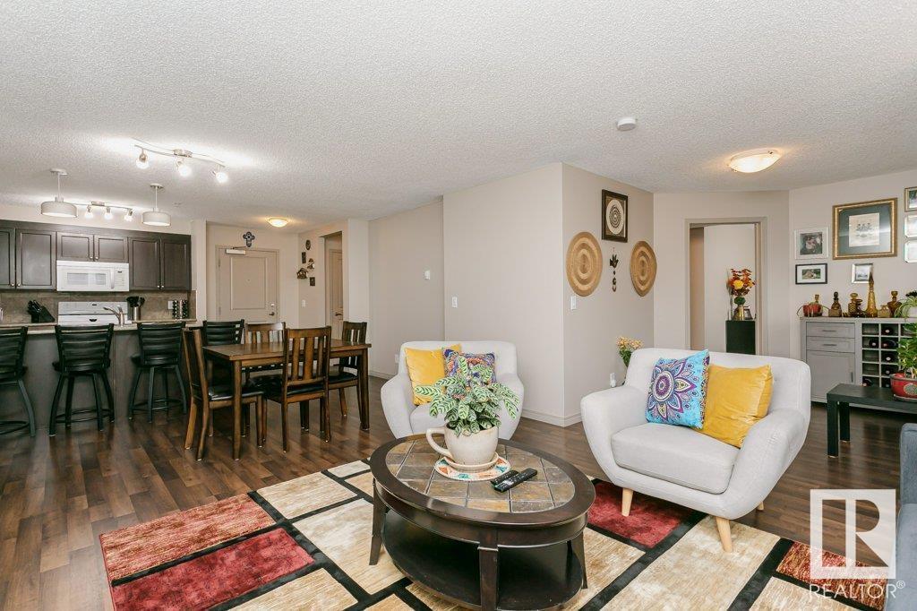 Introducing a charming 2 bed, 2 bath 3rd floor unit steps from Blackmud Creek Ravine. Close to shops, walking trails, amenities, QEII, and Anthony Henday. This unique layout with separated bedrooms features a living room extension that would make a great office space. The well-appointed kitchen, room for 4 at the peninsula island and spacious dining area make for easy entertaining! Both bedrooms feature walk-in closets and spacious bathrooms. Enjoy your morning coffee on the lovely south-east facing balcony, while the in-suite laundry, title parking spot and parkade storage locker provide an added layer convenience and storage. This is an ideal location for nature lovers and convenience seekers. Don't miss this opportunity! (id:22211)