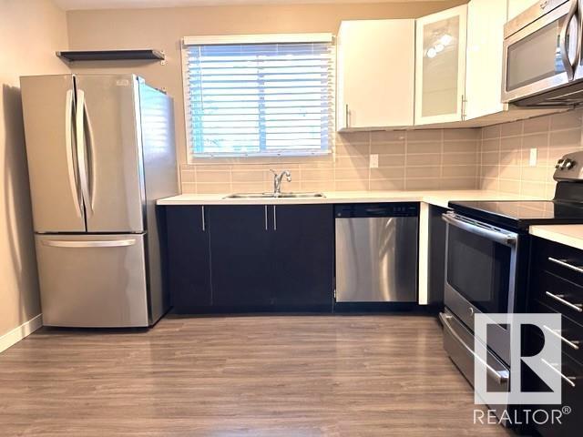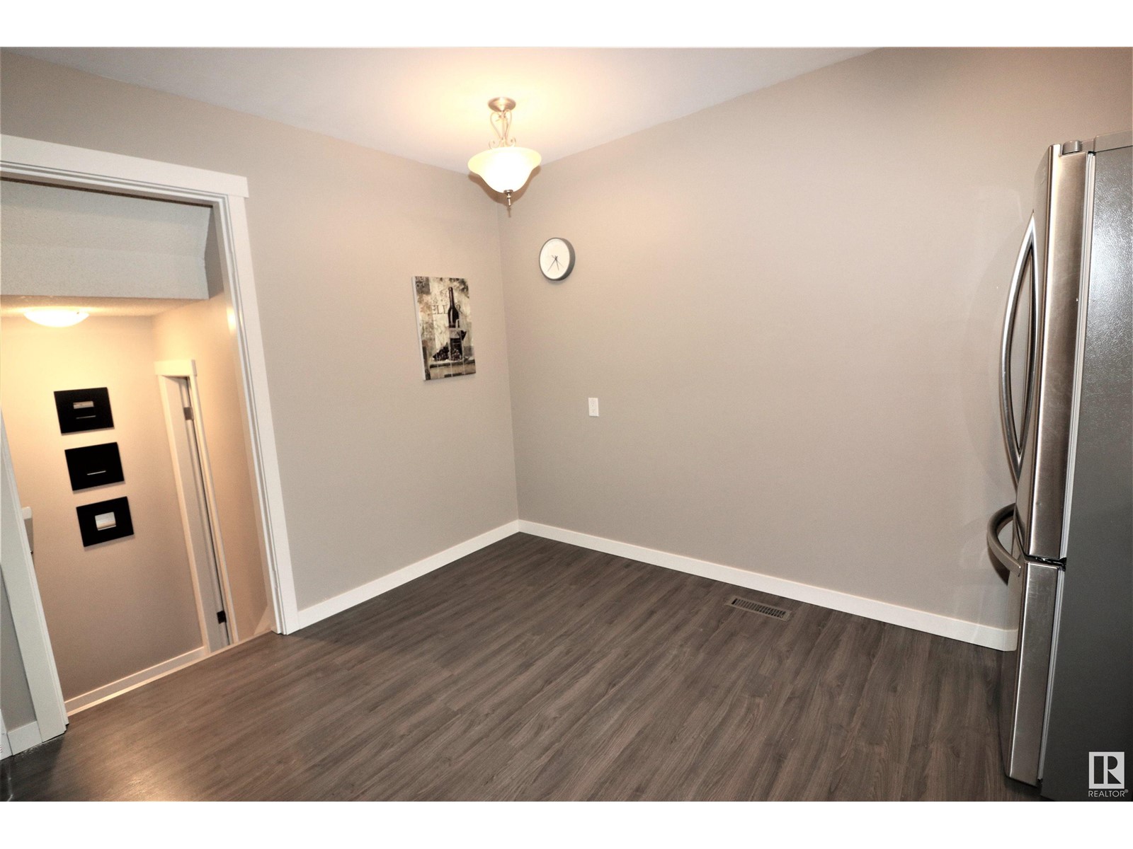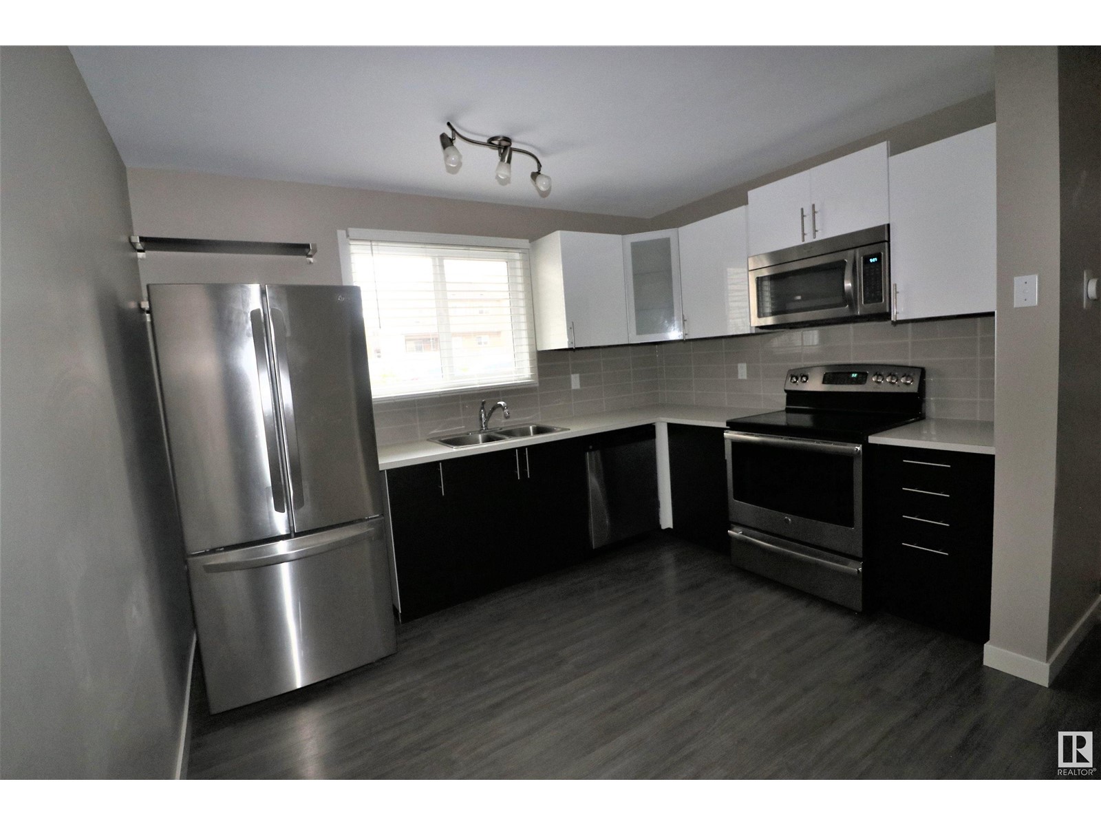 Stunning 2 story condo facing east. Totally renovated a few years ago. Modern home with upgraded stainless appliances including a fridge, flat top stove, dishwasher & microwave hood fan. The kitchen has white upper cabinets & dark lower cabinets. Newer lighting throughout. There is a handy half bath just off the main level. Laminate flooring on both levels. Carpet only on the staircases. Upstairs you will find 3 bedrooms as well as a full bath. The basement has ample storage, a new hot water tank (2022) and a front load washer & dryer, each with their own storage pedestal. Freshly painted home including the basement floor & patio. Nicely finished fenced yard with a large patio. Includes 1 parking stall. Great condo complex with vinyl siding, vinyl windows, newer shingles, vinyl fences & a paved parking lot throughout. Handy to ETS, South Common, Grey Nuns Hospital, Mill Woods Town Centre, Anthony Henday & the Whitemud Freeway. Next door to Meyonohk Park & School. (id:22211)