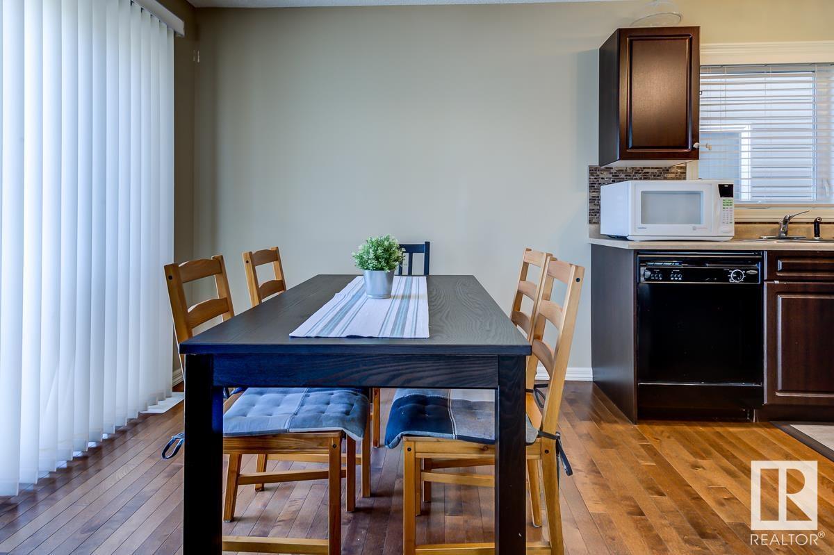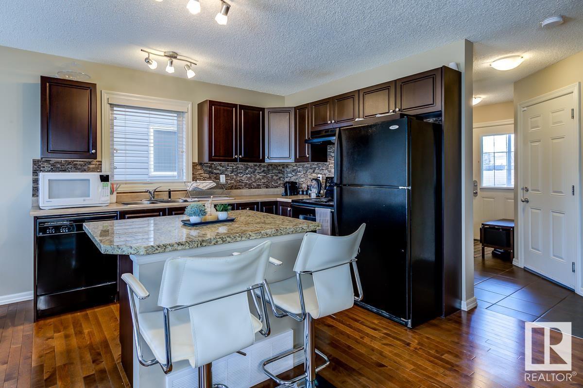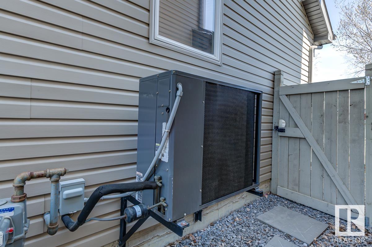 AFFORDABLE LIVING in a quiet complex close to ALL amenities! This two story half-duplex with single attached garage has EVERYTHING you are looking for, EVEN A/C!! The kitchen, living room & dining room all have beautiful hardwood floors with tile in the entry and bathrooms. The kitchen features an island, granite countertops, tile backsplash, and plenty of beautiful cabinet space. The living room has large windows letting in tons of natural light & the patio doors off the spacious dining area leads you to a fully fenced back yard. A 2 piece powder room tucked neatly away completes this level. Upper floor has THREE large bedrooms, the owners suite comes with 4 piece ensuite AND double closet! Another FULL bathroom completes the top floor! Downstairs holds the laundry, TONS of storage space and a High Efficiency furnace! Close to Terwillegar Rec Centre, ETS transit station, schools, parks, walking trails and all amenities. (id:22211)
